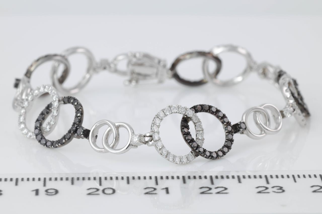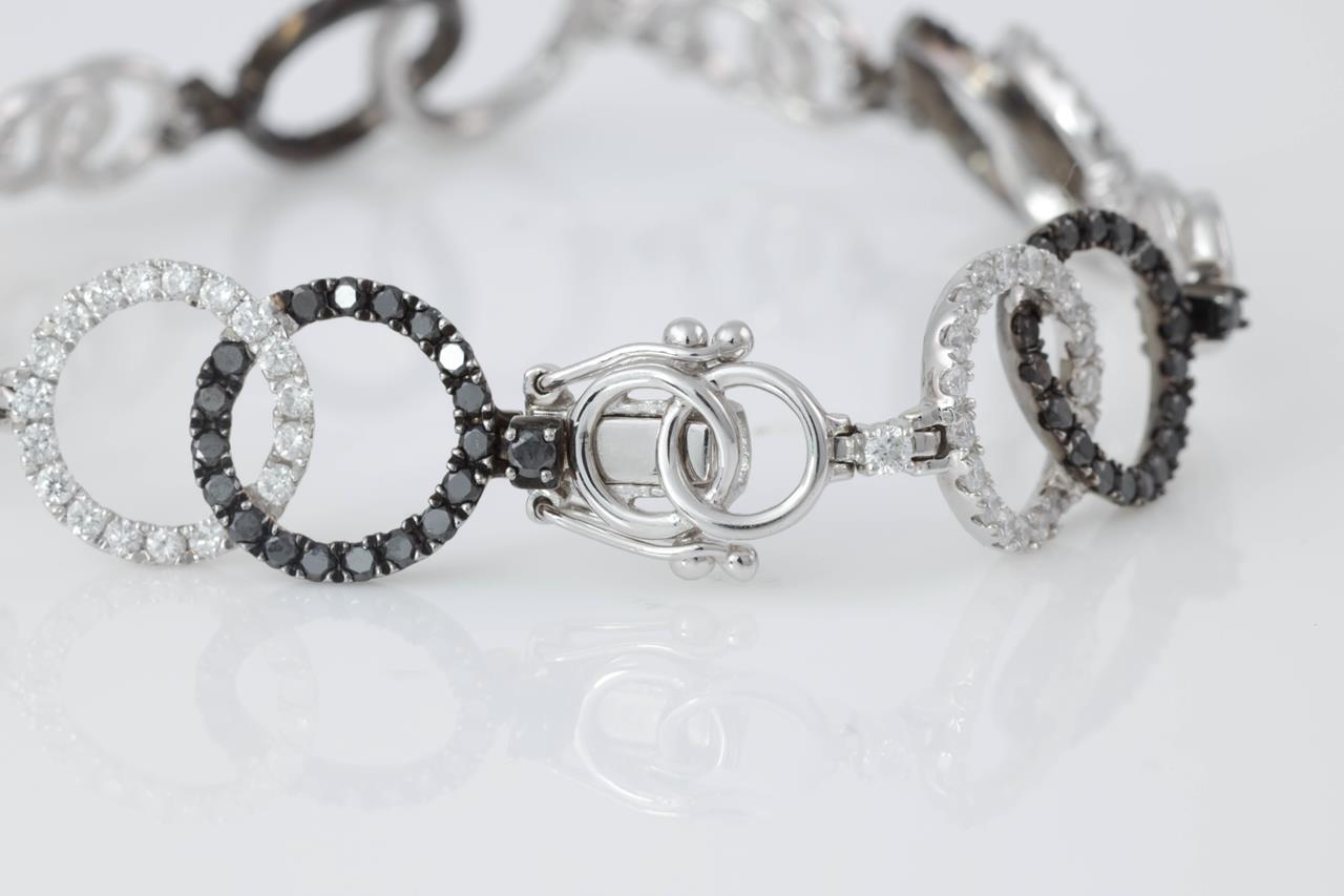 Diamond circle design bracelet with black & white Diamonds totalling 2.41cts (Estimated grading: G P1, Black diamonds - colour may be treated. 18ct white gold with black rhodium plating. Weight: 10.6g. Length: 16.3cm. (Pre-owned)