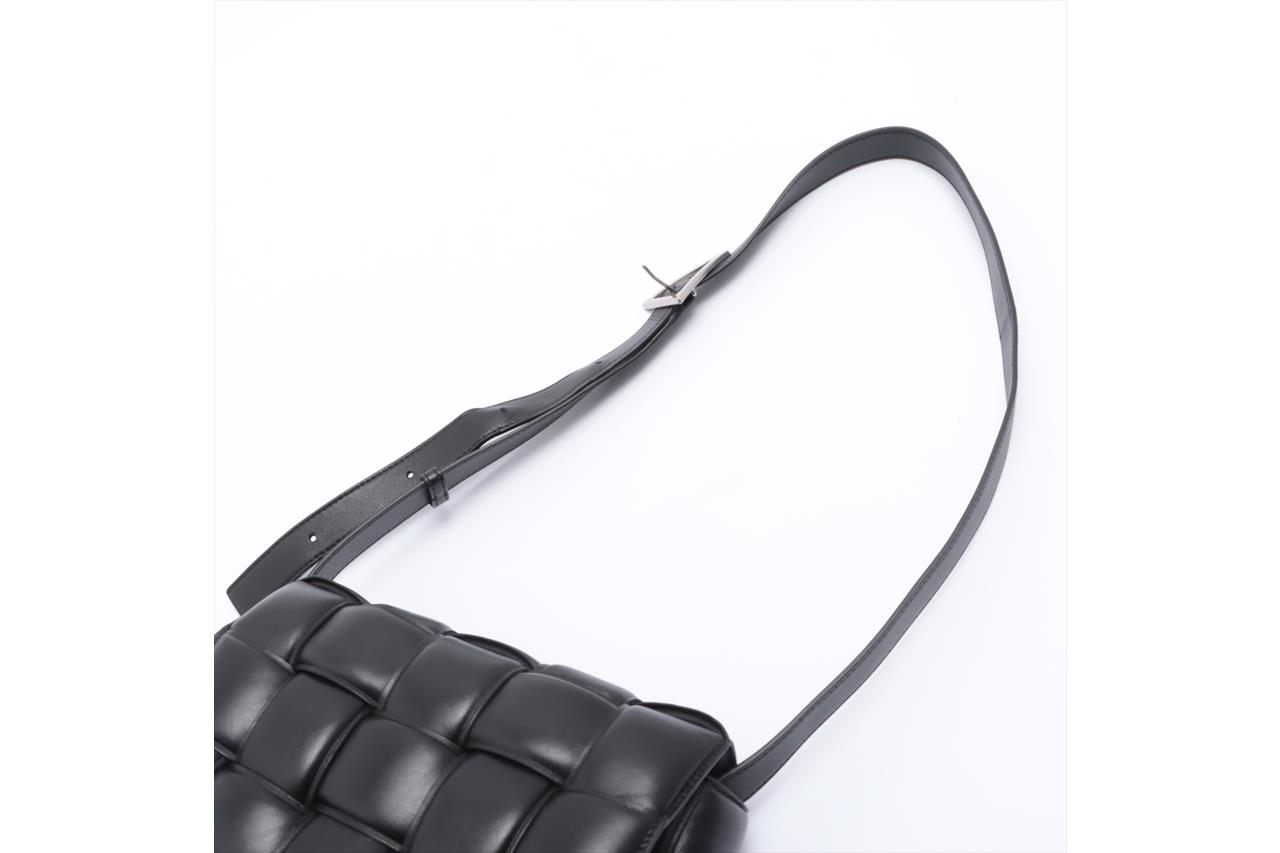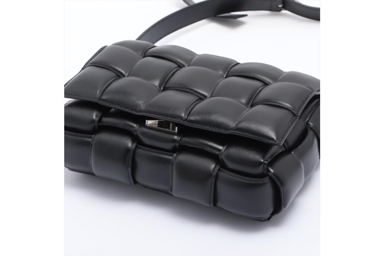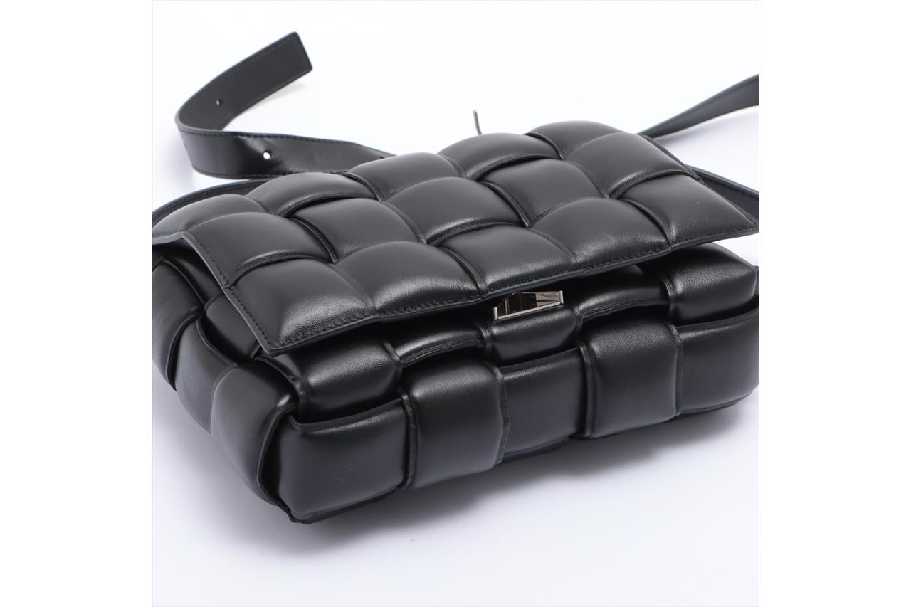 Bottega Veneta Padded Intreccio Cassette Crossbody Bag in Black Leather. Featuring an interior zipped pocket and metal closure. Approximate dimensions: 26cm (L) x 18cm (H) x 8cm (D) and 50cm strap drop. Accompanied by Bottega Veneta dust bag. With Entrupy Certificate of Authenticity. (Pre-owned)