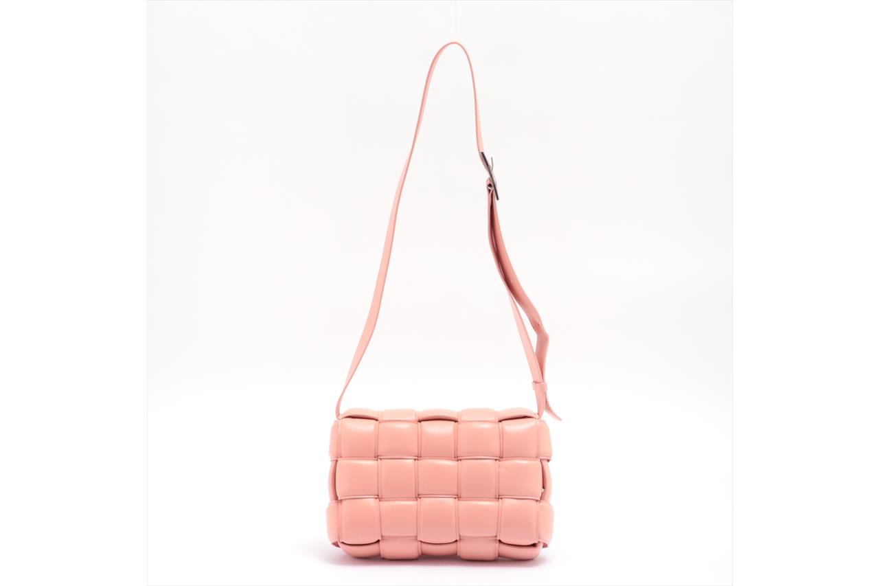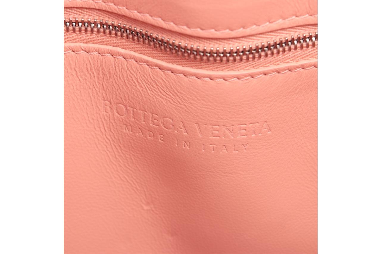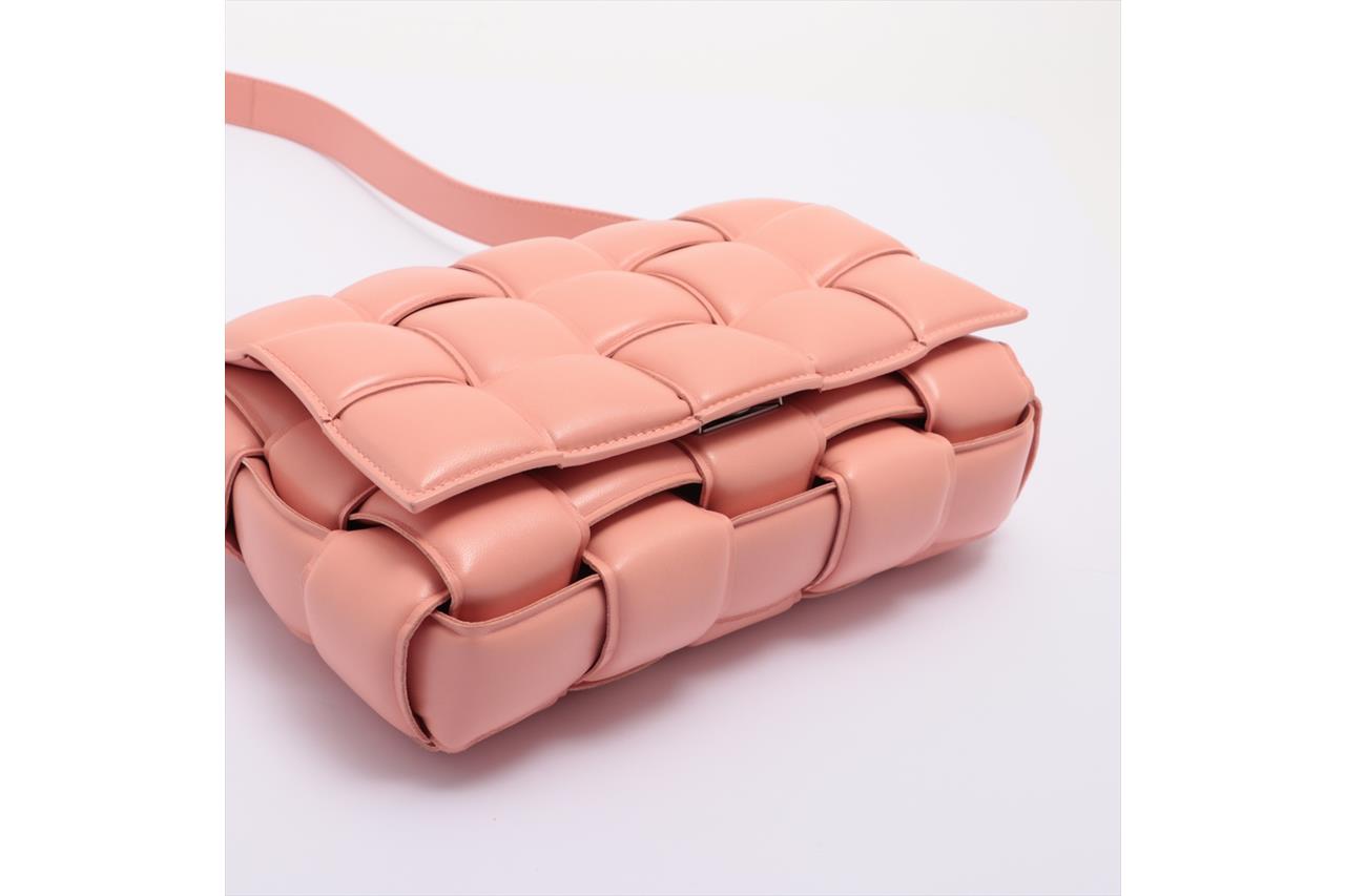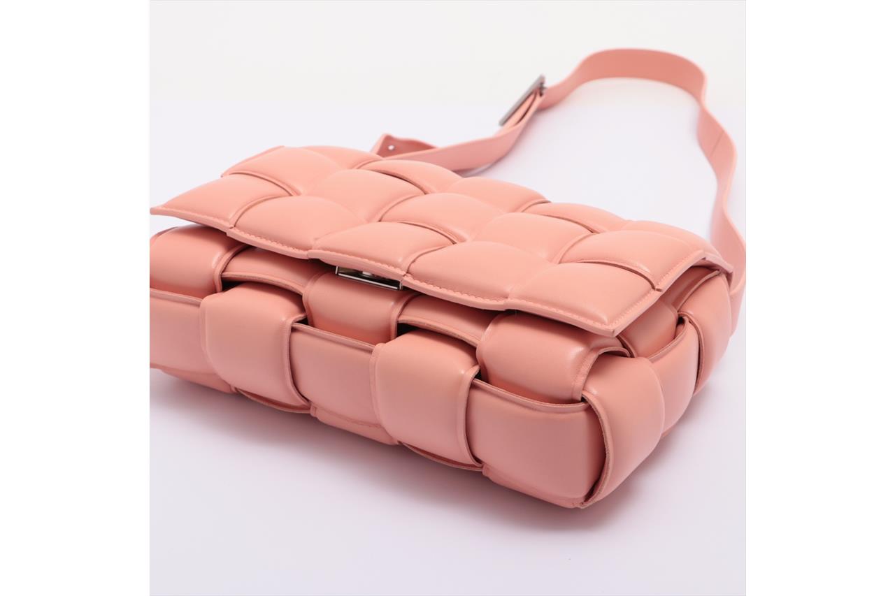 Bottega Veneta Padded Intrecciato-woven Lambskin Shoulder Bag in Pink. Silver-tone hardware. Made in Italy. Adjustable shoulder strap with pin-buckle fastening. Approximate dimensions: 26cm (L) x 18cm (H) x 6cm (D). With Entrupy Certificate of Authenticity. Accompanied by Bottega Veneta dust bag. (Pre-owned)