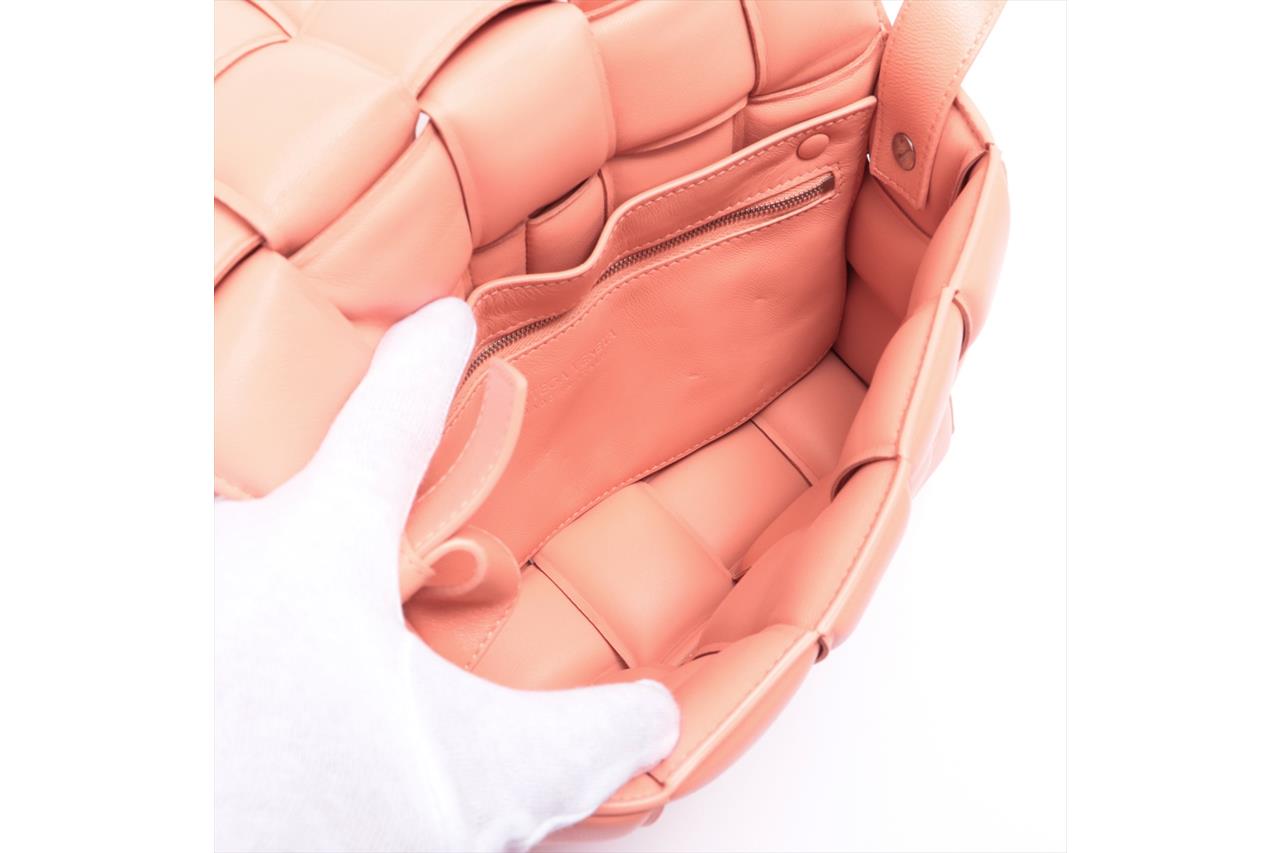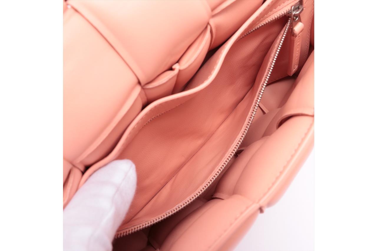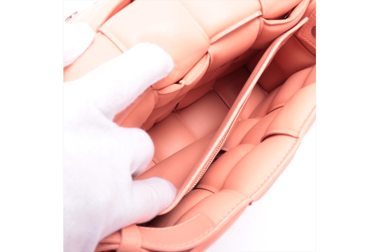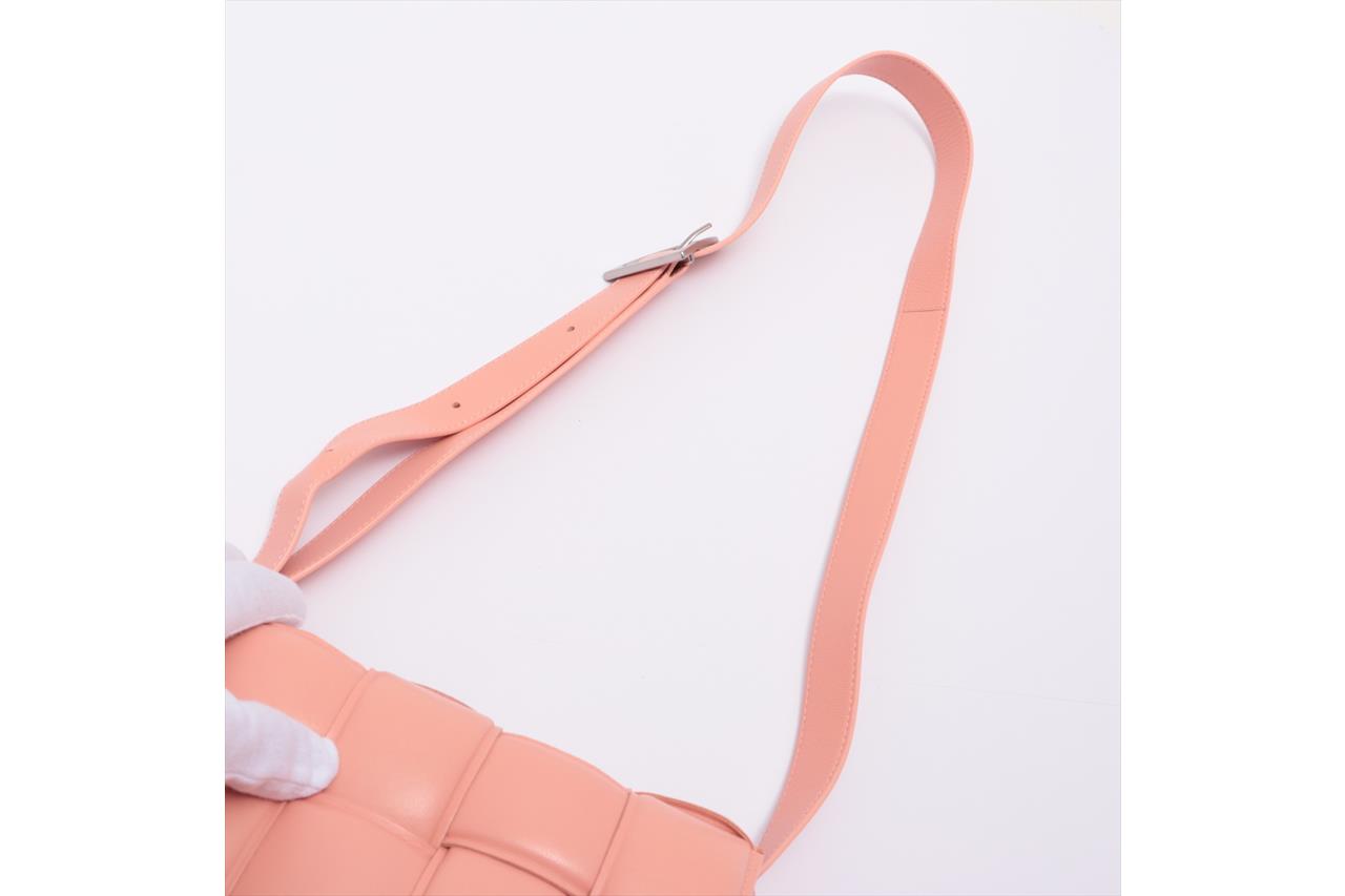 Bottega Veneta Padded Intrecciato-woven Lambskin Shoulder Bag in Pink. Silver-tone hardware. Made in Italy. Adjustable shoulder strap with pin-buckle fastening. Approximate dimensions: 26cm (L) x 18cm (H) x 6cm (D). With Entrupy Certificate of Authenticity. Accompanied by Bottega Veneta dust bag. (Pre-owned)