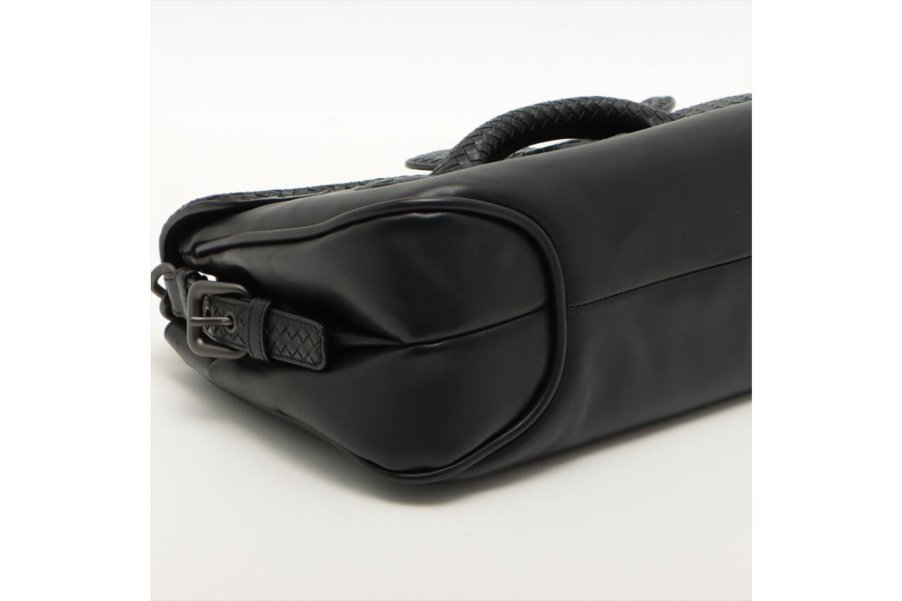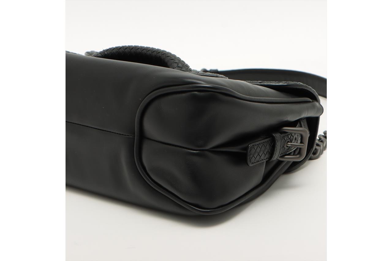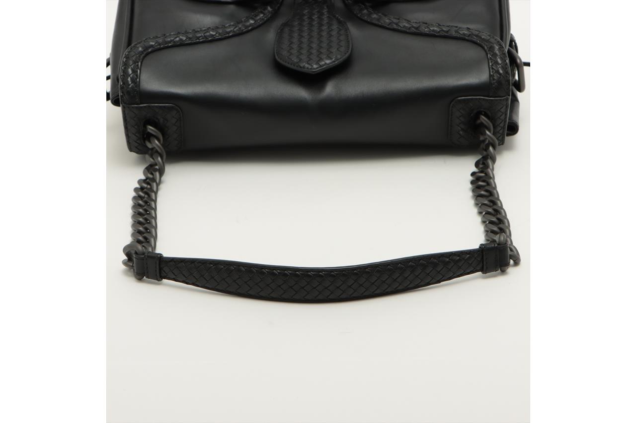 Bottega Veneta Rialto Bag in Black Calfskin Leather. Featuring suede-lined interior, black-tone hardware, belt lock and magnetic closure on the front. Approximate dimensions: 30cm (L) x 18cm (H) x 11.5cm (D), and 28cm leather & chain strap drop. Accompanied by Bottega Veneta mirror and dust bag. With Entrupy Certificate of Authenticity. (Pre-owned)