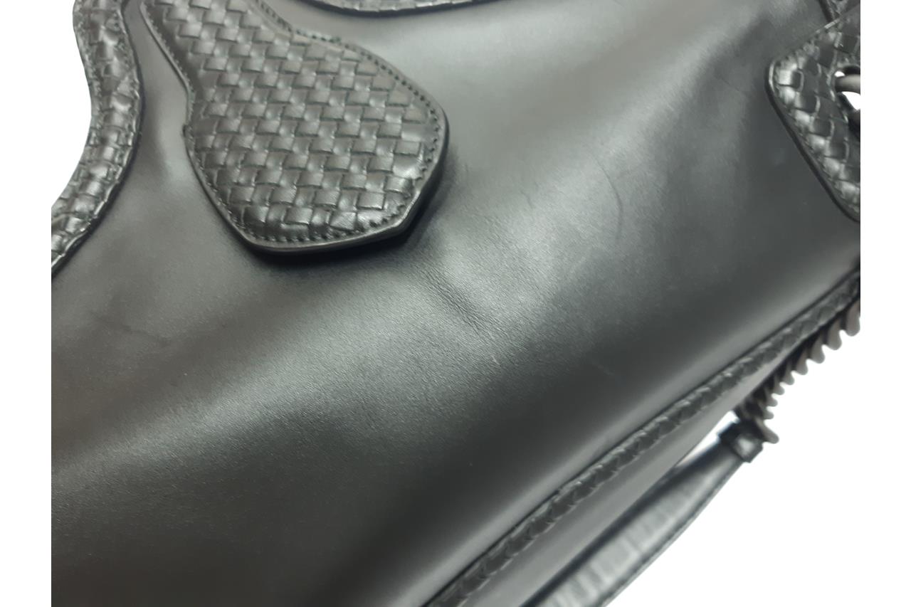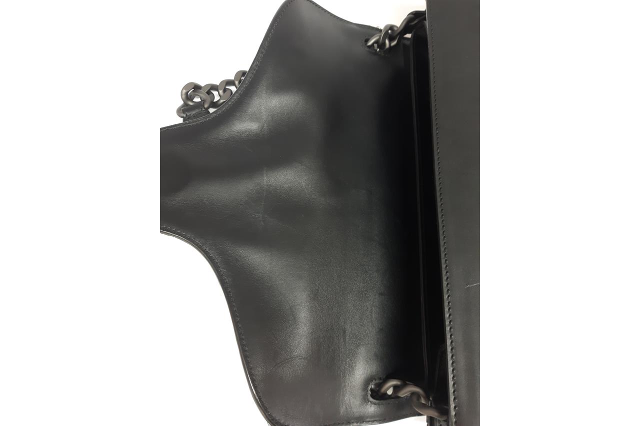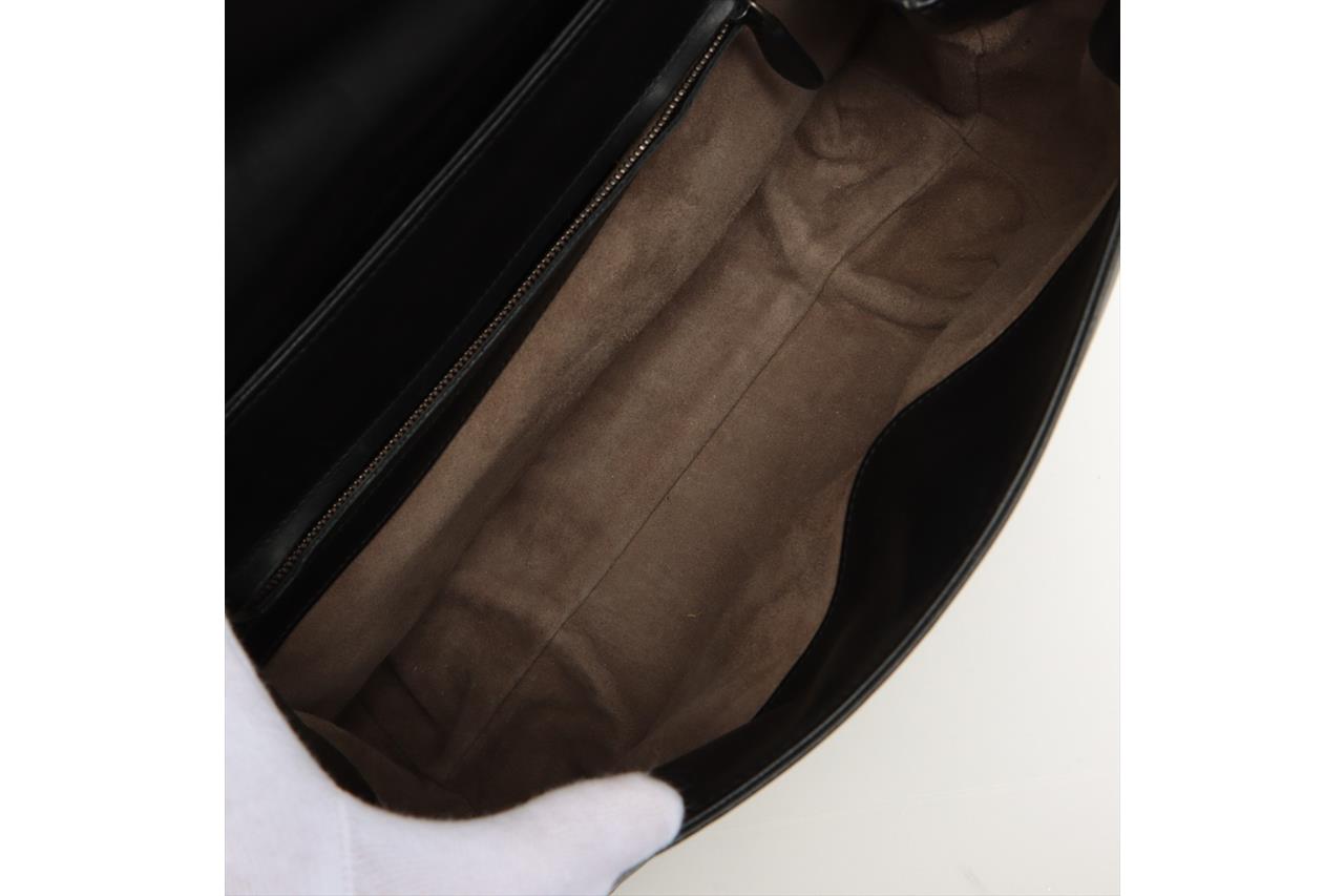 Bottega Veneta Rialto Bag in Black Calfskin Leather. Featuring suede-lined interior, black-tone hardware, belt lock and magnetic closure on the front. Approximate dimensions: 30cm (L) x 18cm (H) x 11.5cm (D), and 28cm leather & chain strap drop. Accompanied by Bottega Veneta mirror and dust bag. With Entrupy Certificate of Authenticity. (Pre-owned)