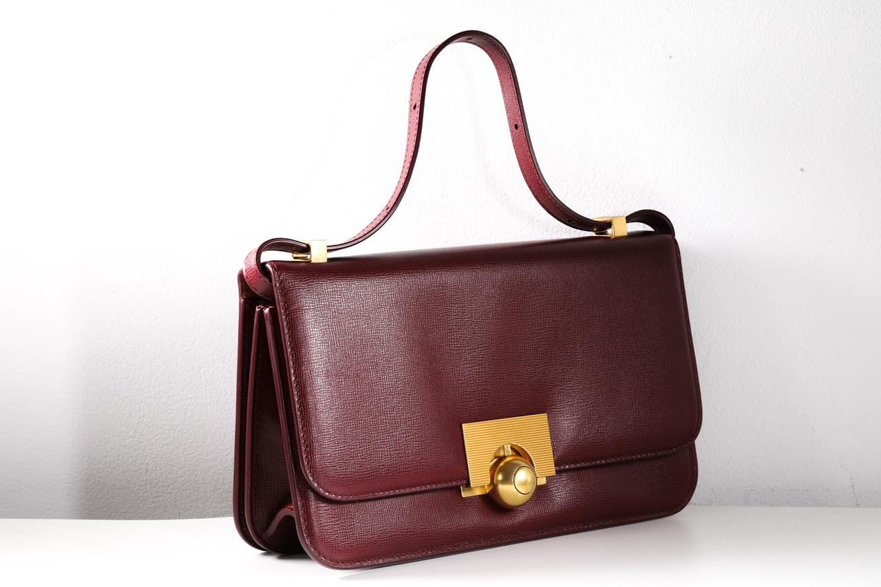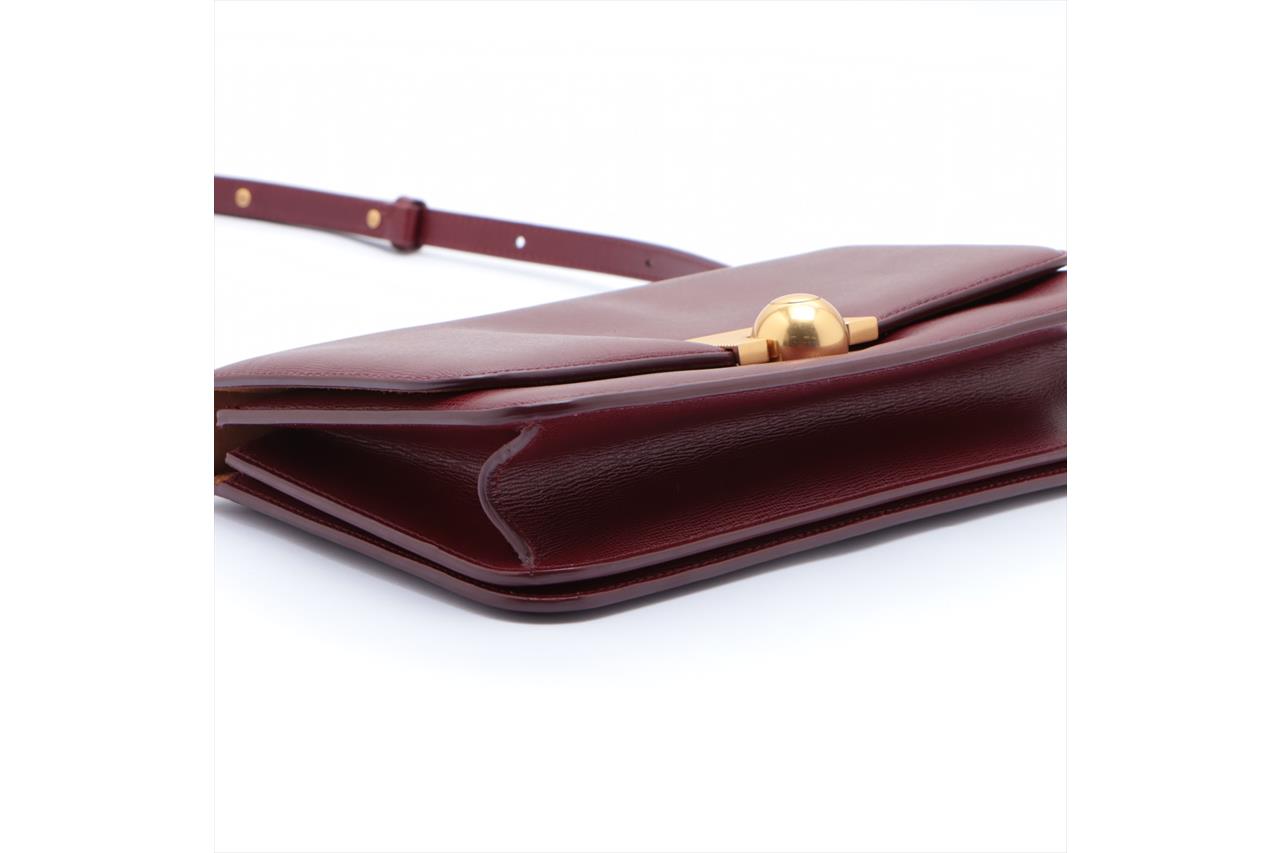 Bottega Veneta Ronde Bordeaux leather shoulder bag. Fold over clasp closure and brass-tone hardware. Made in Italy. Approximate dimensions: 28cm (L) x 15.5cm (H) x 8cm (D). With Entrupy Certificate of Authenticity. (Pre-owned)