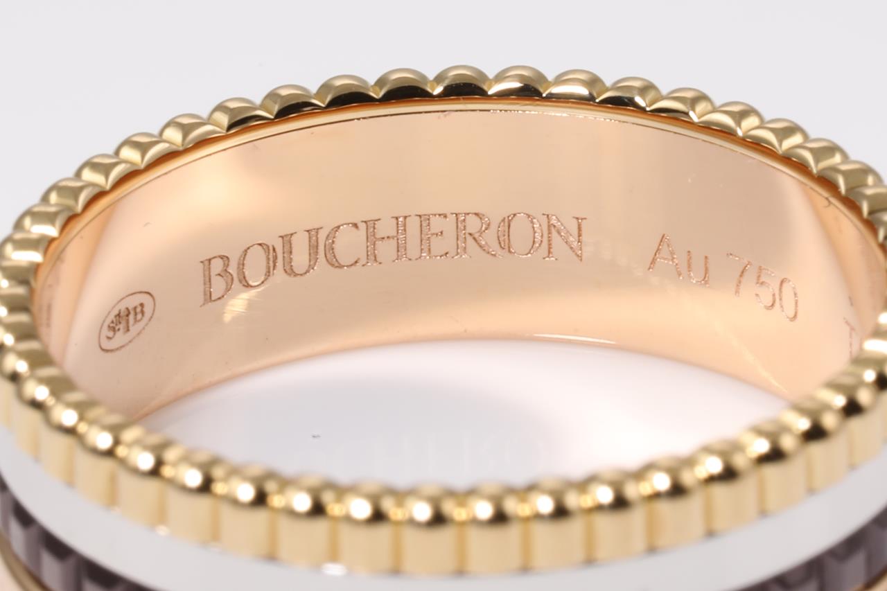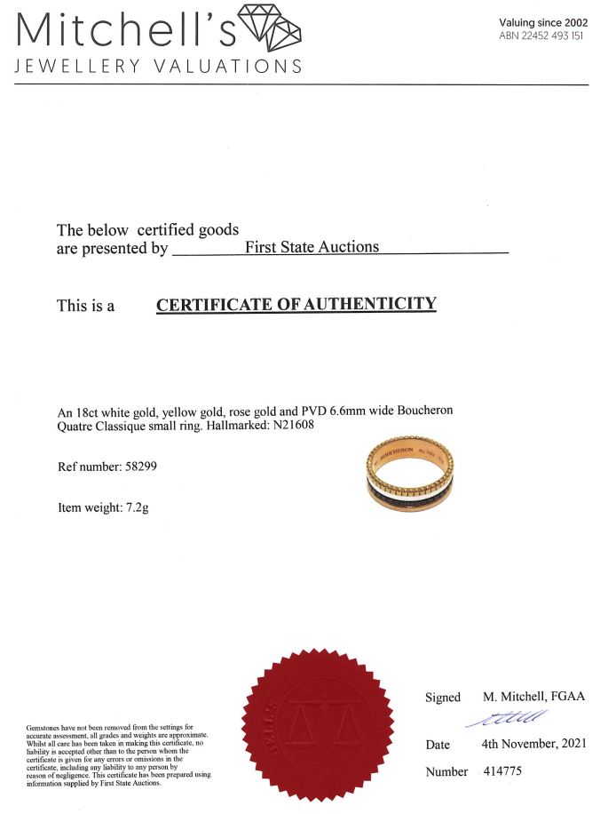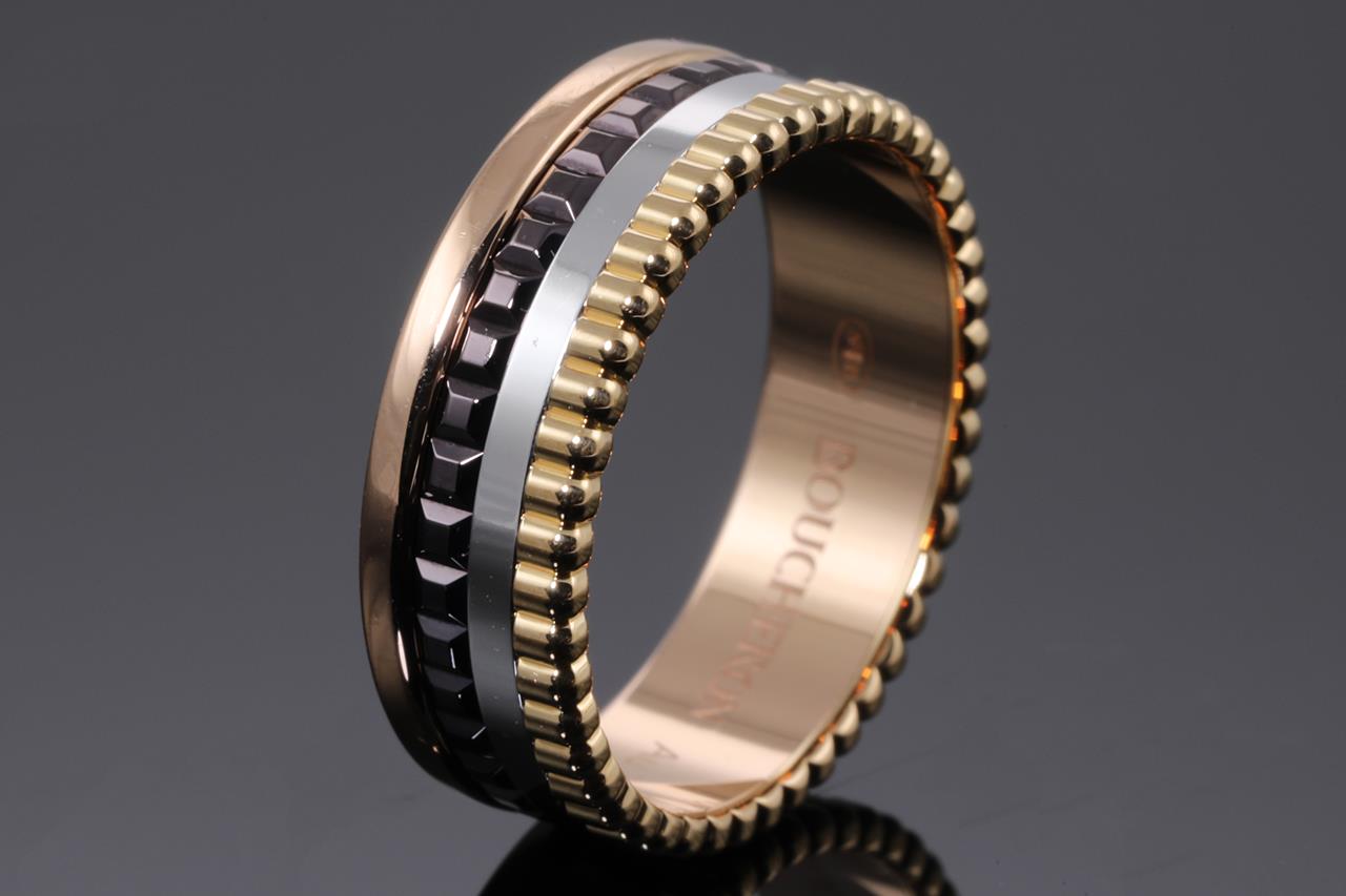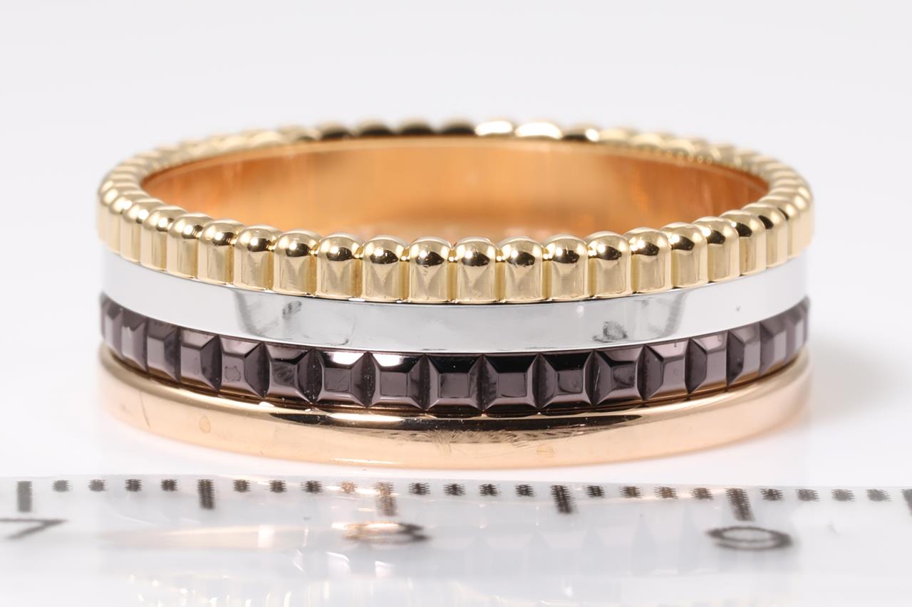 Boucheron Quatre Classique Small ring. Boucheron stamped size T 57, P -cannot be resized. 18ct yellow, white & rose gold with brown PVD. Weight: 7.2g. With certificate #414775. (Pre-owned)