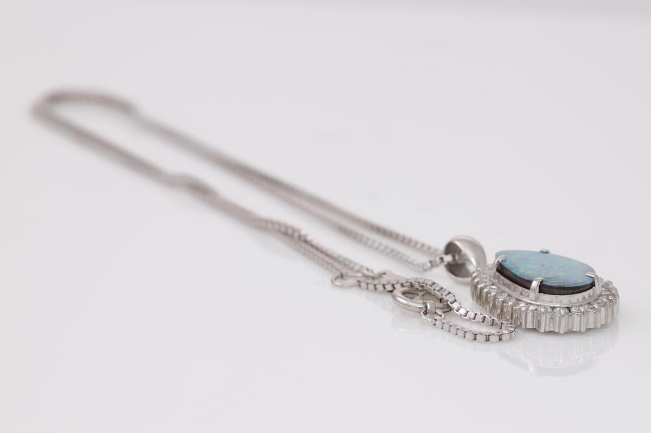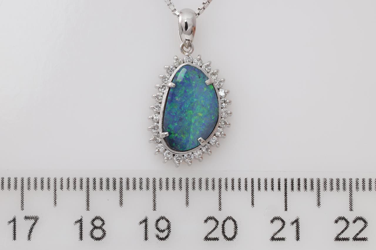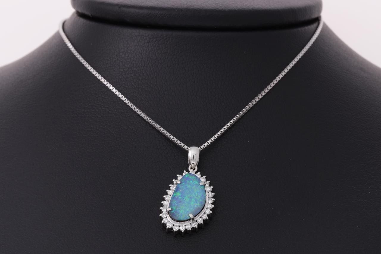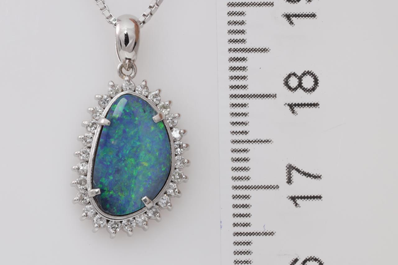 Opal and Diamond pendant with a Boulder Opal of 3.48ct and Diamonds totalling 0.31cts (Estimated grading: H SI-P1). Platinum with 42cm chain. Weight: 7g. (Pre-owned)