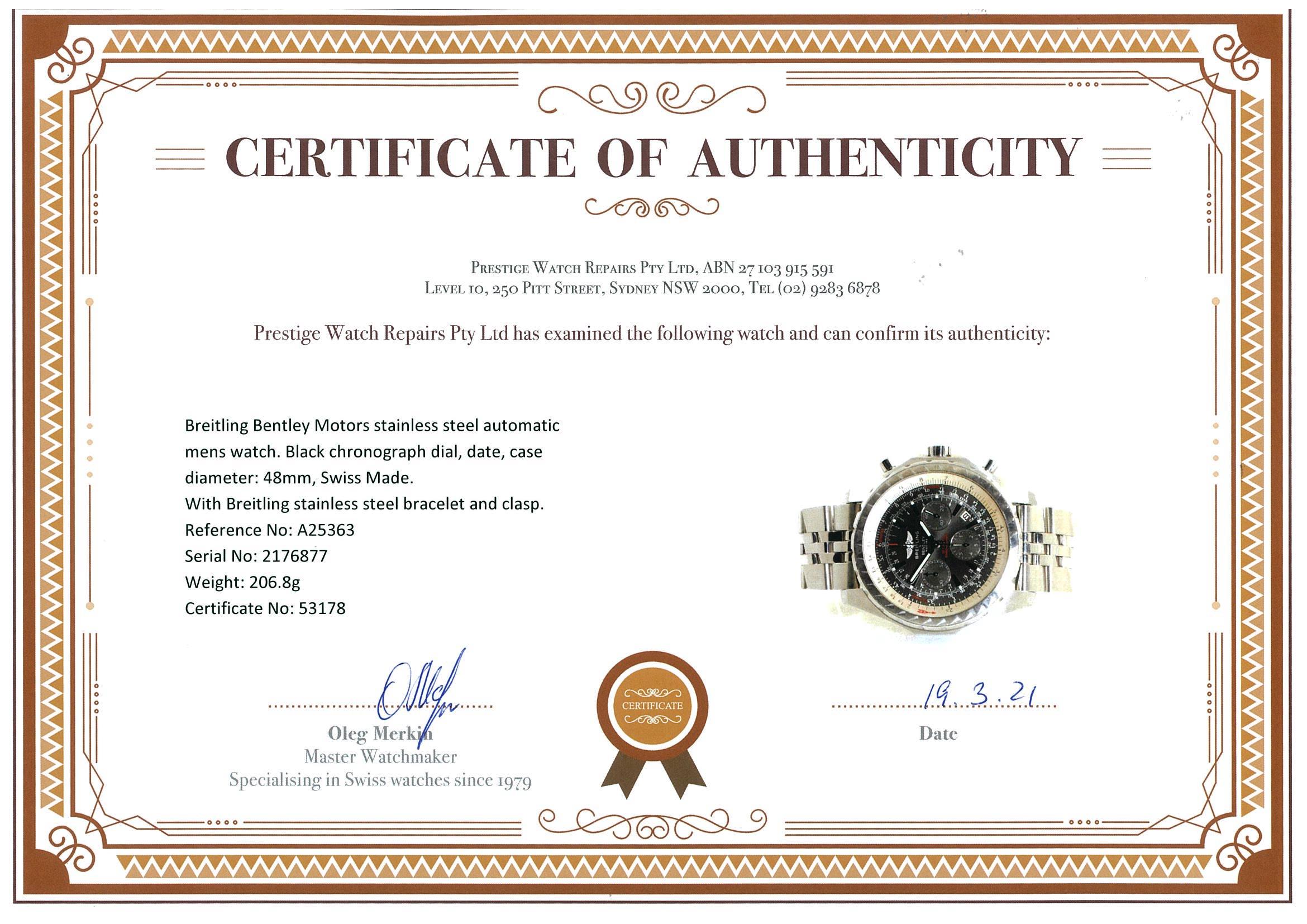 Breitling Bentley Motors Mens Watch | First State Auctions