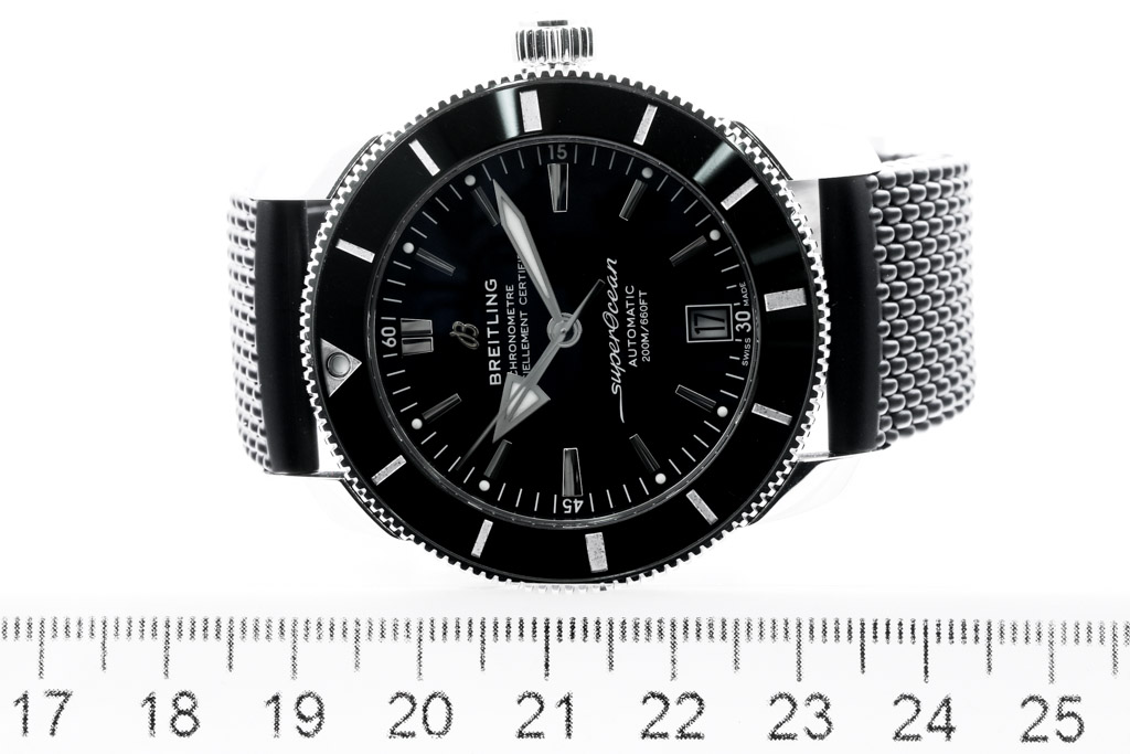 Breitling Superocean Heritage ll stainless steel automatic mens watch. Black dial, date, case diameter: 42mm wrist size: 17cm, Swiss made. Ref# AB2010. With Breitling black rubber strap and clasp. With Certificate of Authenticity. 3 month FSA warranty. (Pre-owned)