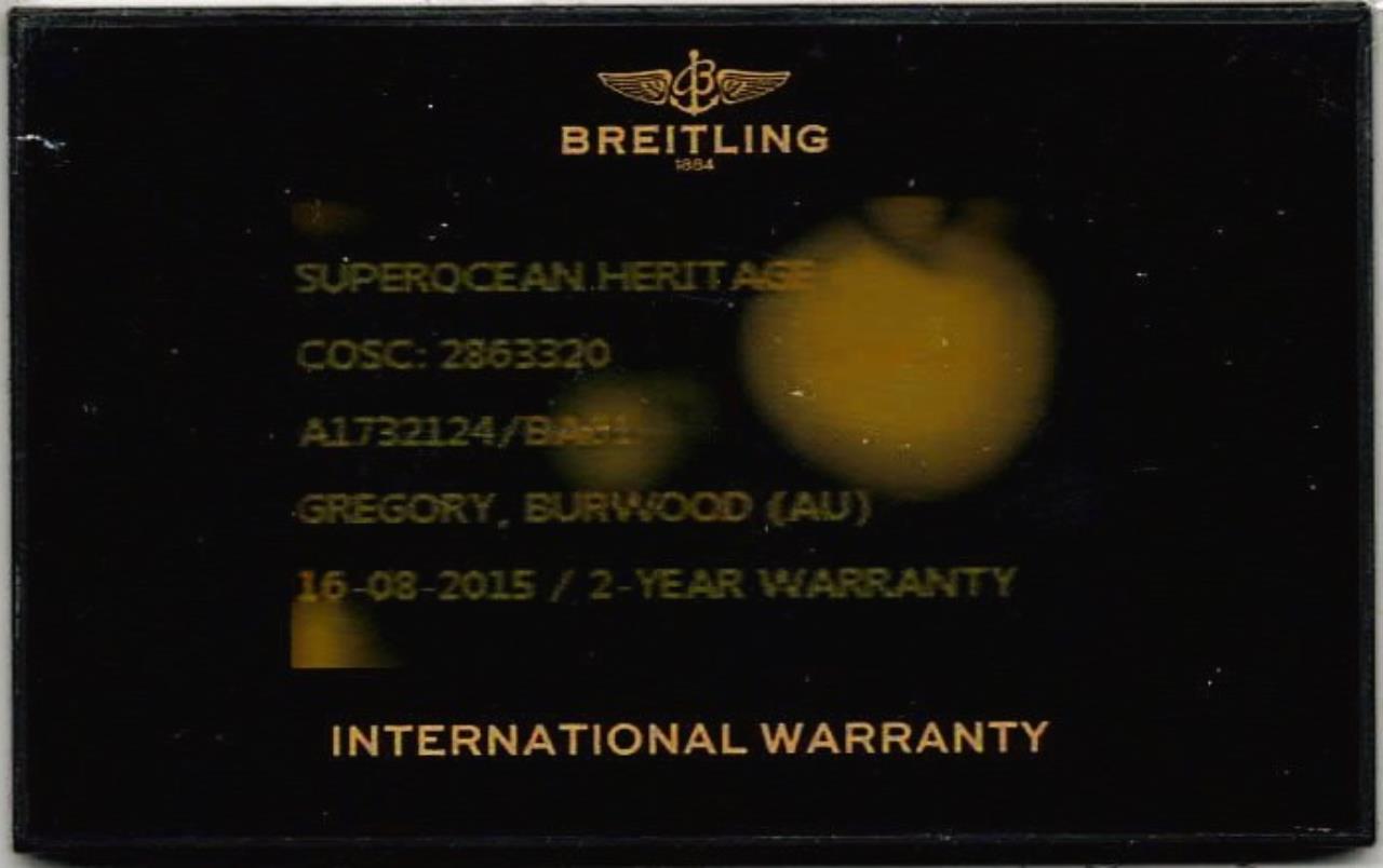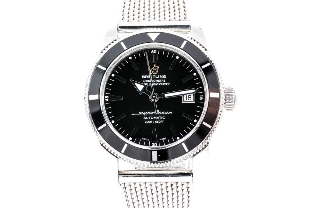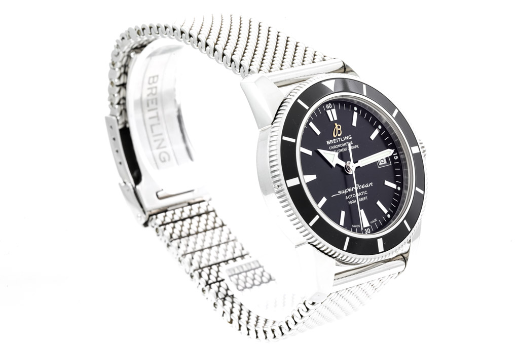 Breitling Superocean Heritage stainless steel automatic mens watch. Black dial, date, case diameter: 42mm, wrist size: 20cm, Swiss made. Ref# A1732124/BA61. With Breitling stainless steel bracelet and clasp. With Certificate of Authenticity and Breitling International warranty E-warranty card dated 16/08/2015. 3 month FSA warranty (Pre-owned)