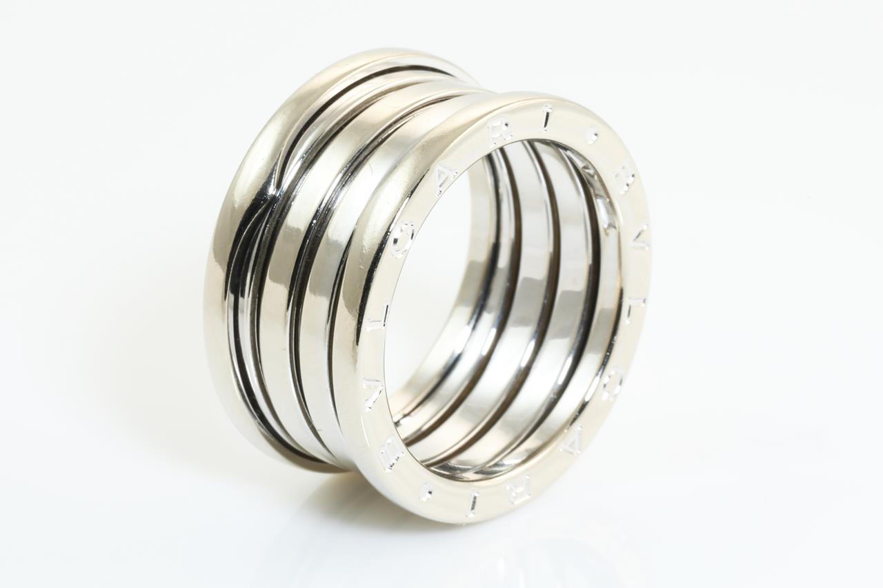 Bvlgari B. Zero 1 mens ring. 18ct white gold. Ring size: O - Ring resizing is not recommended. Bvlgari stamped size 59. Weight: 12.1g (Pre-owned)