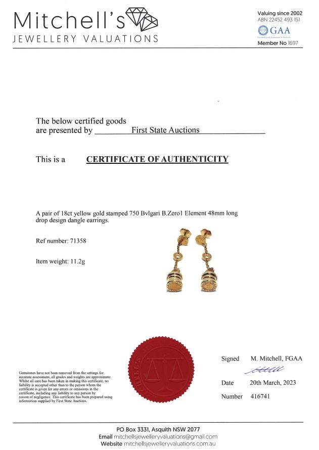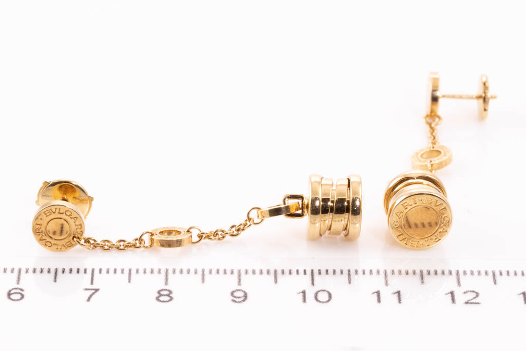 Bvlgari B. Zero1 Element dangle earrings. 18ct yellow gold. Length: 48mm. Weight: 11.2g. With Bvlgari box. With Certificate #416741 (Pre-owned)