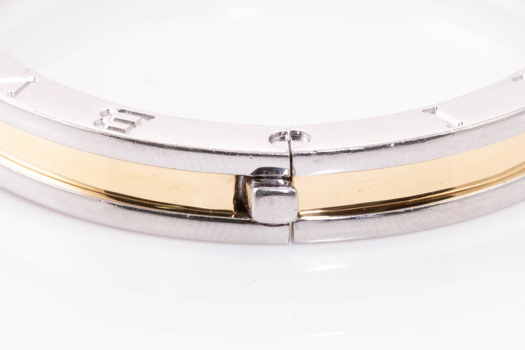 Bvlgari B.Zero1 bracelet. 18ct yellow gold and stainless steel. Made in Italy. Inner circumference: 16cm, oval hinge bracelet. Weight: 26.5g. (Pre-owned)