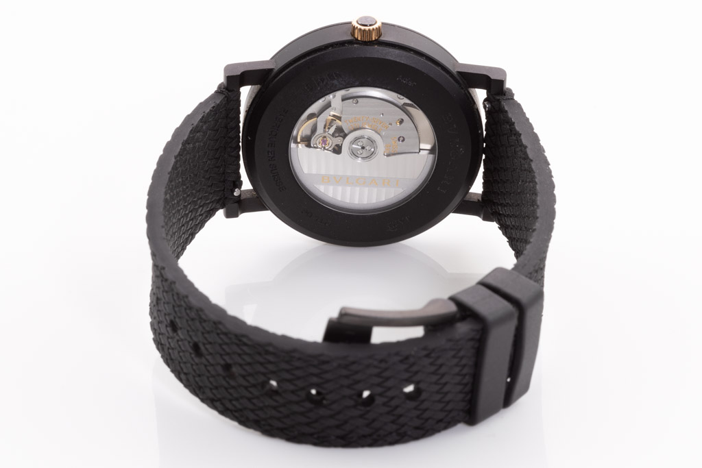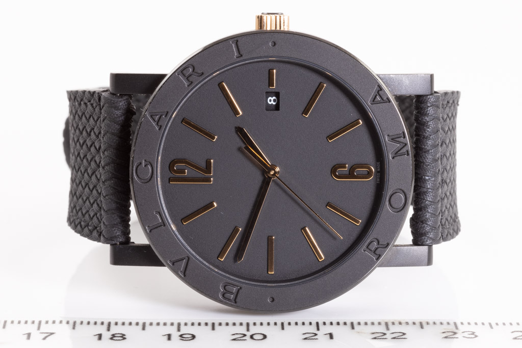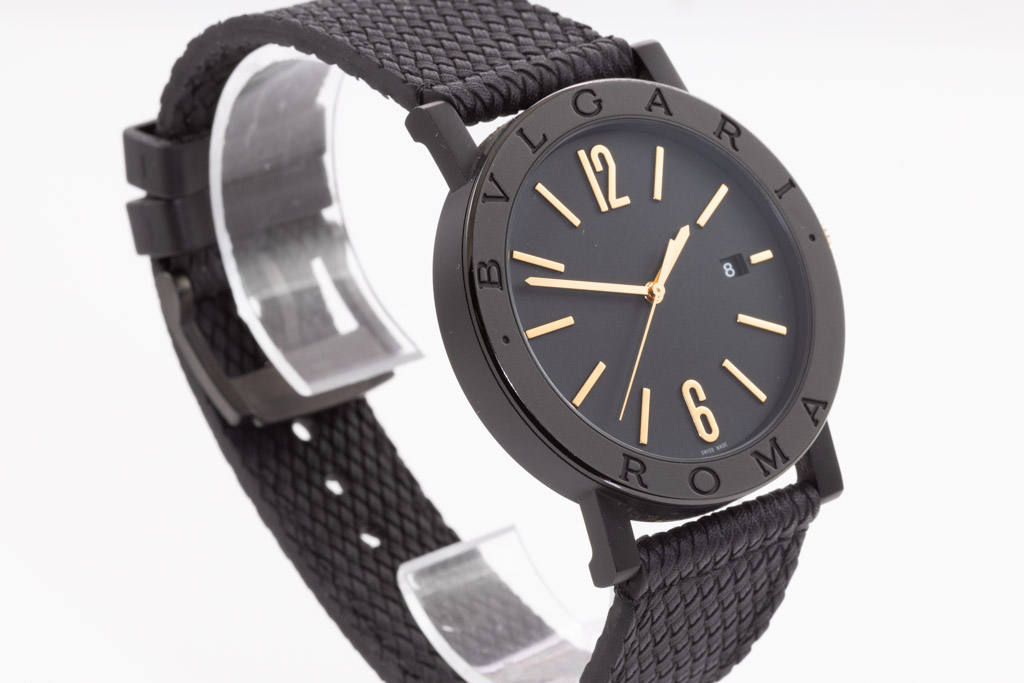 Bvlgari Bvlgari stainless steel automatic mens watch. Black dial, date, case diameter: 41mm, strap length: 21.5cm, Swiss made. Ref# BB41S. With Bvlgari black rubber strap and buckle. With Certificate of Authenticity, Bvlgari International Authenticity card dated 25/06/2020 and Bvlgari box. 3 month FSA warranty. (Pre-owned)