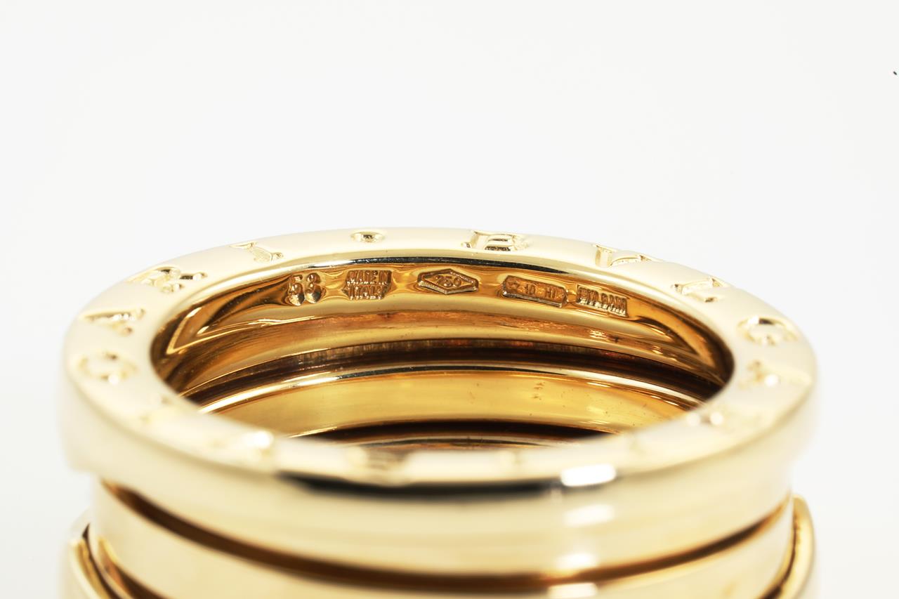 Bvlgari B.Zero 1 ring. 18ct yellow gold. Bvlgari stamped size 53. Ring size L - resizing is not recommended. Made in Italy. Weight: 10.3g (Pre-owned)
