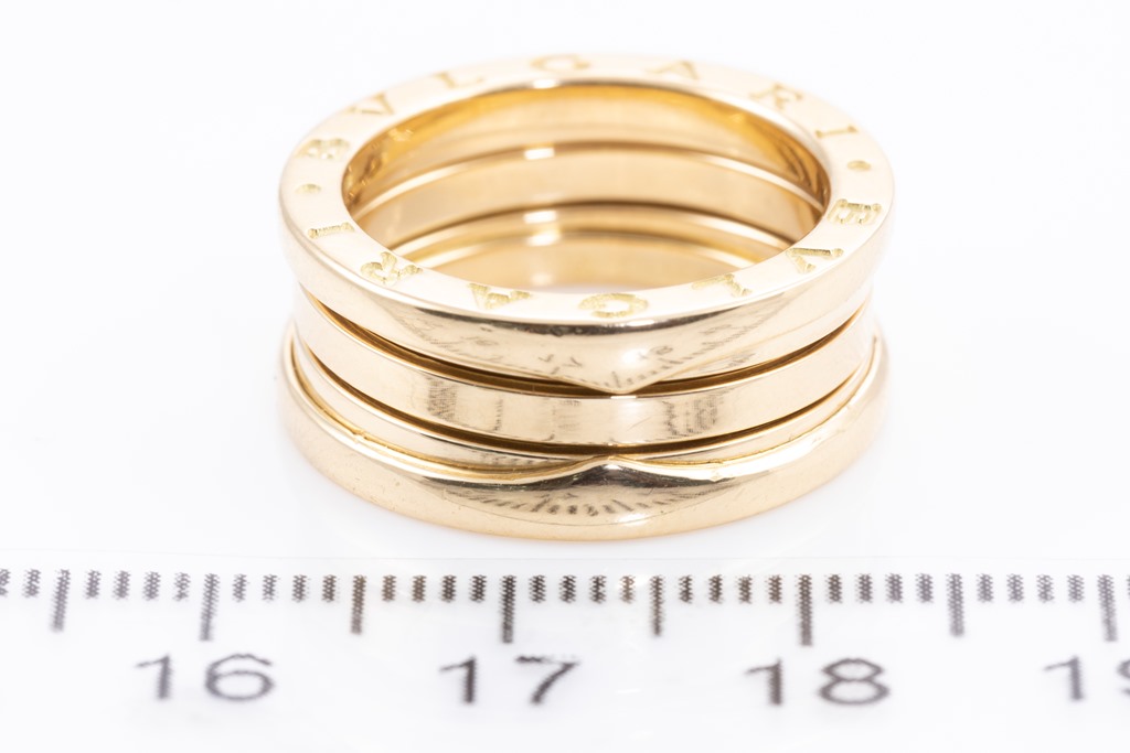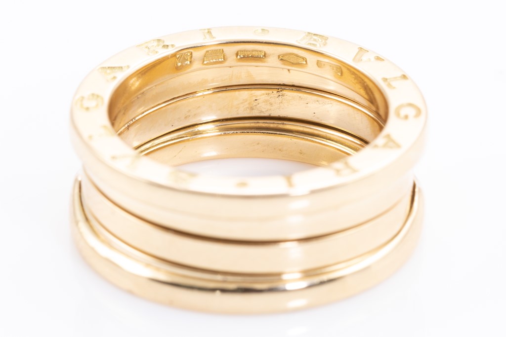 Bvlgari B.Zero 1 ring. 18ct yellow gold. Bvlgari stamped size 52 (actual size K1/2) - resizing is not recommended. Made in Italy. With Bvlgari box. Weight: 10.5g. (Pre-owned)