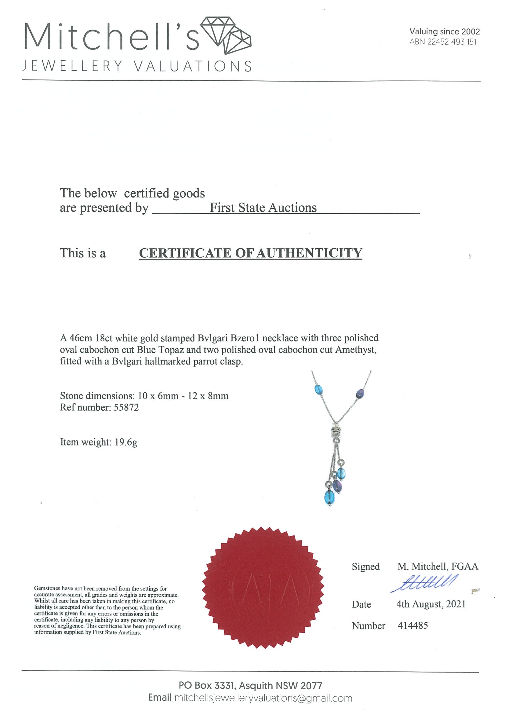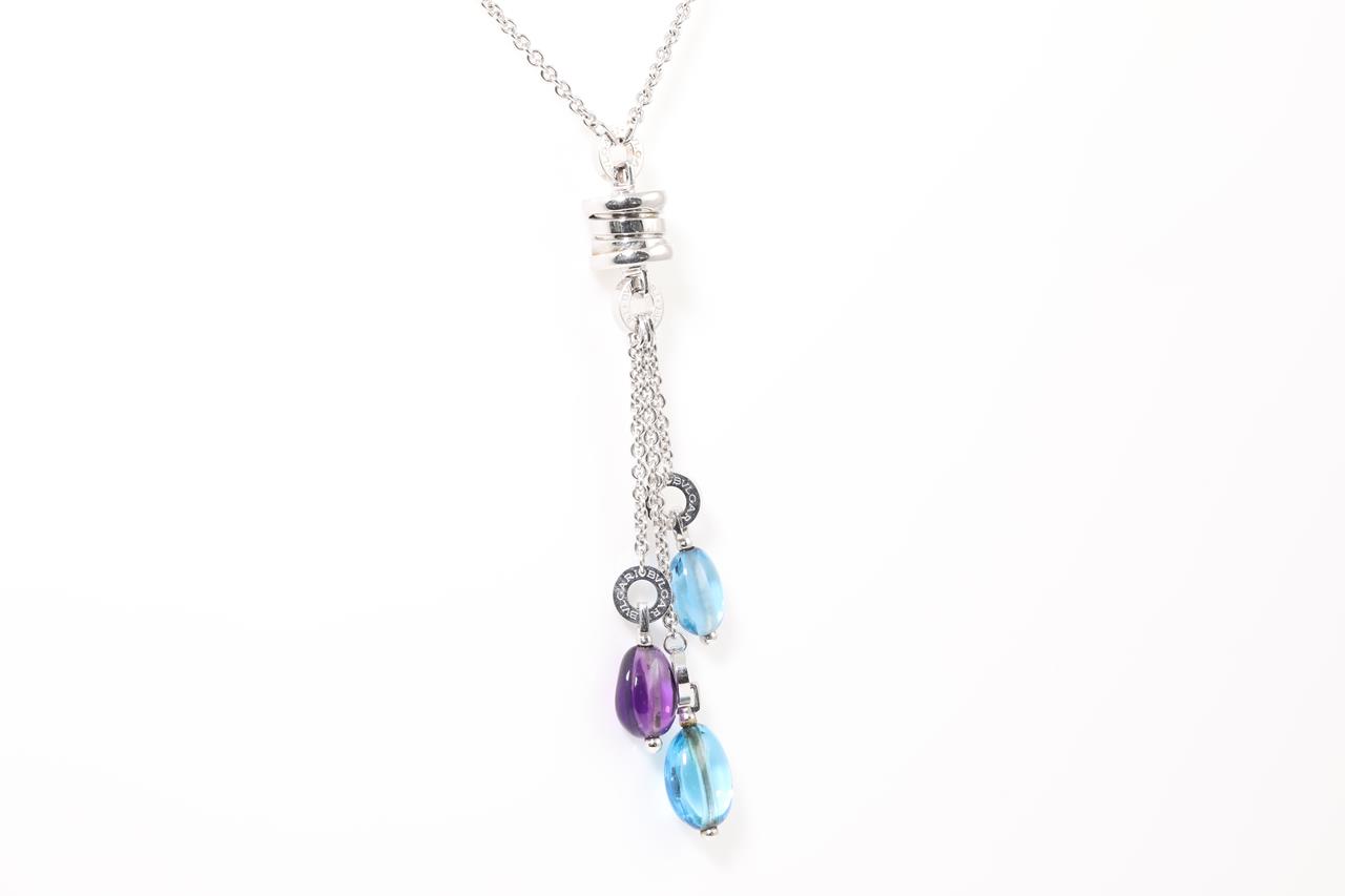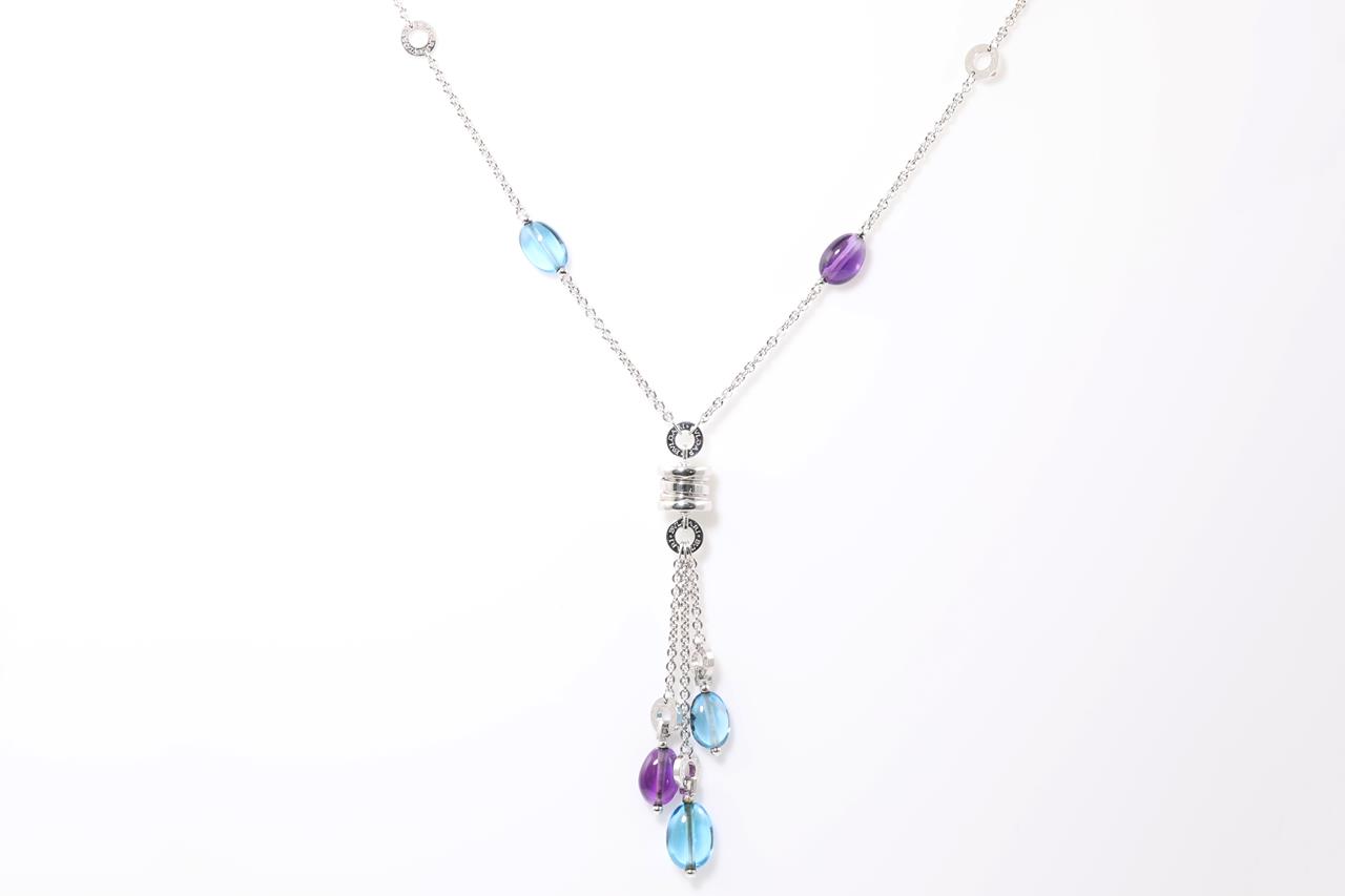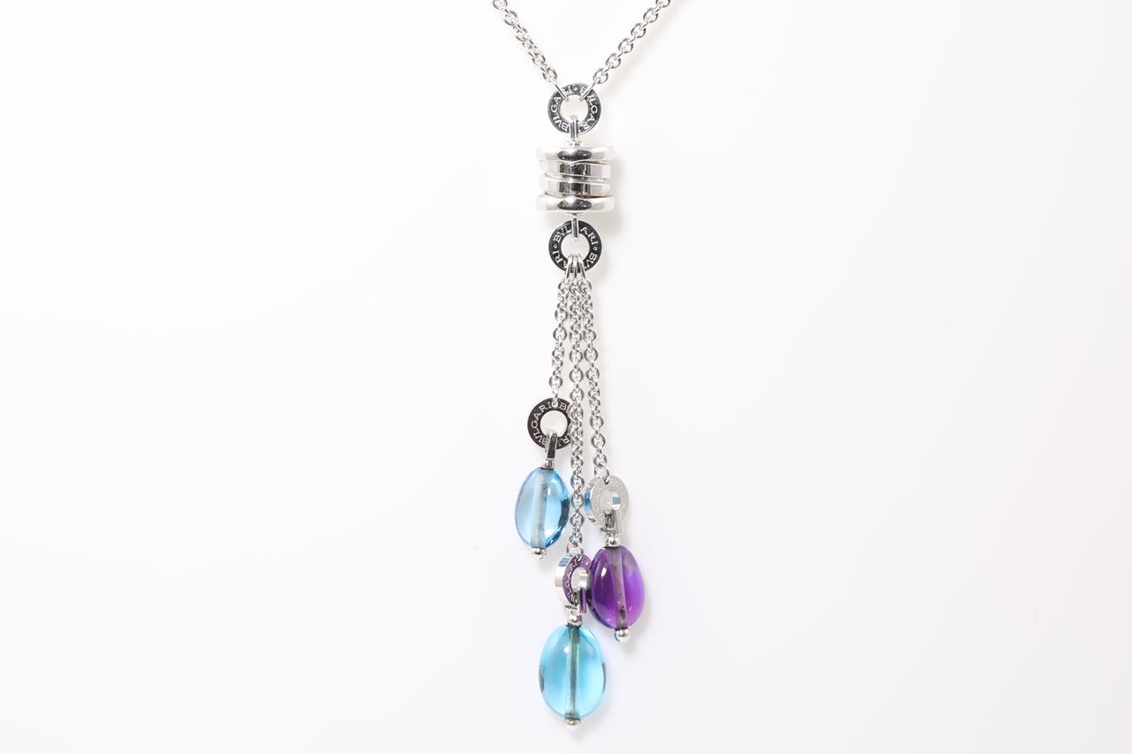 Bvlgari B.Zero1 Lavalier necklace with cabachon cut Topaz & Amethyst. 18ct white gold. Adjustable max length: 46cm. With Bvlgari box. Weight: 19.6g. With certificate #414485. (Pre-owned)