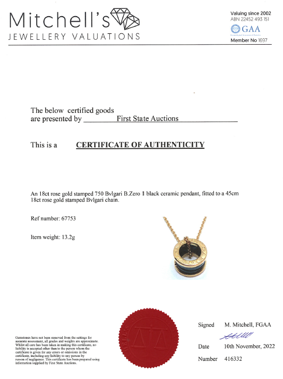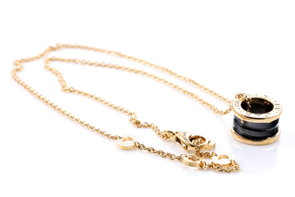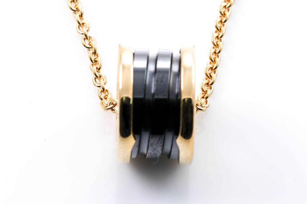 Bvlgari B. Zero1 necklace. 18ct rose gold and black ceramic with Bvlgari 18ct rose gold adjustable max 45cm chain. Weight: 13.2g. With Certificate #416332. (Pre-owned)