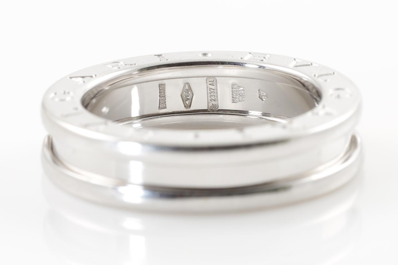 Bvlgari B.zero1 one-band ring. 18ct white gold. Bvlgari stamped size 47, H1/2 - ring resizing is not recommended. Weight: 6.6g. Design ref# 336016. With Bvlgari box. (Pre-owned)