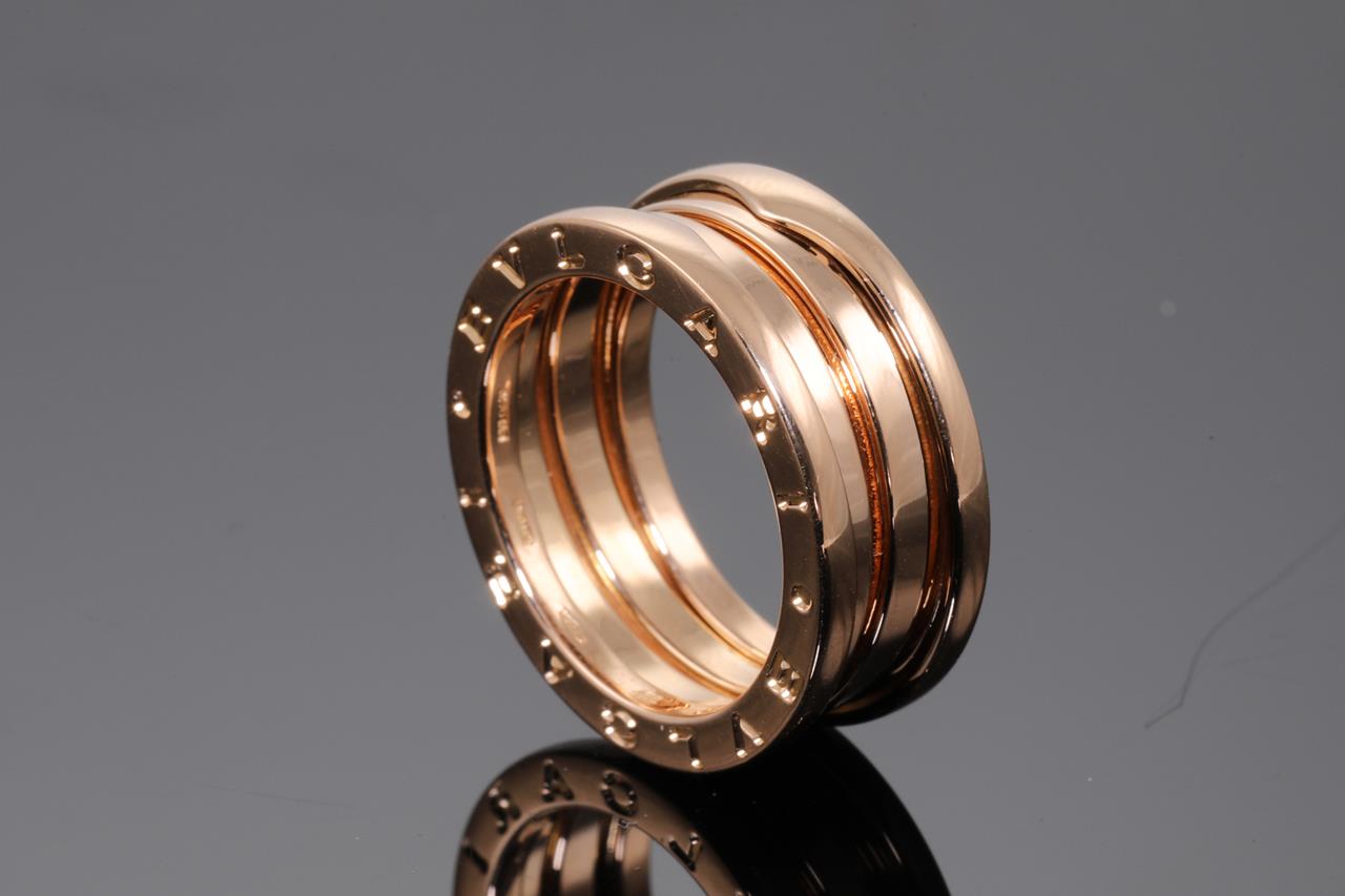 Bvlgari B.Zero1 18ct rose gold ring. Bvlgari stamped size 55, N - ring resizing is not recommended. Made in Italy. Weight: 9.4g. (Pre-owned)