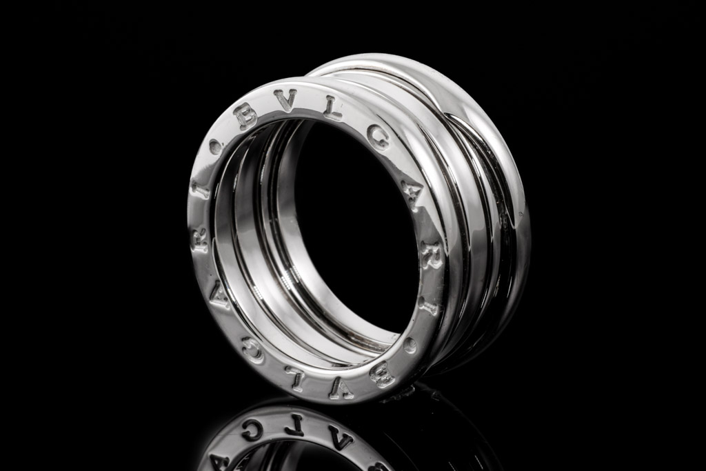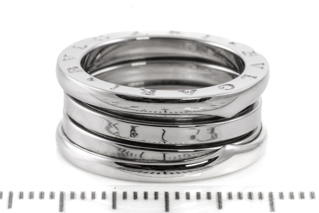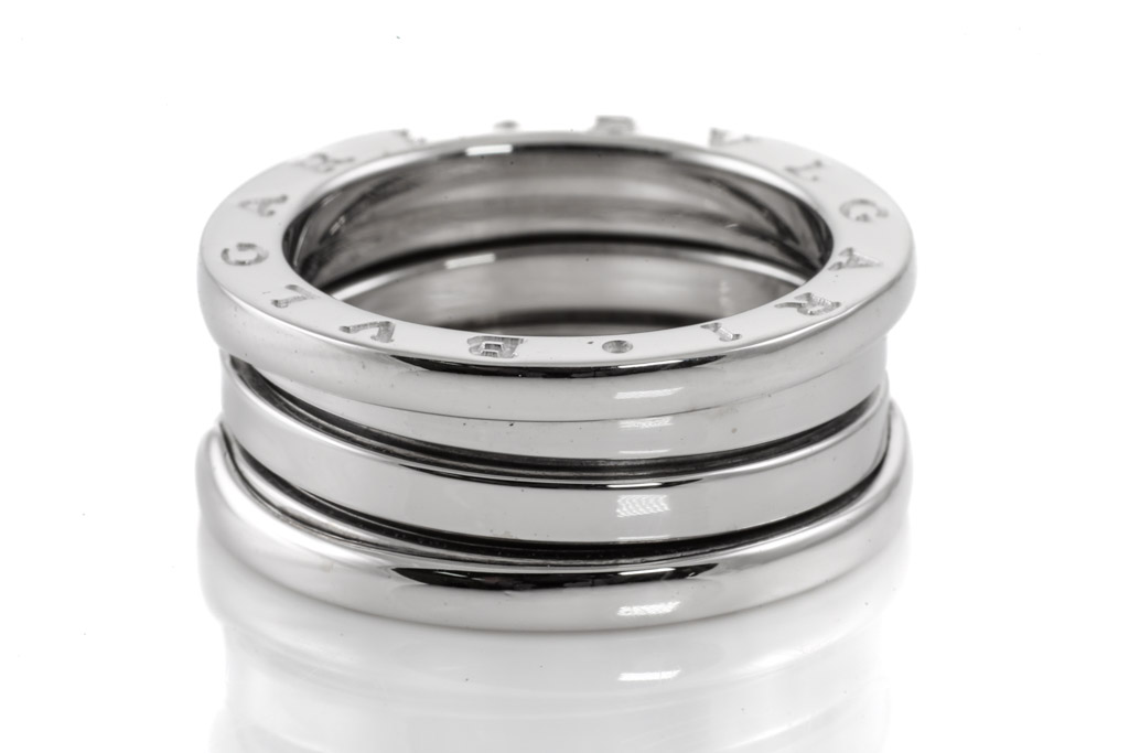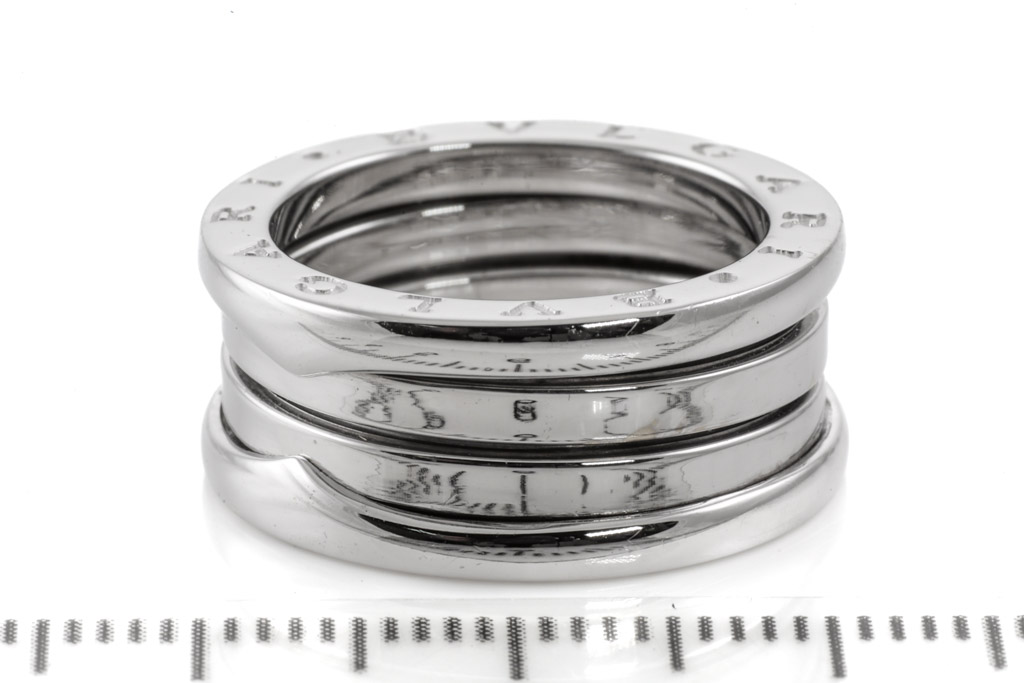 Bvlgari B.Zero1 three-band ring. 18ct white gold. Bvlagri stamped size 51, J1/2 - ring resizing is not recommended. Width: Made in Italy. With Blvgari box. Weight: 10.4g. (Pre-owned)