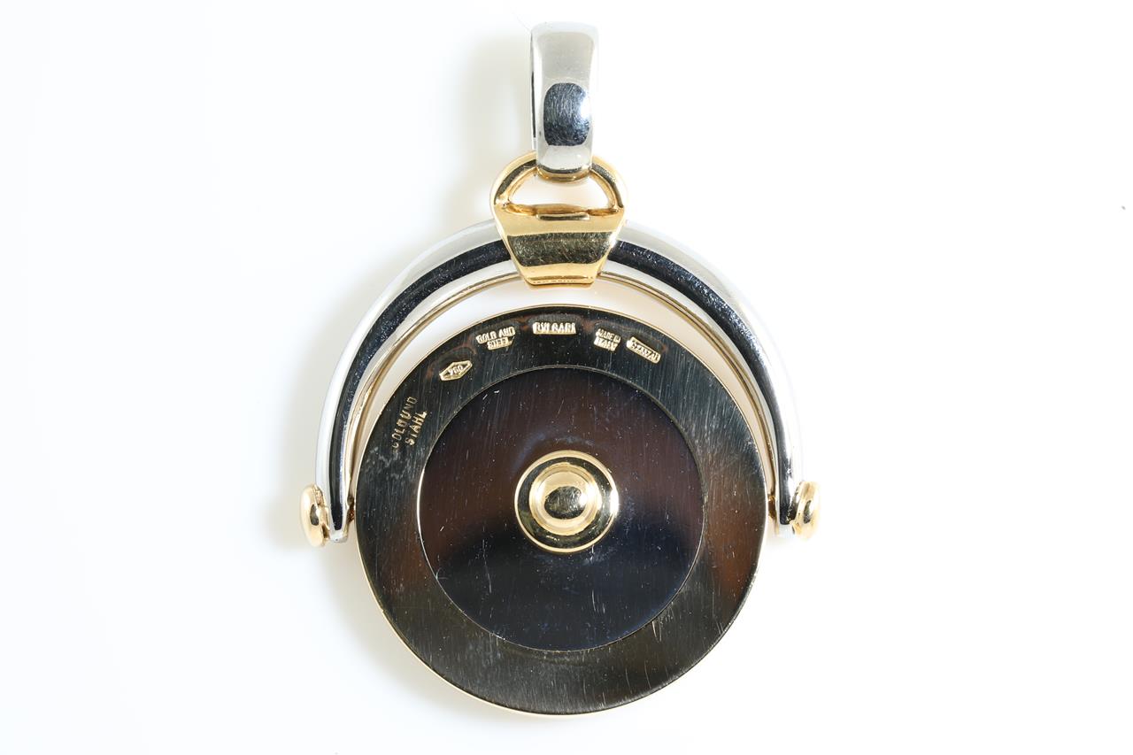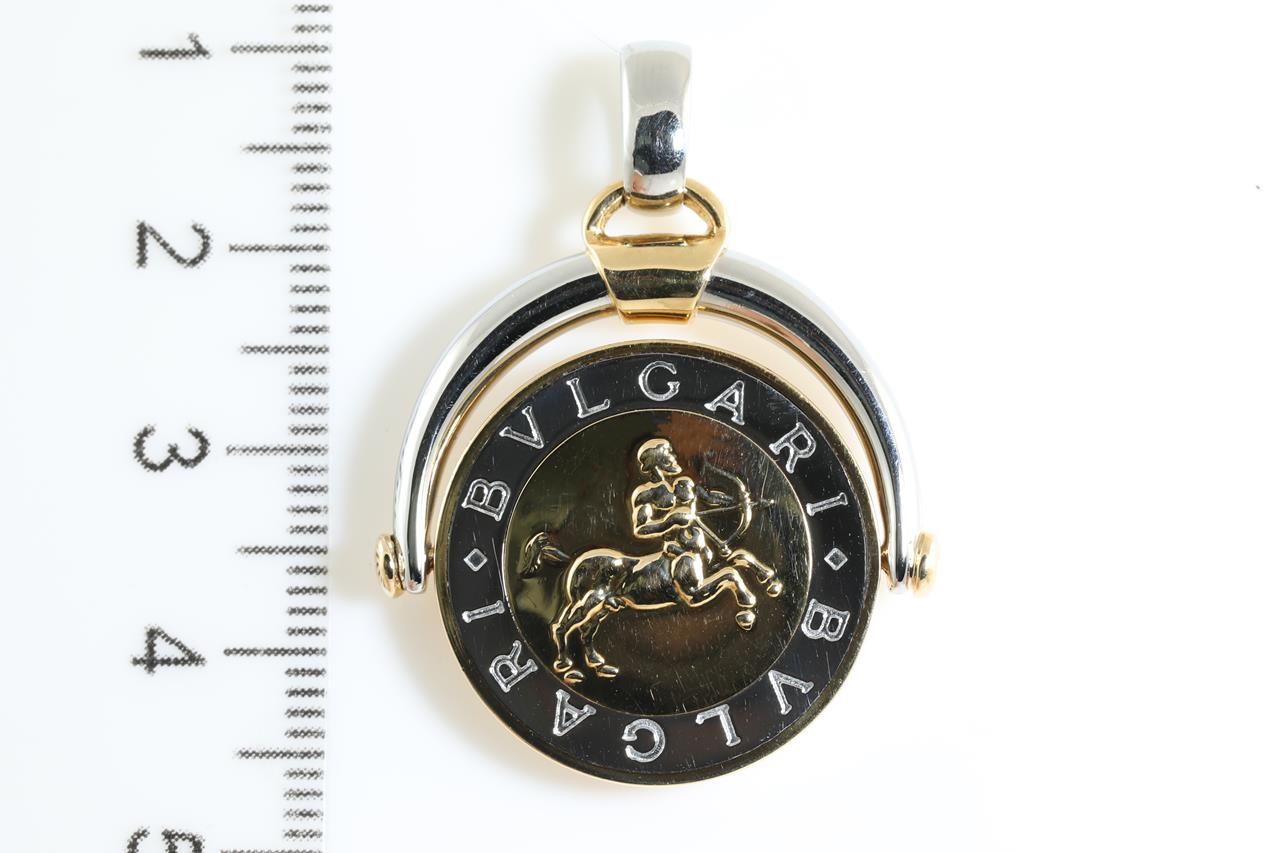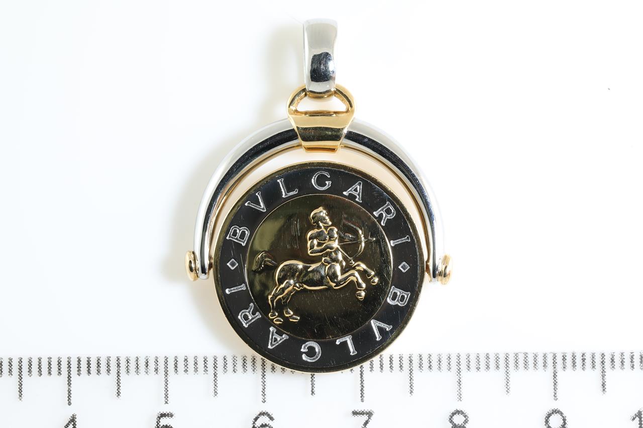 Bvlgari Sagittarius Horoscope flip medallion pendant. 18ct yellow gold and stainless steel. Made in Italy. Weight: 13.6g. (Pre-owned)