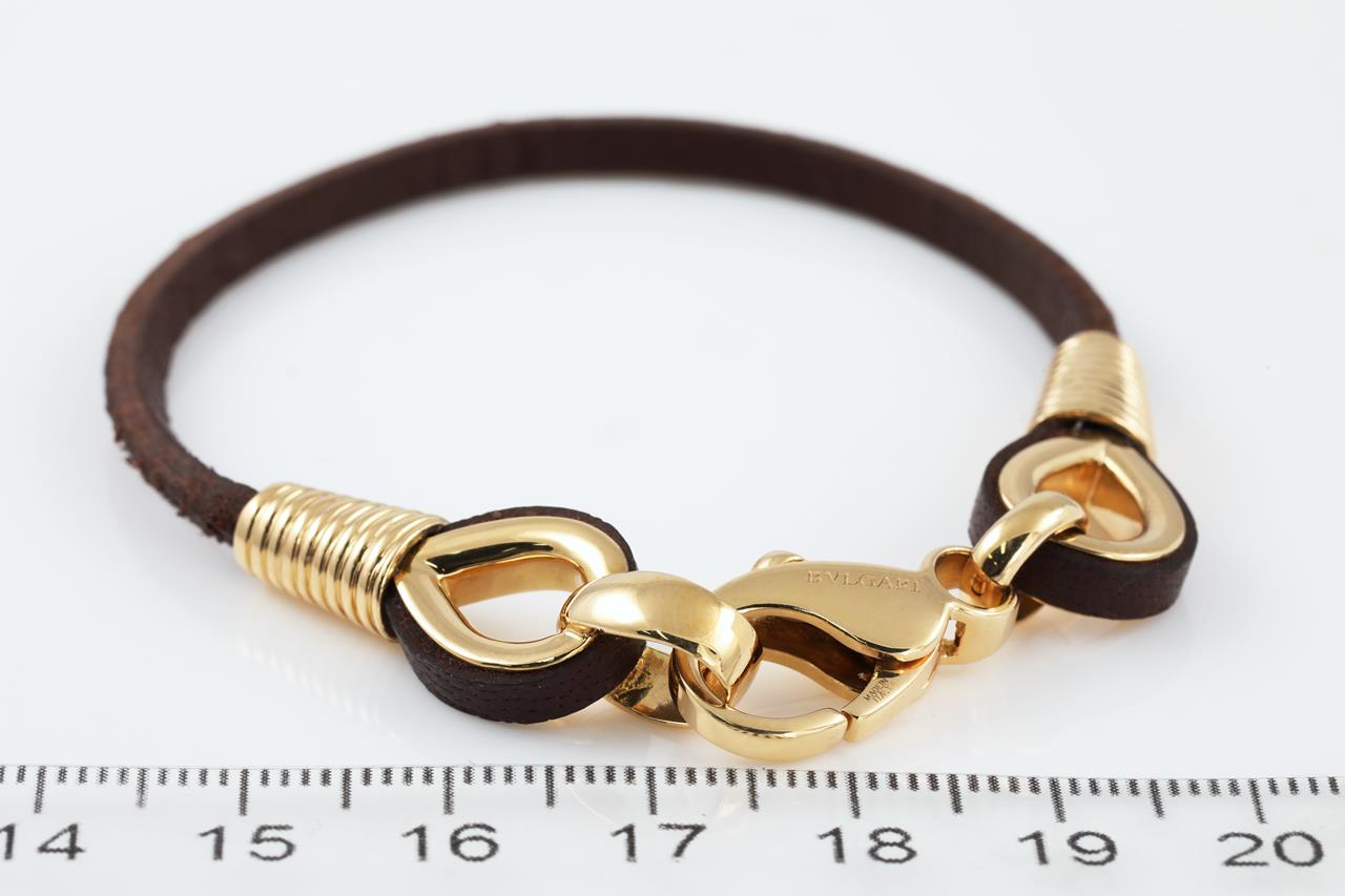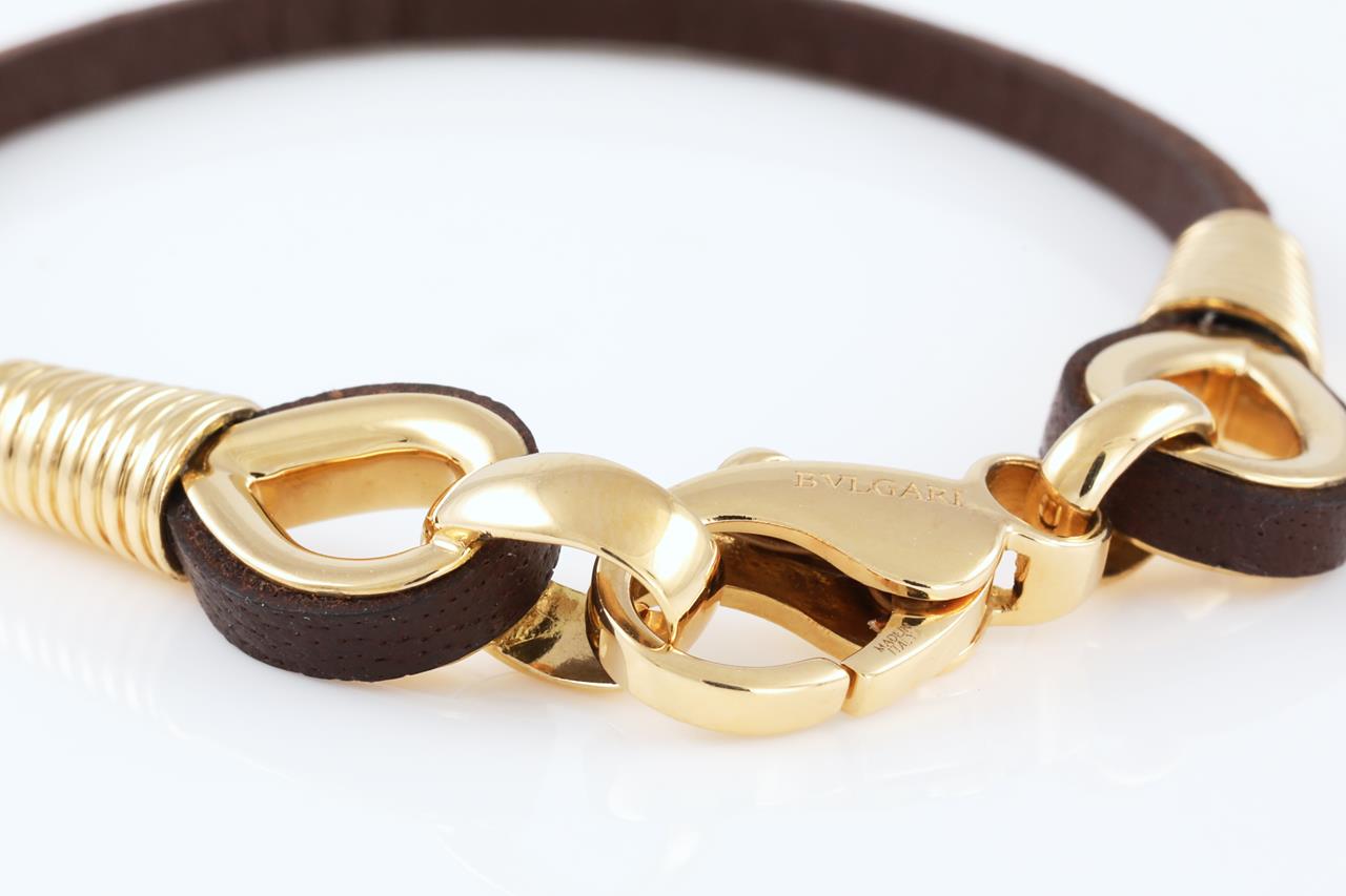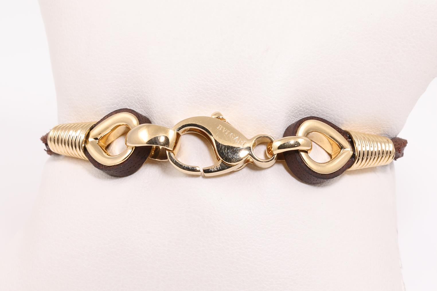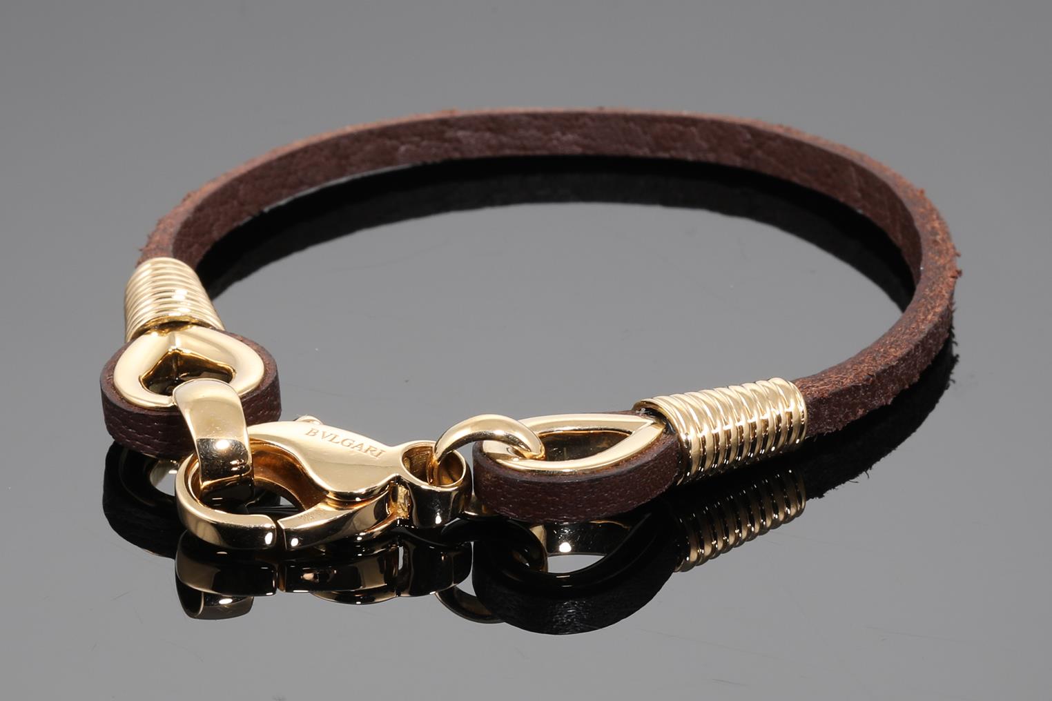 Bvlgari bracelet with brown leather strap. Made in Italy. Weight: 13.6g. Length: 18cm. (Pre-owned)