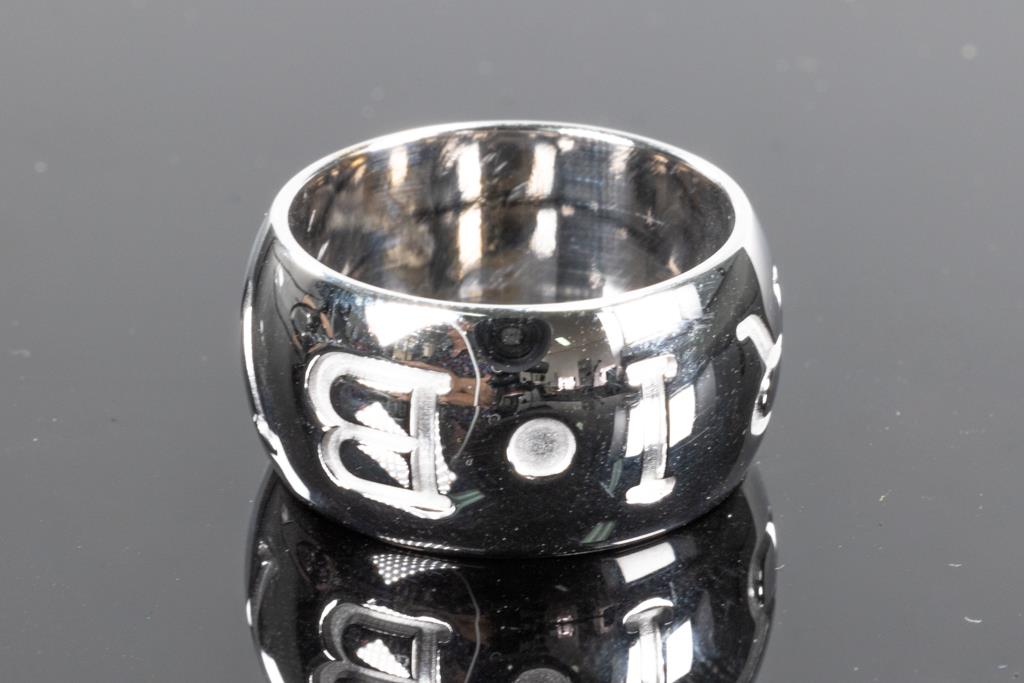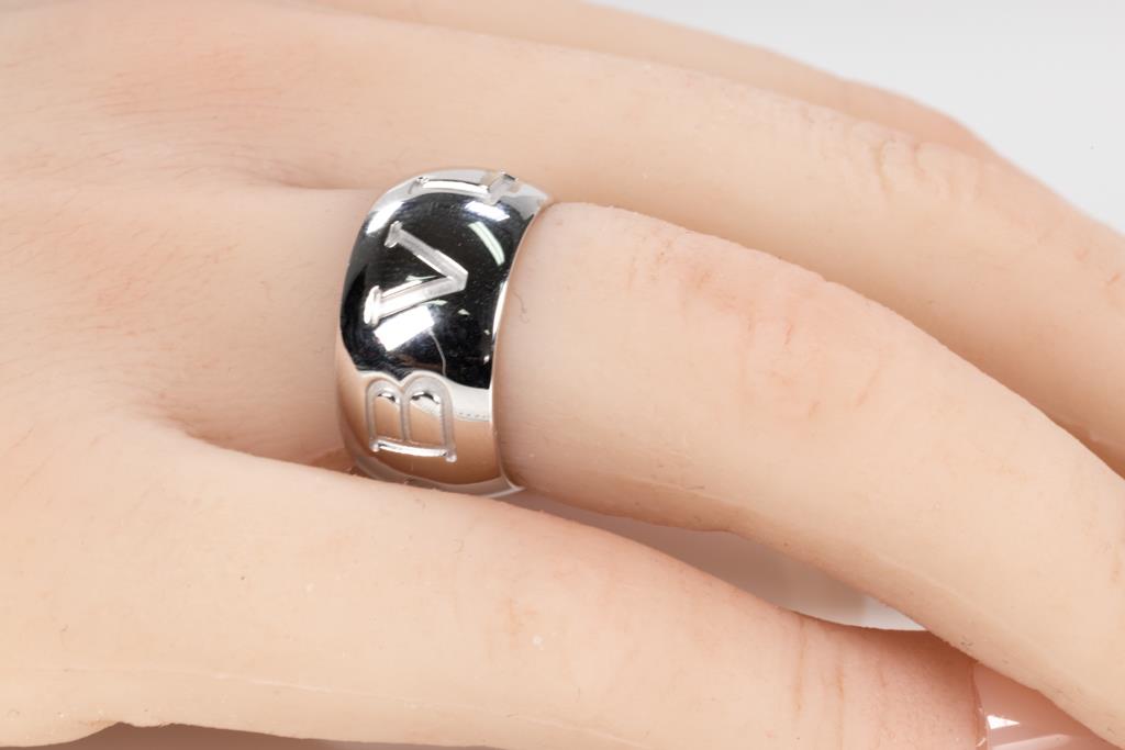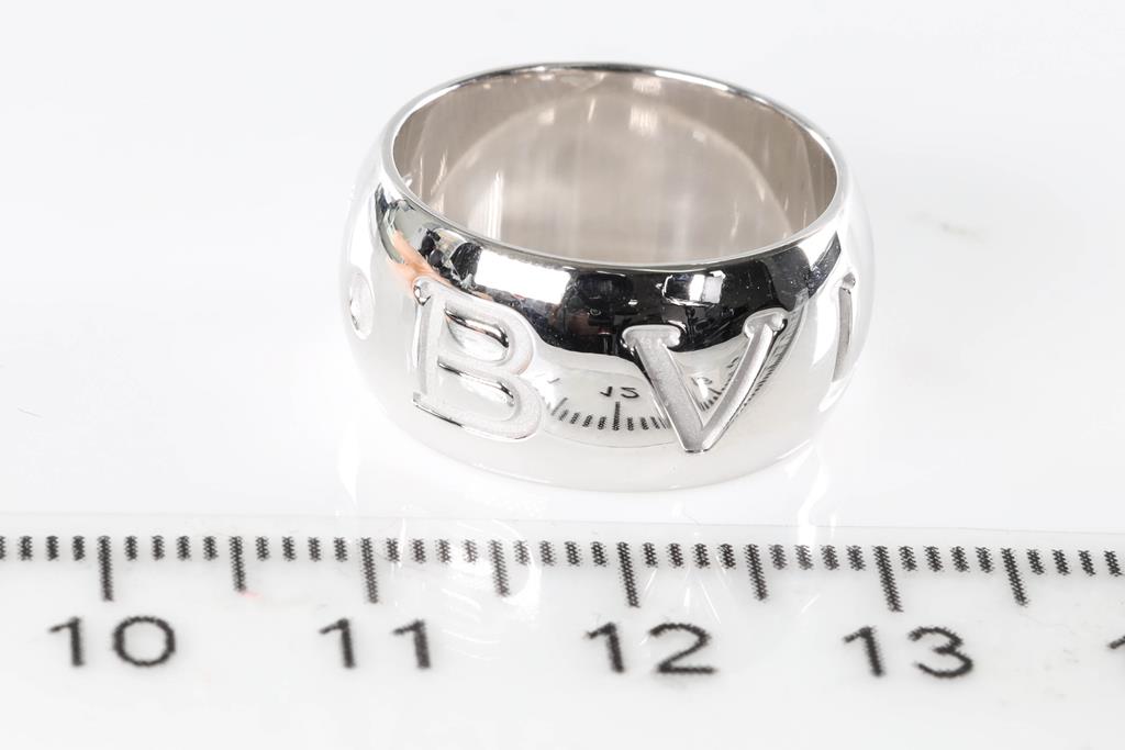 Bvlgari Monologo Ring. 18ct white gold. Made in Italy. Bvlgari stamped size: 51 (actual size J1/2) - ring resizing is not recommended. Weight: 12.1g. (Pre-owned)