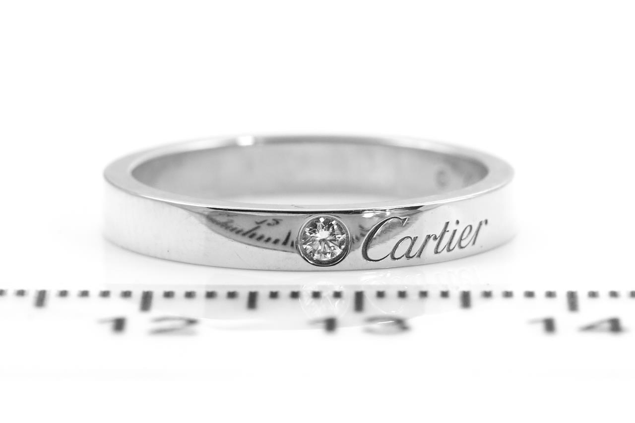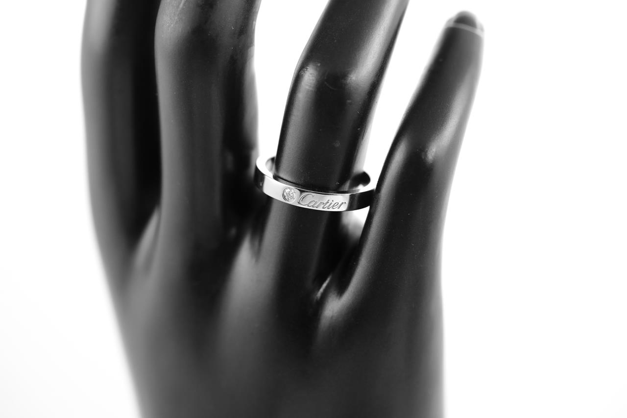 C De Cartier Wedding Ring with a round Diamond of 0.03ct. Width 3mm. Platinum. Cartier stamped size 55, N1/2 - ring resizing is not recommended. Weight: 5.5g. With Cartier box. (Pre-owned)