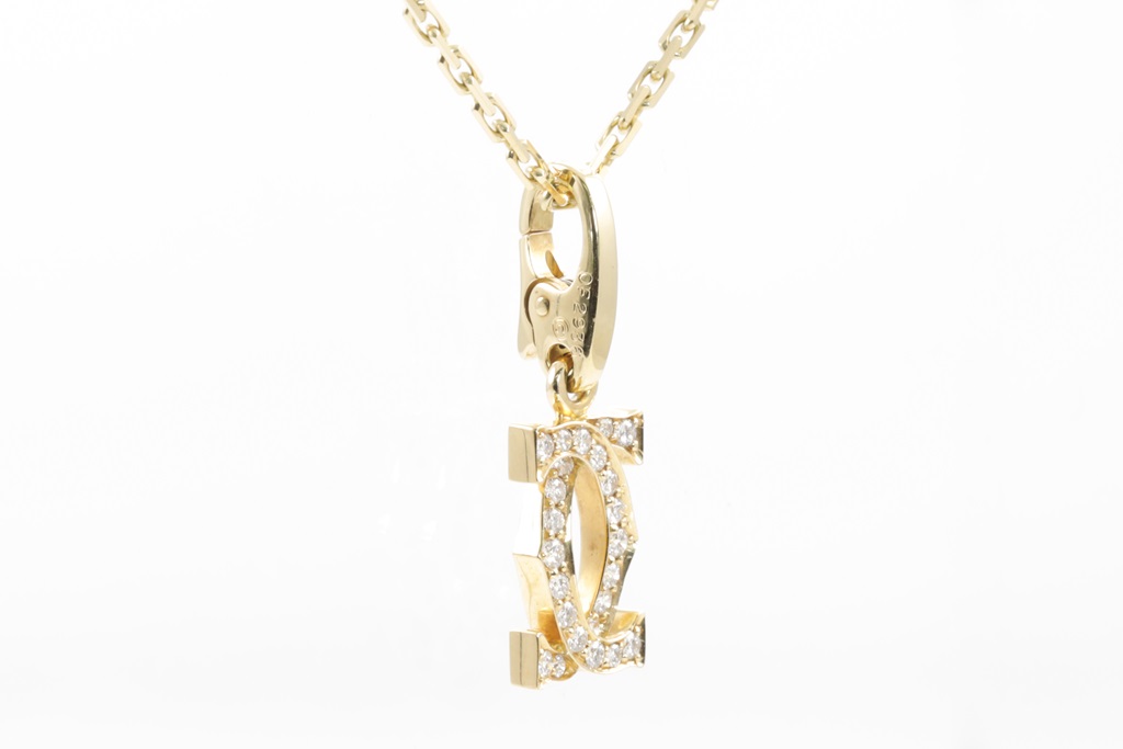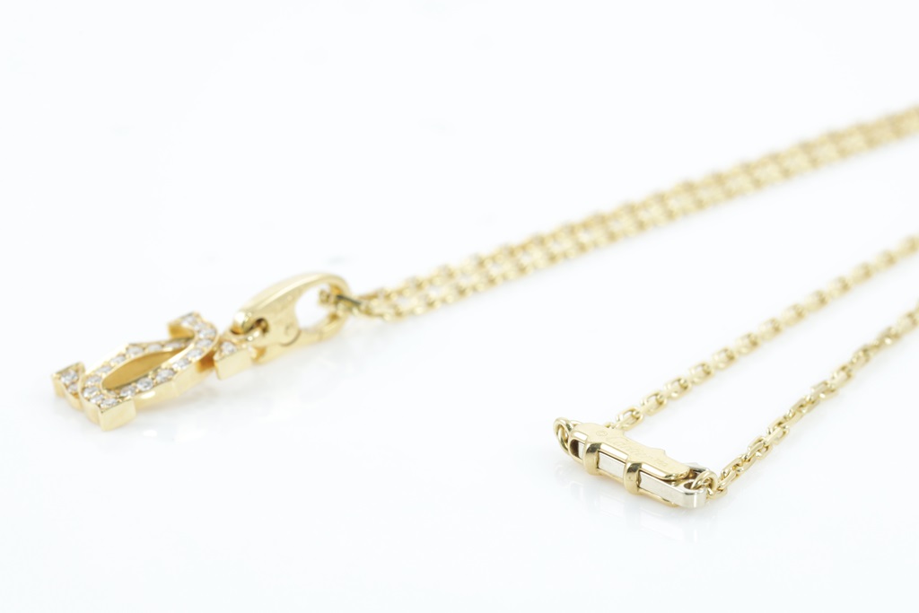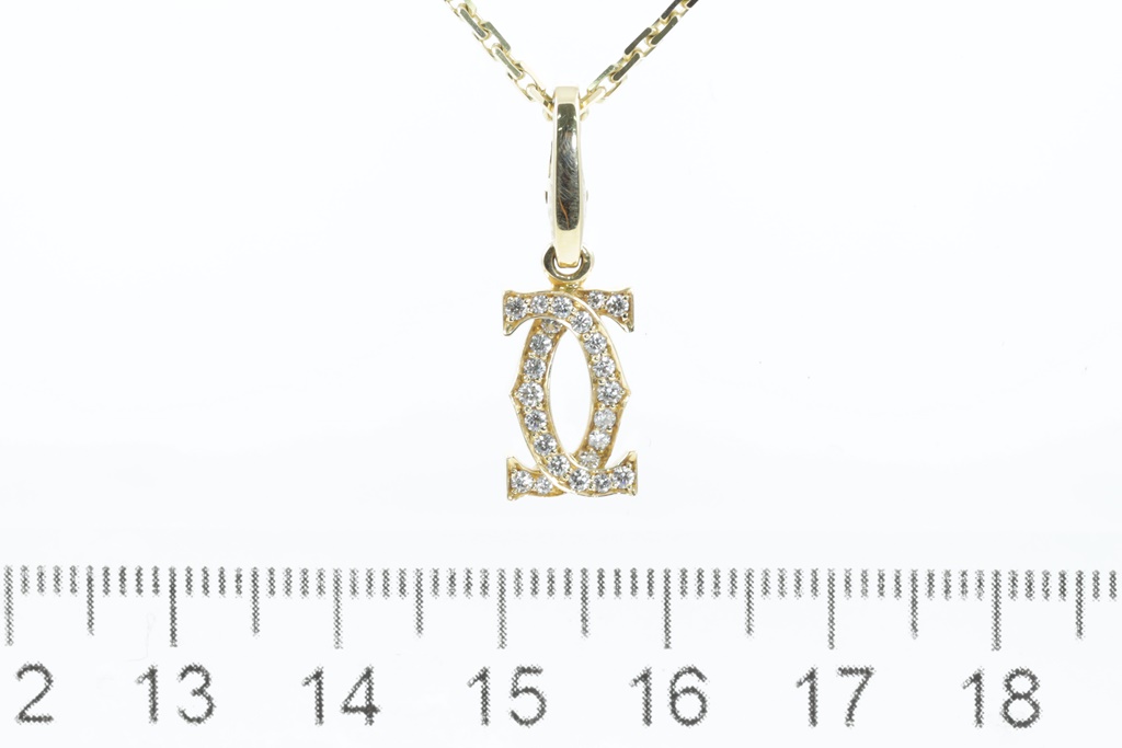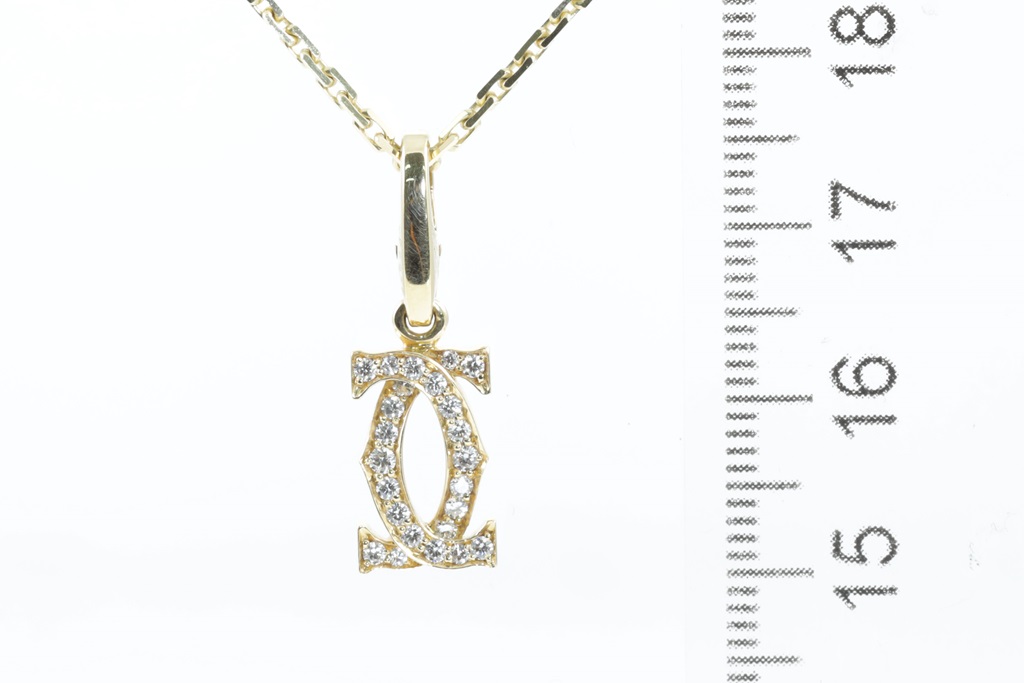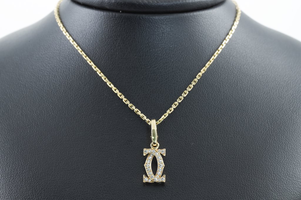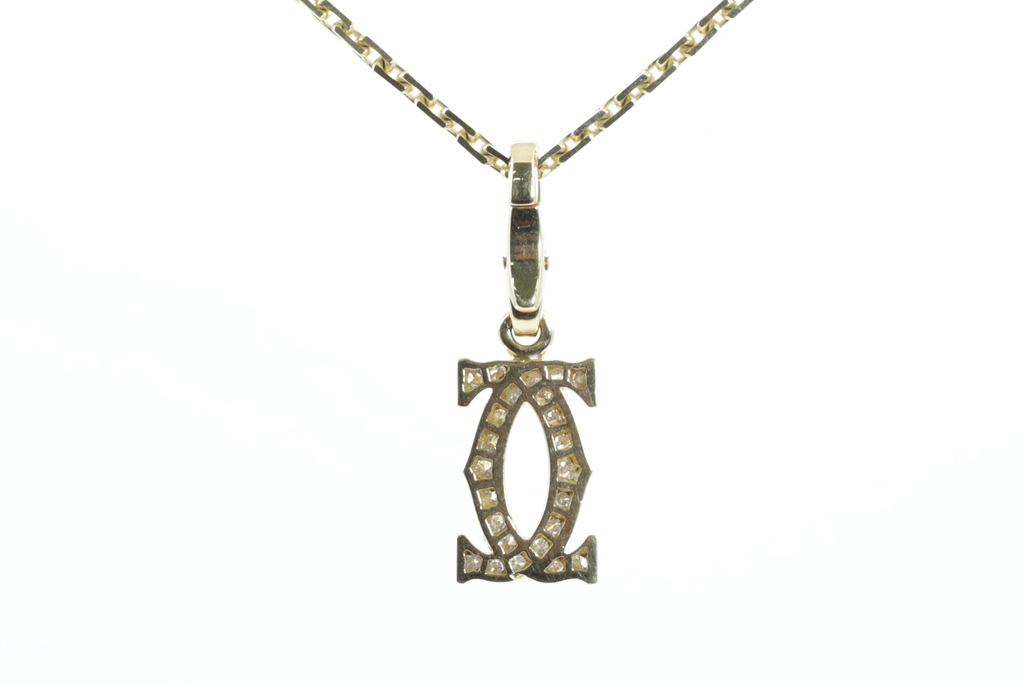 Cartier 2C charm pendant with round Diamonds totalling approximately 0.21cts. 18ct yellow gold with 42cm 18ct yellow gold Cartier chain. Weight: 7.2g. With certificate #415483. (Pre-owned)