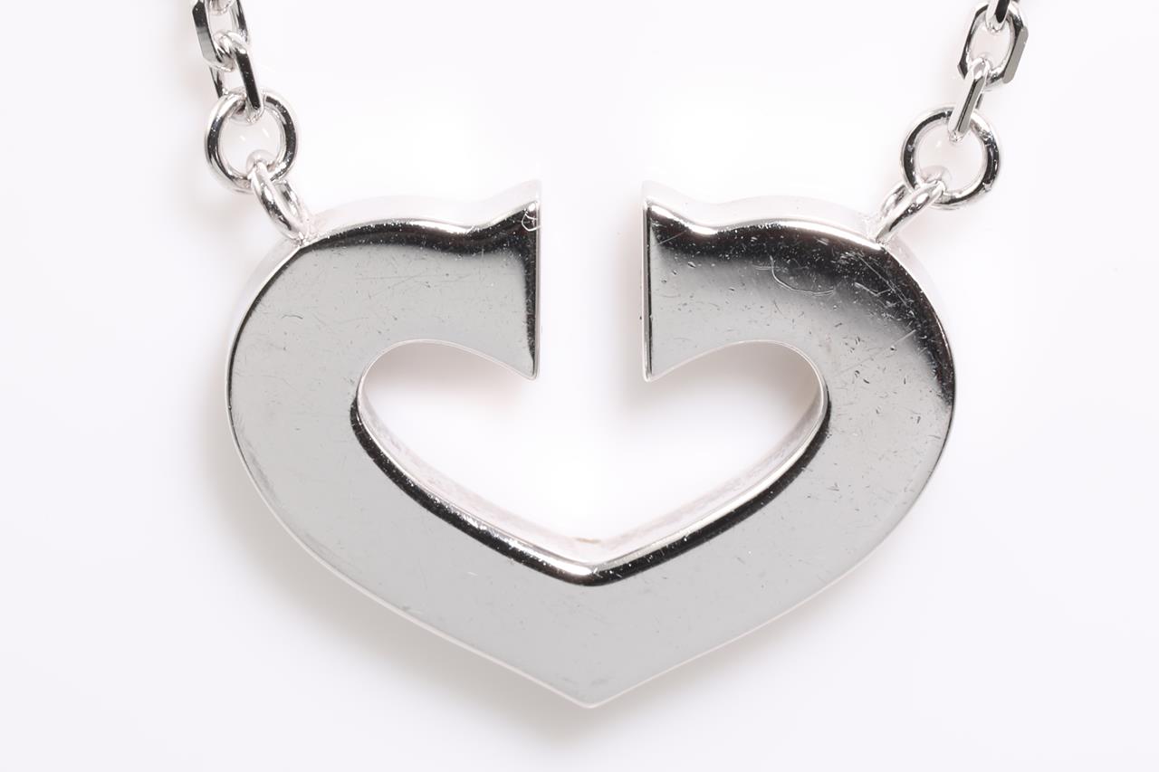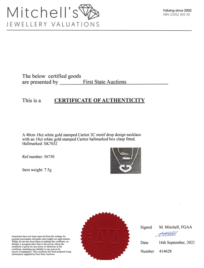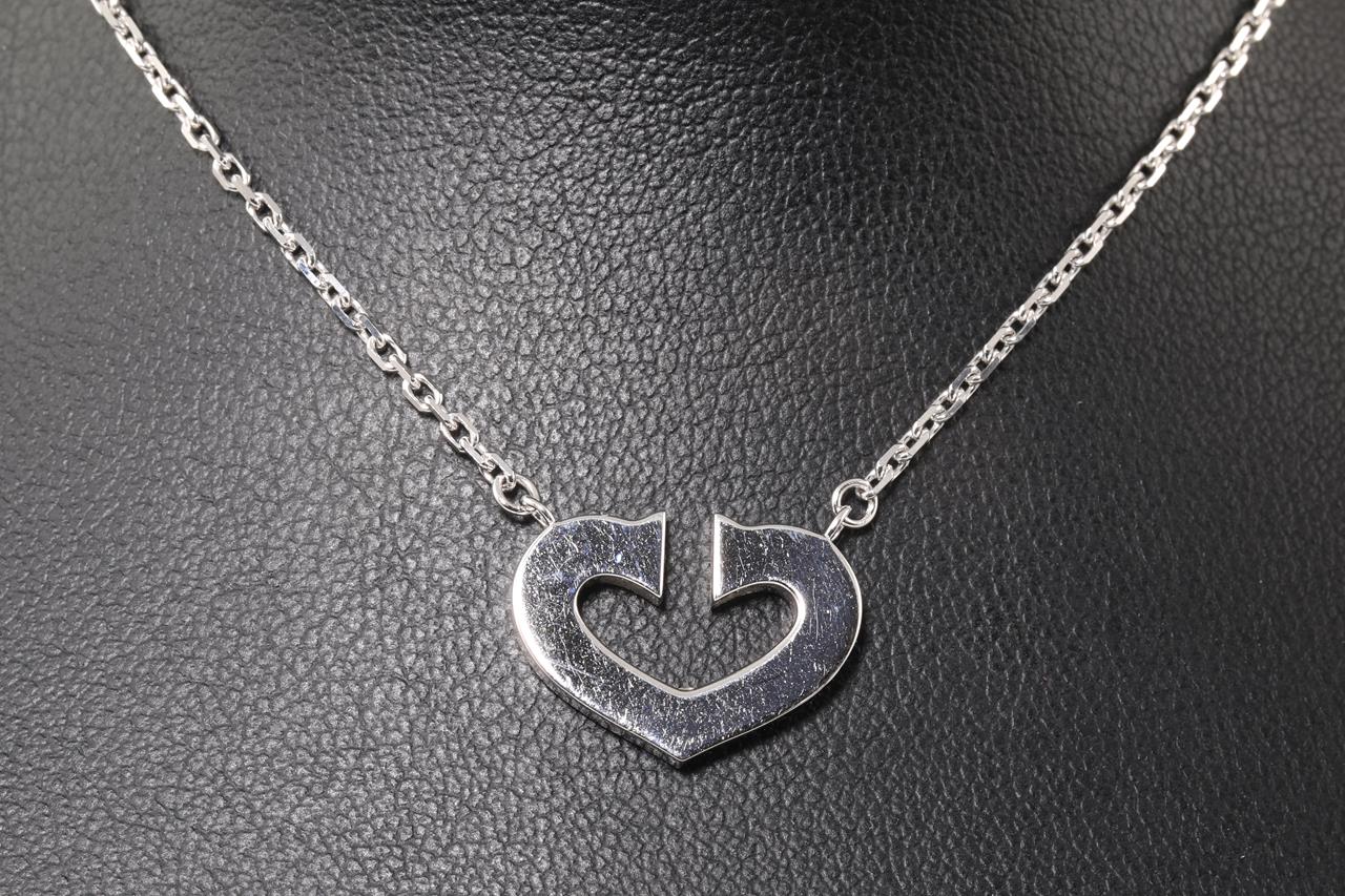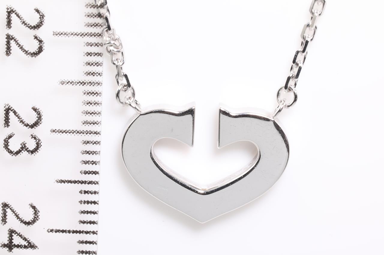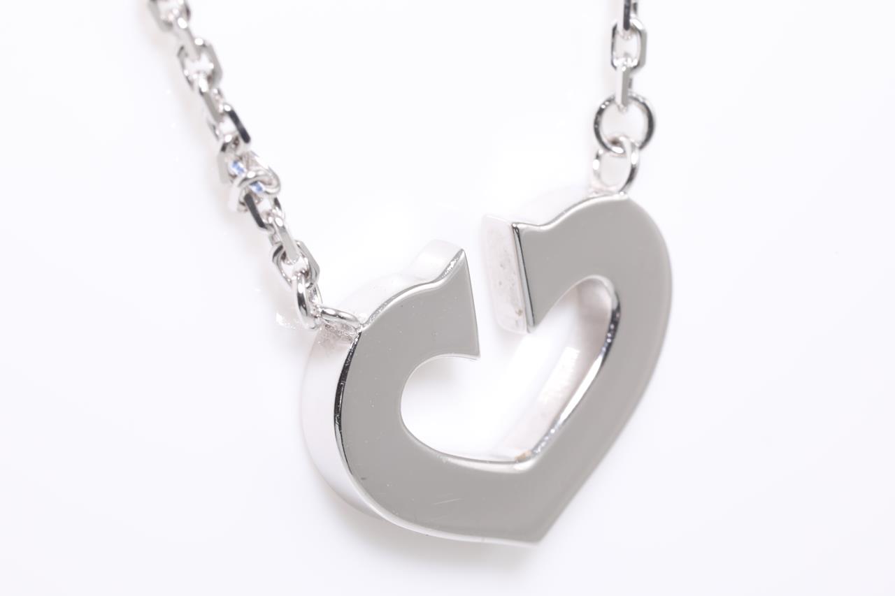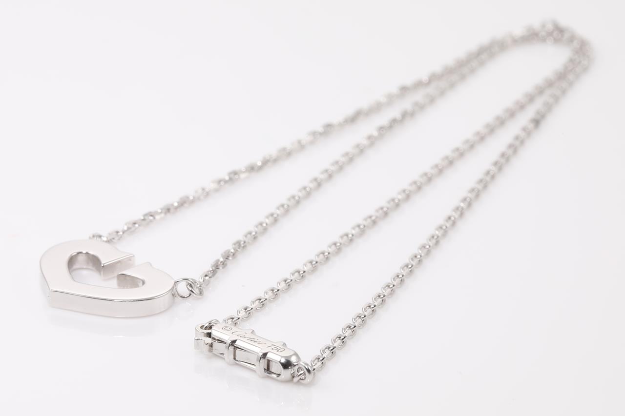 Cartier 2C motif necklace with attached chain. Length: 40cm. Weight: 7.5g. 18ct white gold. With certificate #414628. (Pre-owned)