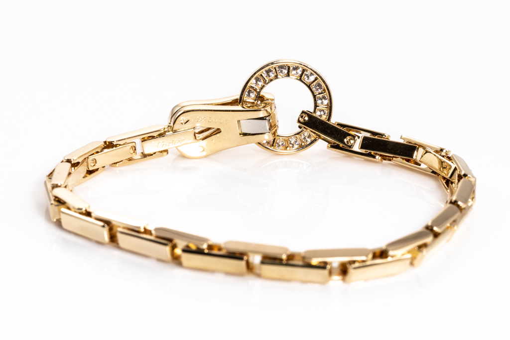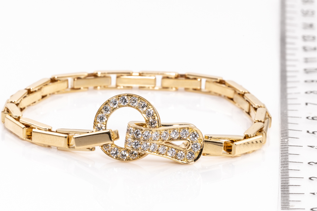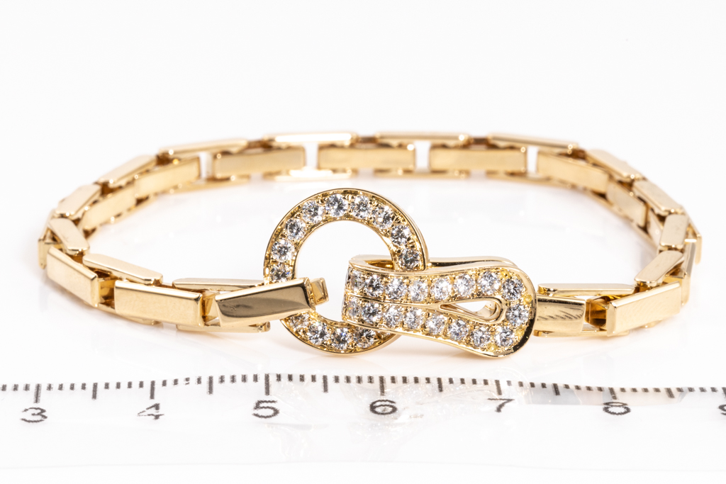 Cartier Agrafe Diamond bracelet with round Diamonds totalling approximately 1.00cts (Estimated grading: F VVS). 18ct yellow gold. Length: 18cm. Weight: 29.8g. With Cartier box. With Certificate #416325. (Pre-owned)