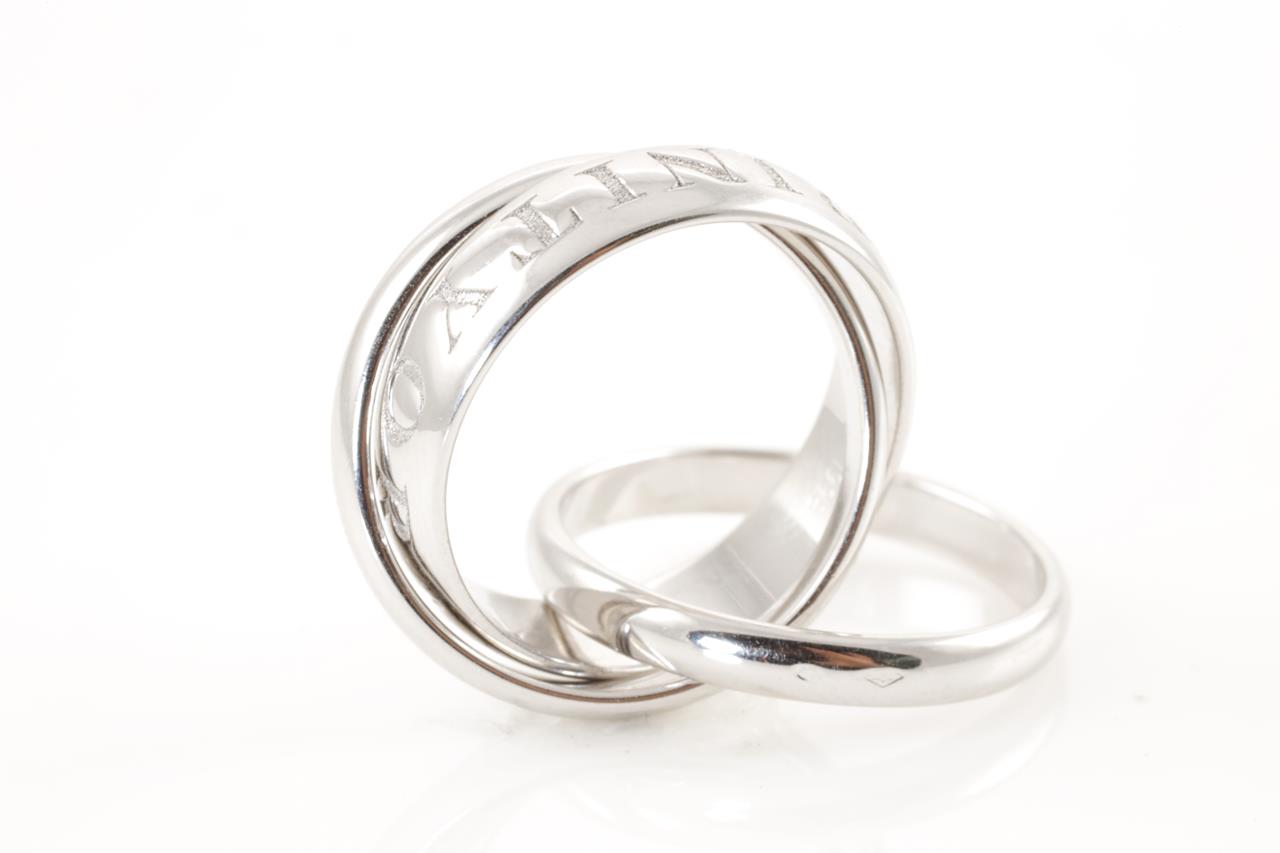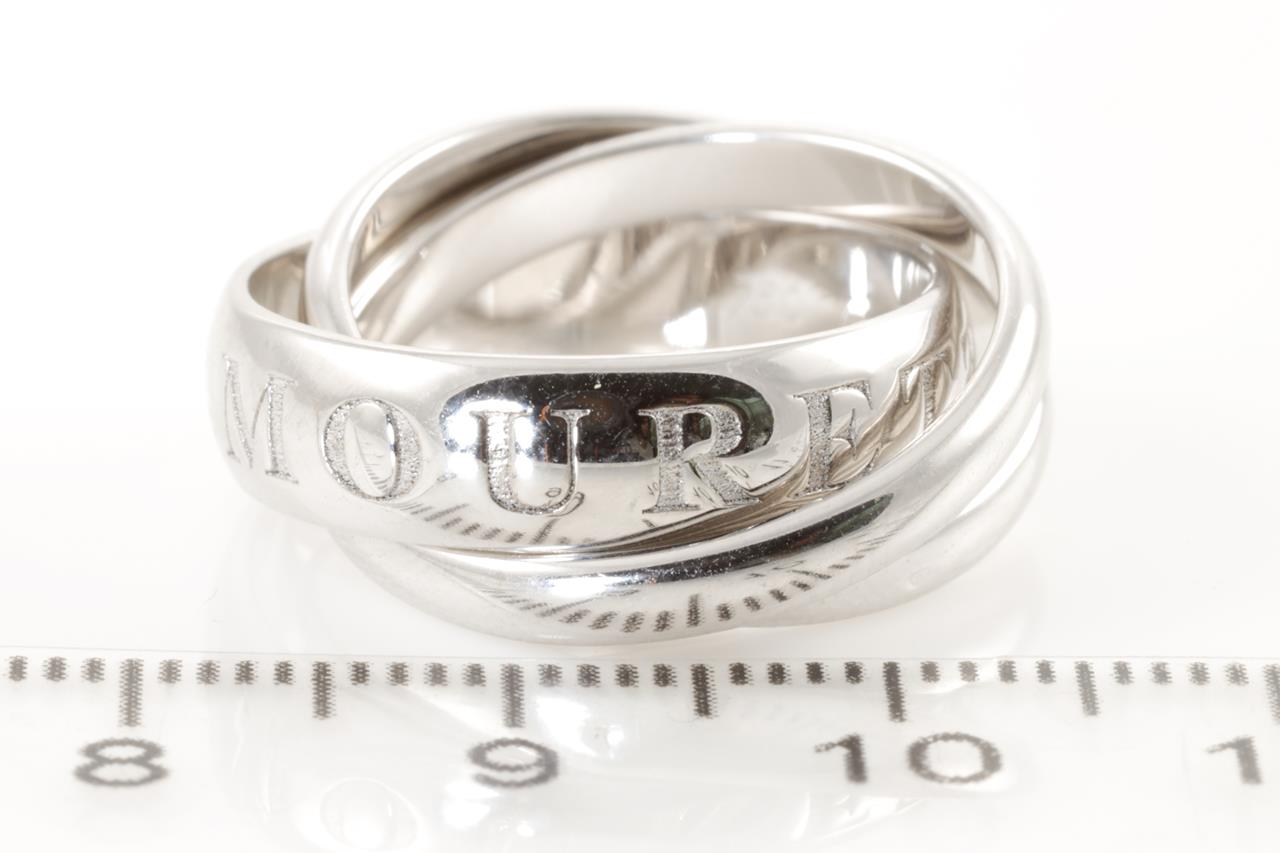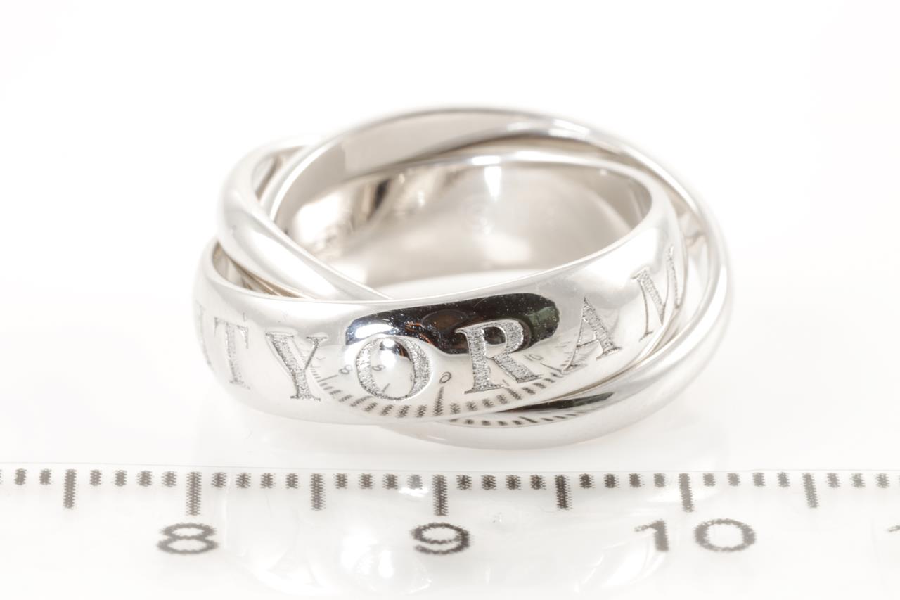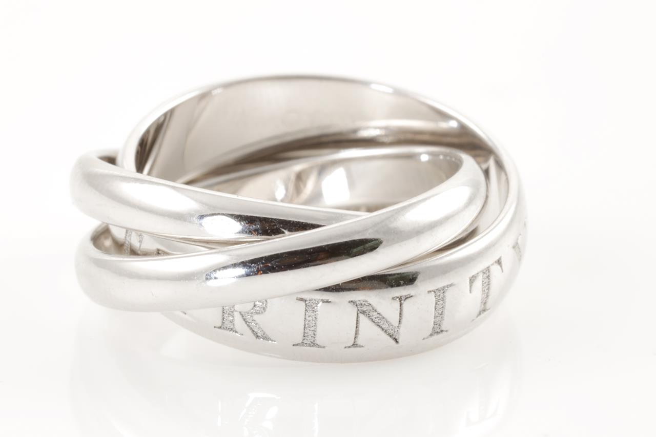 Cartier Amour Et Trinity. Ref# Q1124P. Cartier stamped size 50, K - ring resizing is not recommended. 18ct white gold. Weight: 10.1g. (Pre-owned)