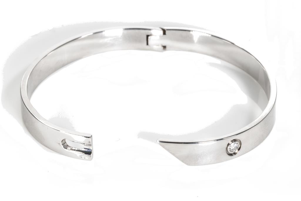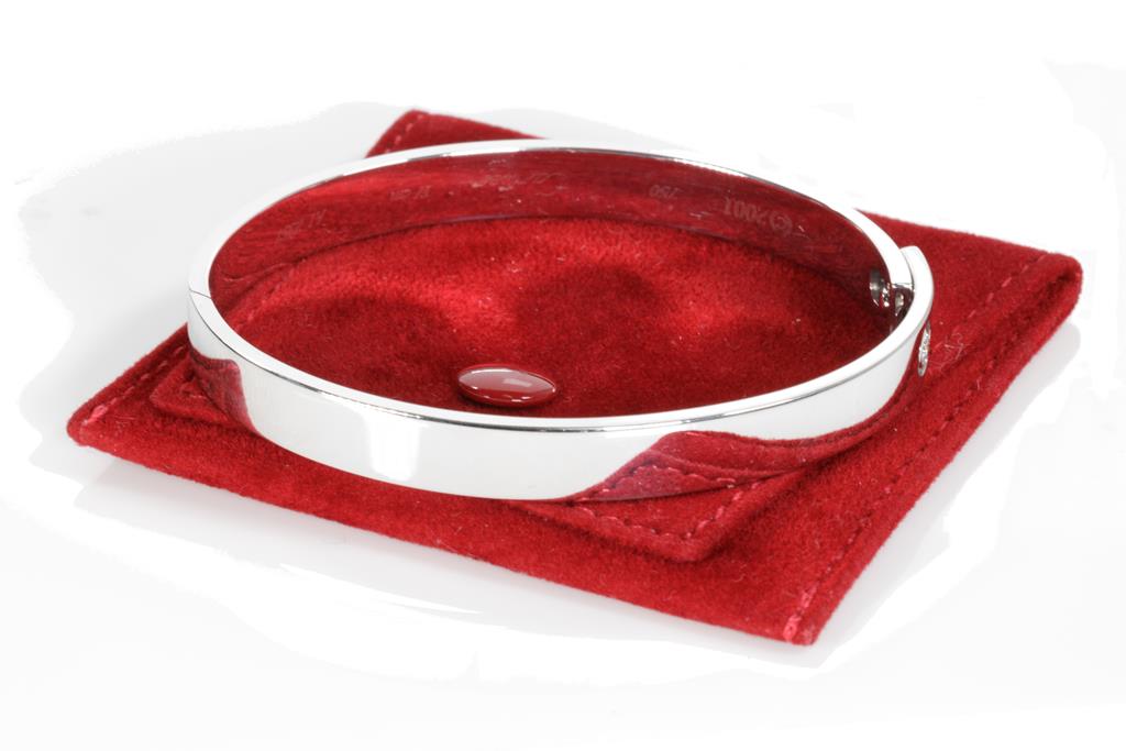 Cartier Anniversary Diamond bracelet with a round Diamond of 0.10ct. Cartier stamped size 17. Width: 7.1mm. 18ct white gold. Circa: 2001. With Cartier pouch. With Certificate #415961. (Pre-owned)