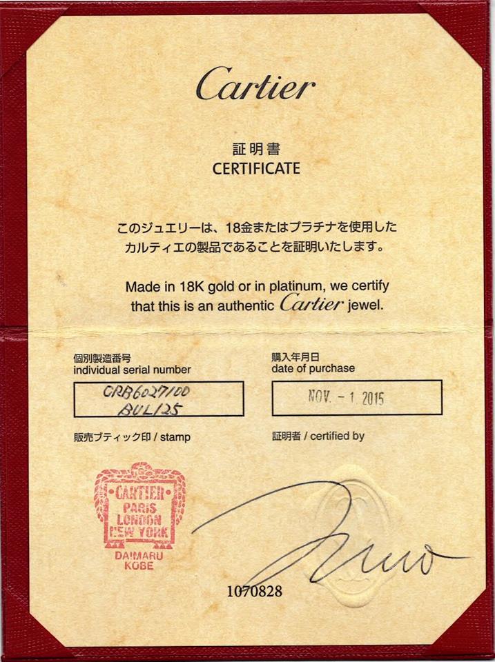 Cartier Love Bracelet. 18ct yellow gold. Length: 8cm. Width: 2.5mm. Inner diameter: 9.7mm. Length: 16cm. Weight: 16g. With Cartier Certificate dated 01/11/2015 and Cartier box. (Pre-owned)
