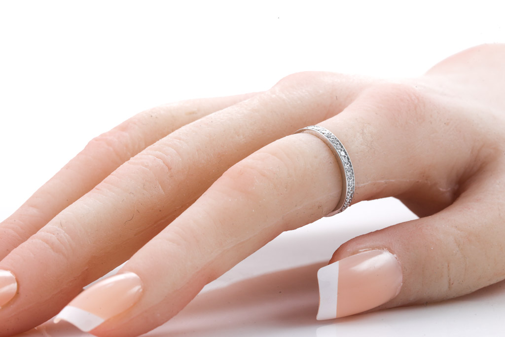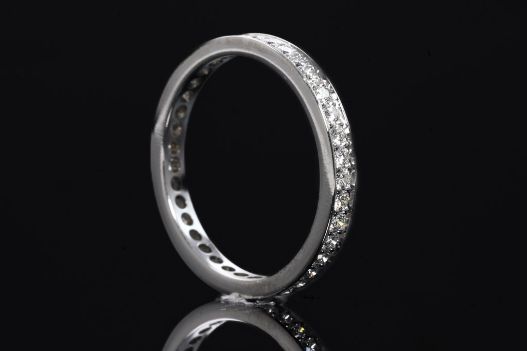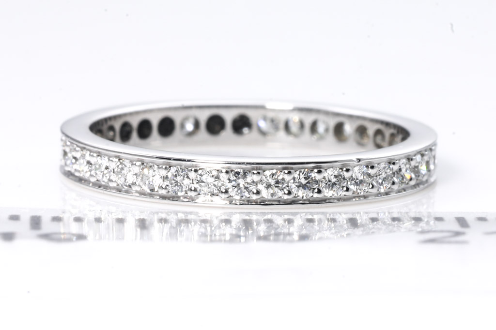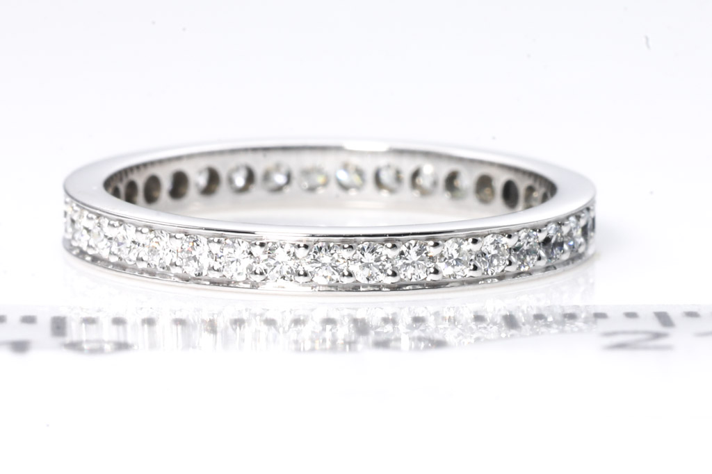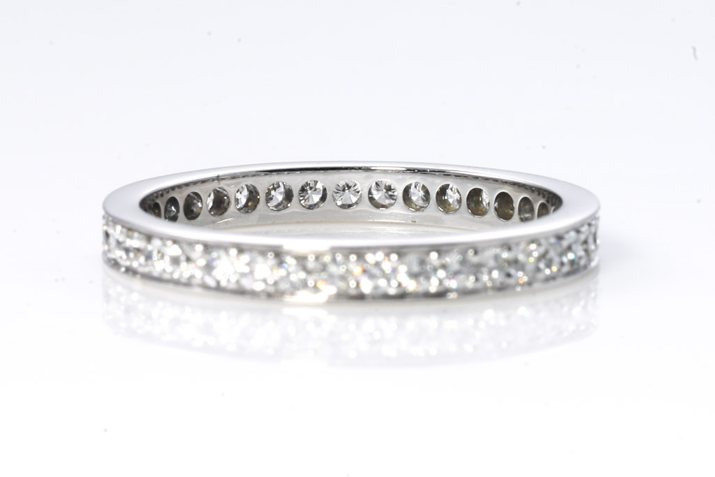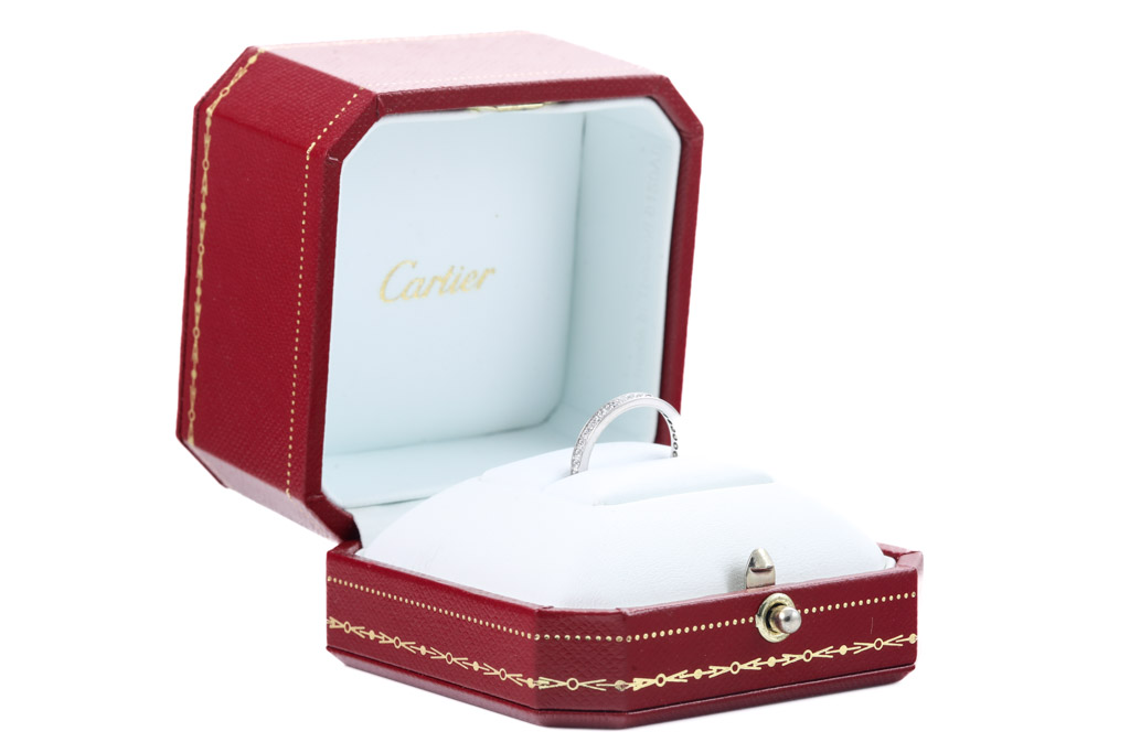 Cartier Ballerine Diamond Wedding ring with 39 round Diamonds totalling 0.38cts (Estimated grading: F-G VS). Width: 2.4mm. Platinum. Cartier Stamped size 49, J - cannot be resized. Weight: 2.2g. With Cartier Certificate dated 16/08/2018 and Cartier box. (Pre-owned)