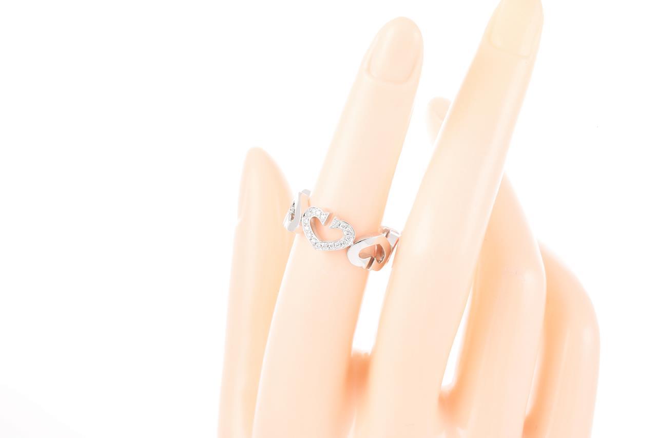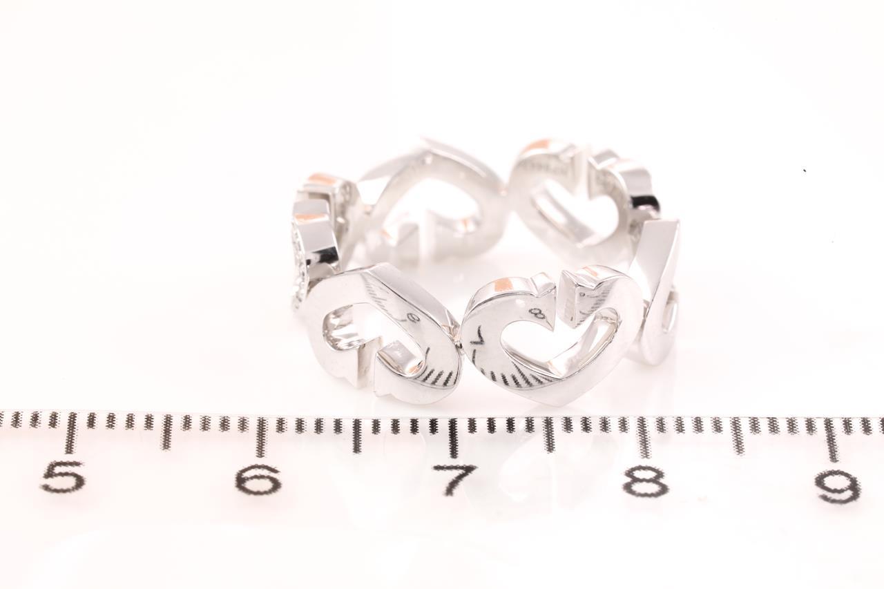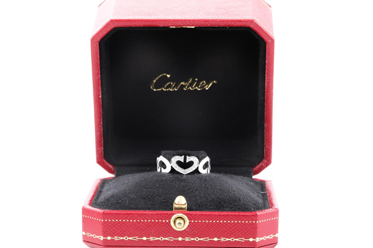 Cartier C Heart ring with Diamonds totalling approximately 0.10cts. 18ct white gold. Ring size M - ring resizing is not recommended. Weight: 7.8g. With Cartier box. (Pre-owned)
