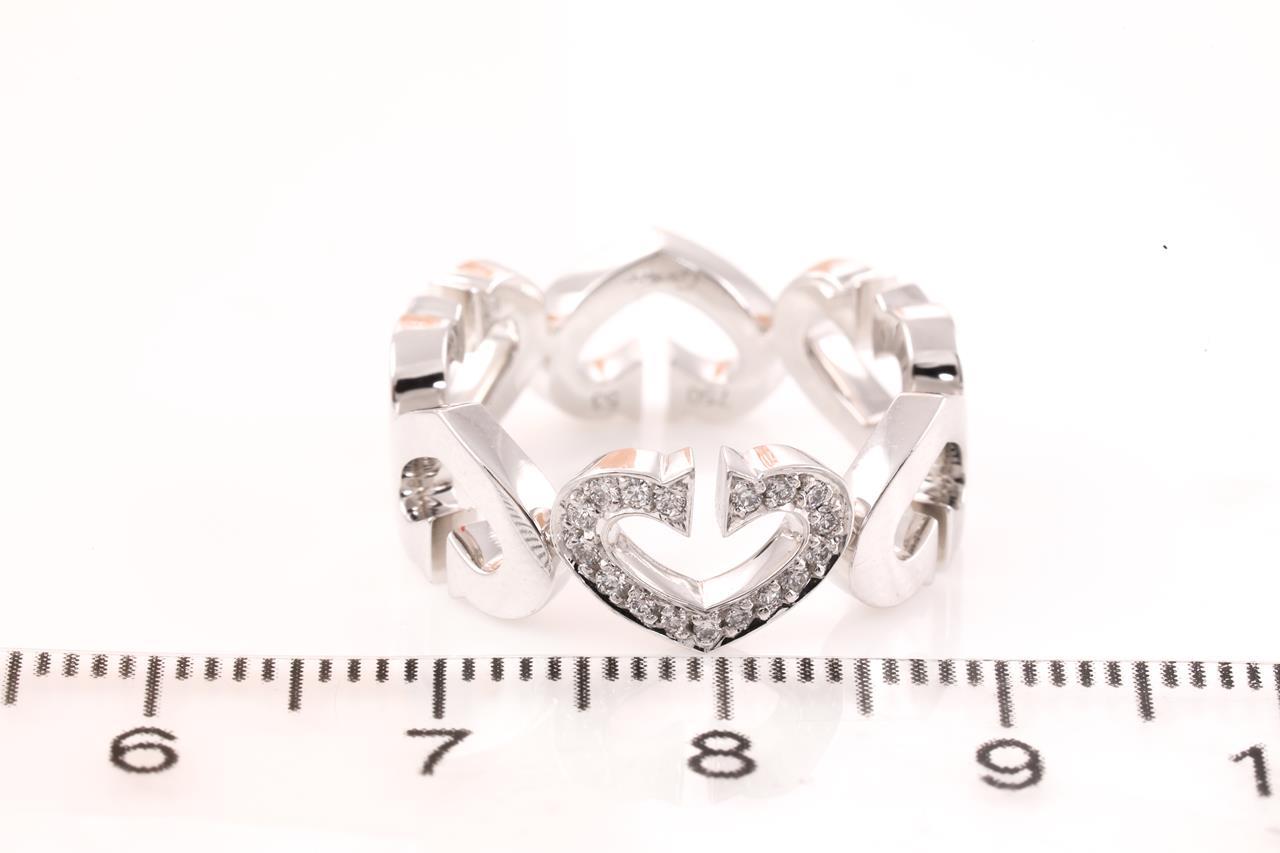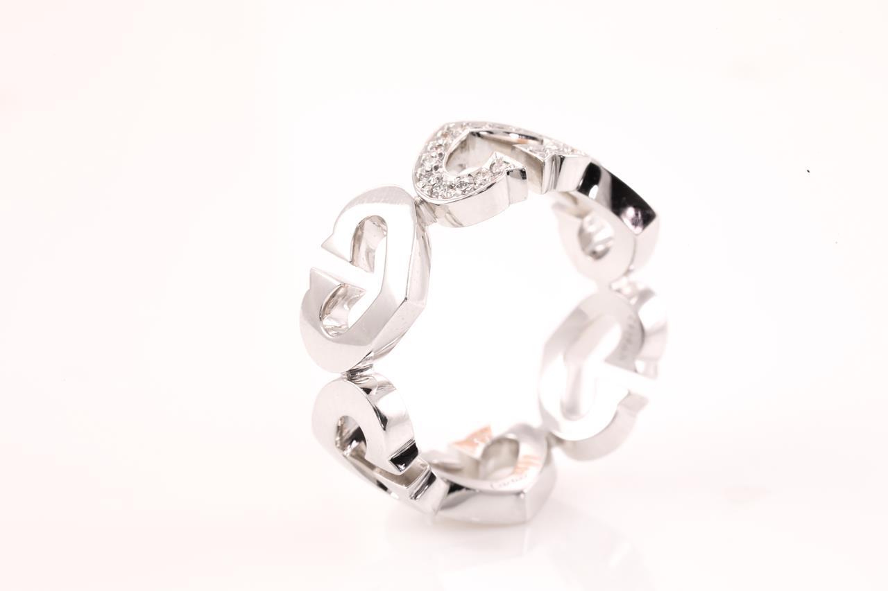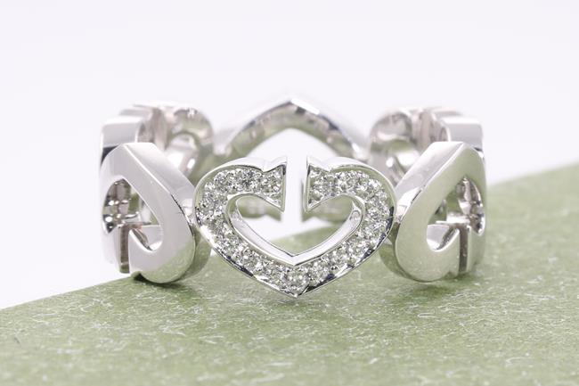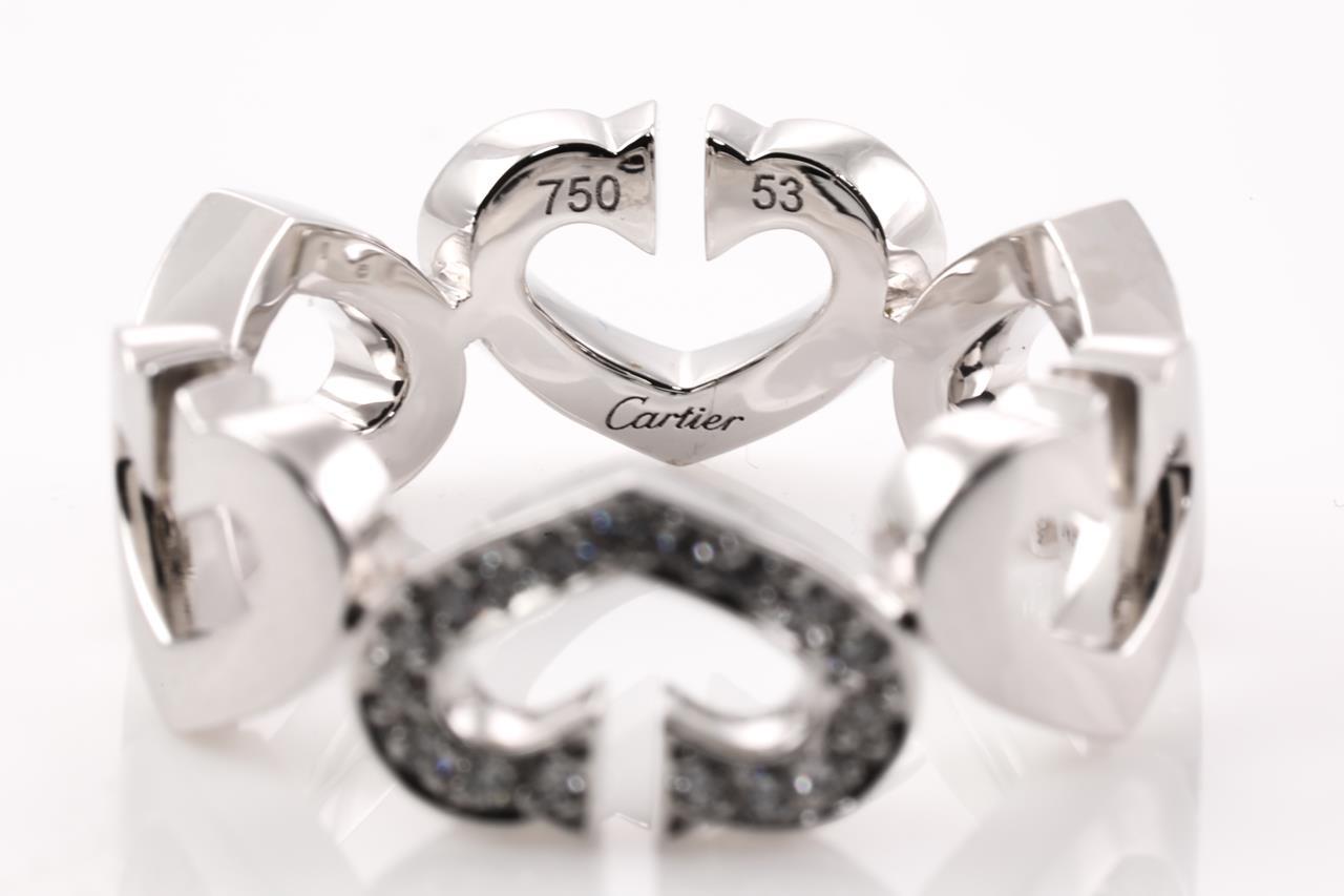 Cartier C Heart ring with Diamonds totalling approximately 0.10cts. 18ct white gold. Ring size M - ring resizing is not recommended. Weight: 7.8g. With Cartier box. (Pre-owned)