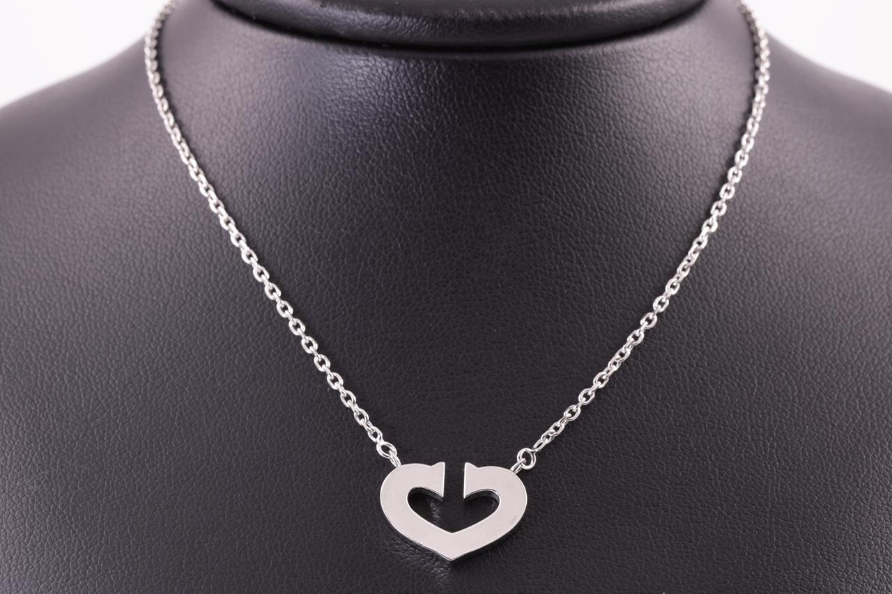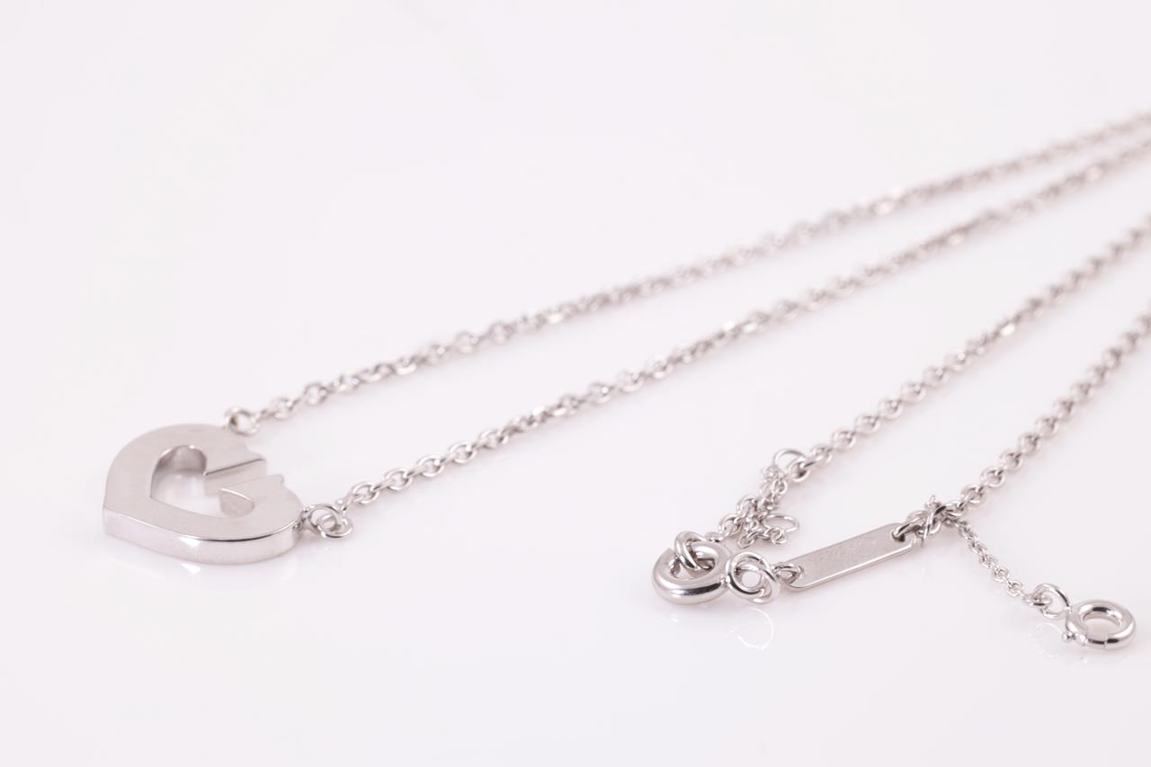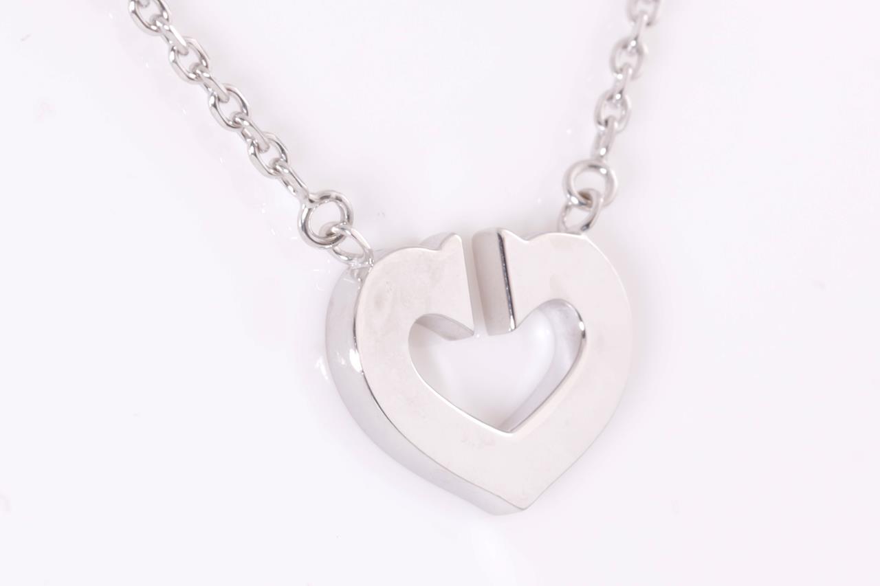 Cartier C Heart Necklace. 18ct white gold with attached chain. Adjustable max length 41cm. Weight: 7.3g (Pre-owned)