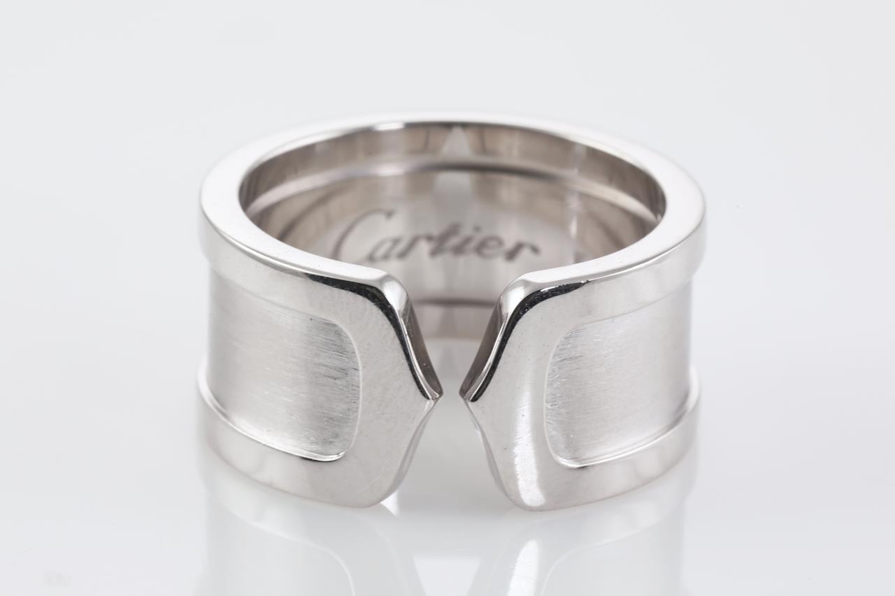 Cartier C2 18ct white gold ring. Circa 2000. Cartier stamped size 53, M1/2 - ring resizing is not recommended. Weight: 12.7g. (Pre-owned)