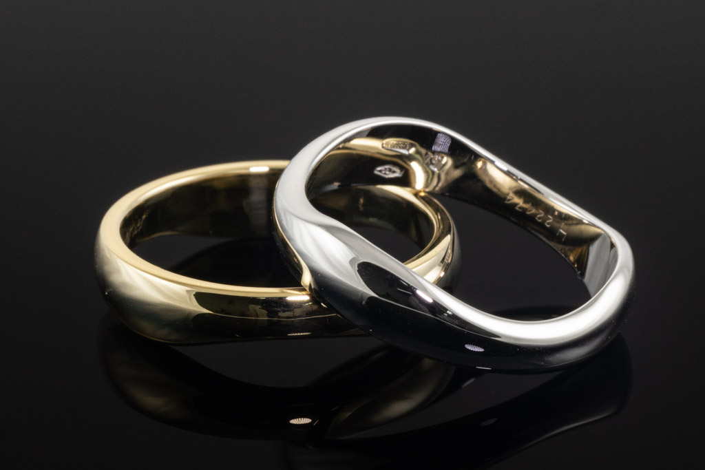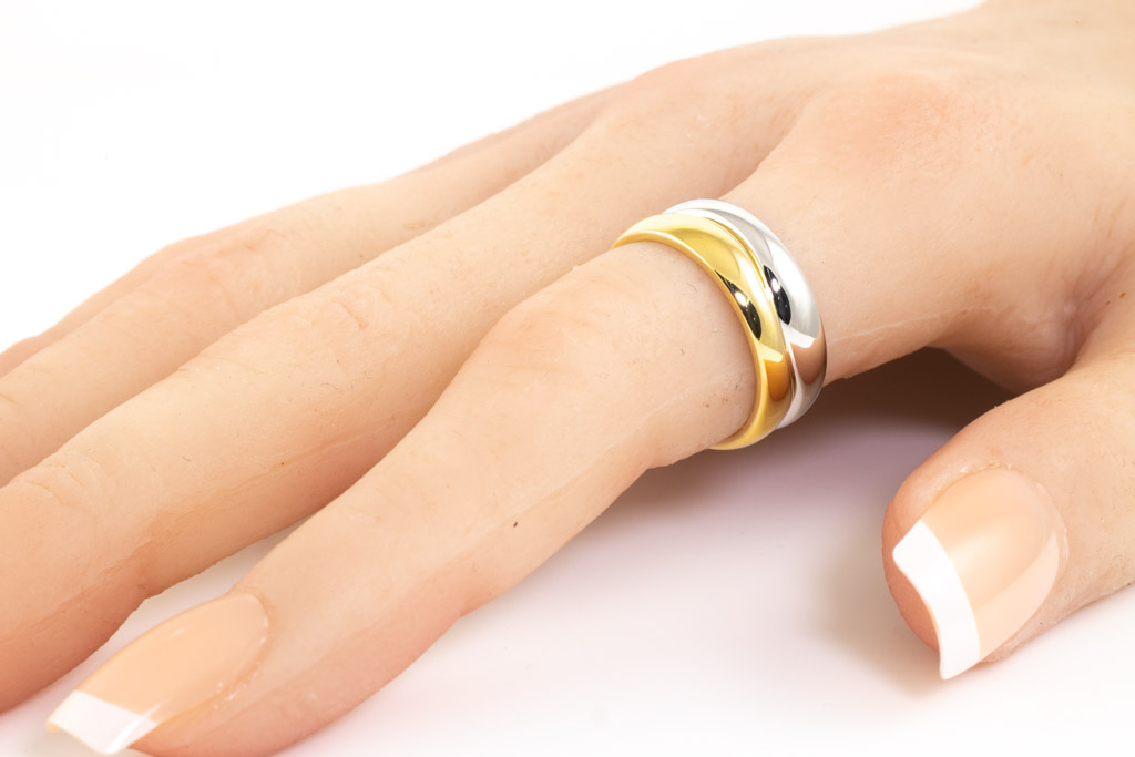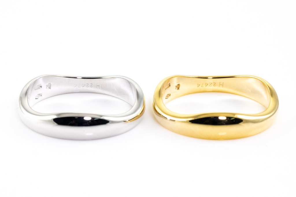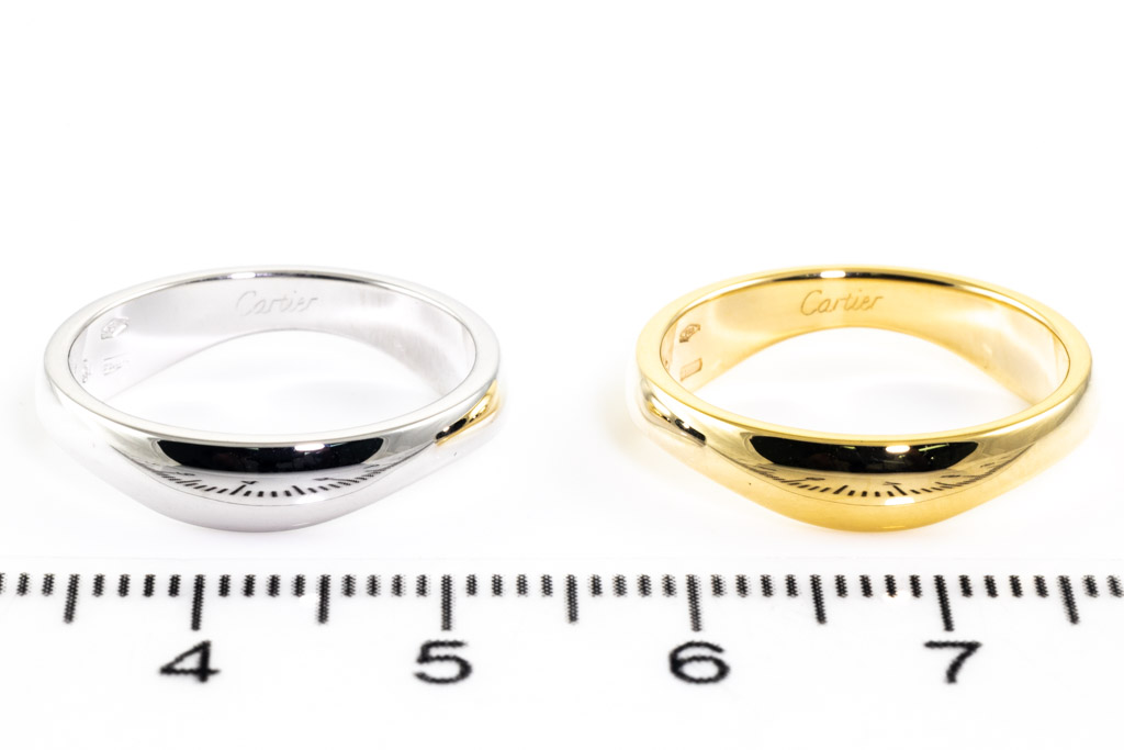 Cartier Double Stack Wave two tone bands. 18ct yellow and white gold. Cartier stamped size 54, M½ -ring resizing is not recommended. Weight: 8.8g. With Cartier certificate dated back 10/04/99. (Pre-owned)