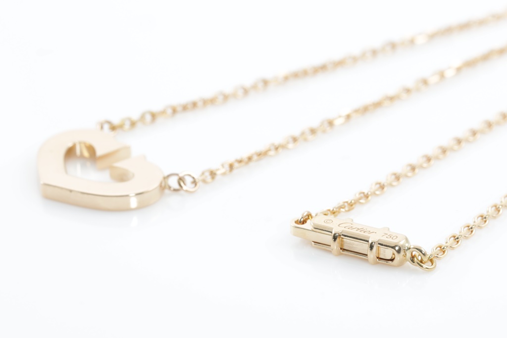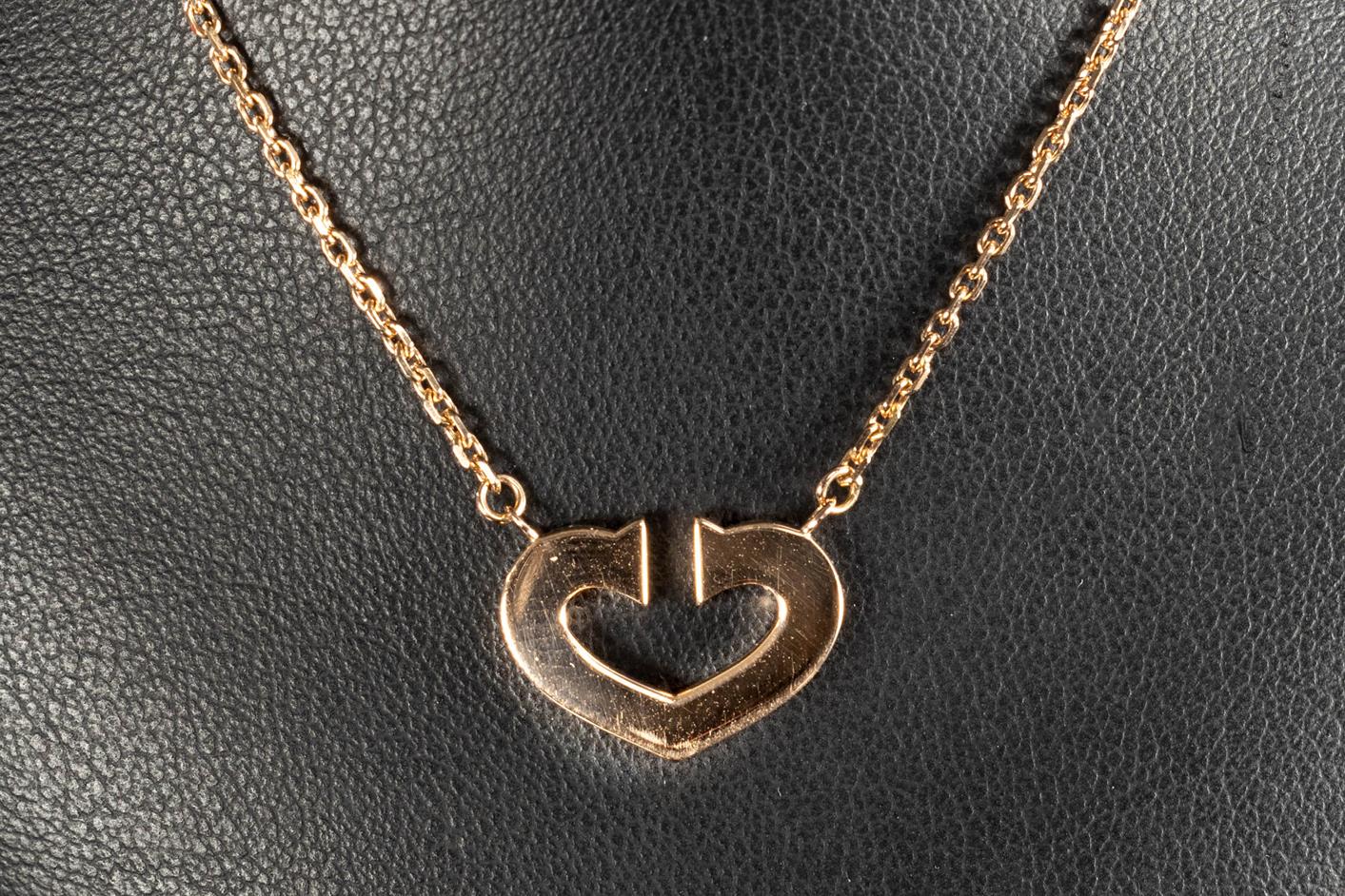 Cartier C Heart Necklace. 18ct rose gold with attached chain. Length: 41cm. Weight: 7.1g (Pre-owned)
