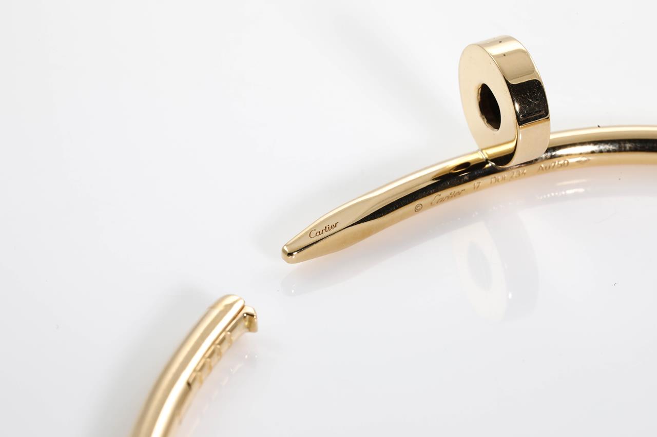 Cartier Juste Un Clou classic bracelet. 18ct yellow gold. Cartier stamped Size: 17. Width: 3.5mm. Ref #BUL234. With Cartier certificate dated 20/05/2017 and Cartier box. Weight: 33.7g (Pre-owned)