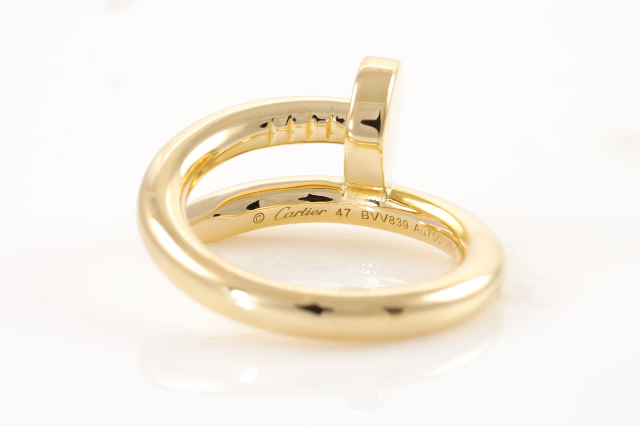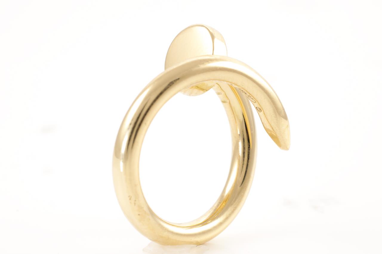 Cartier Juste Un Clou 18ct yellow gold ring. Cartier stamped size 47, G1/2 - ring resizing is not recommended. Weight: 7.7g. Width: 2.65mm. (Pre-owned)