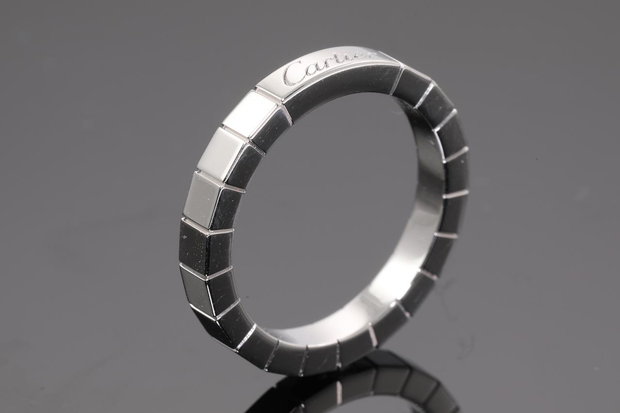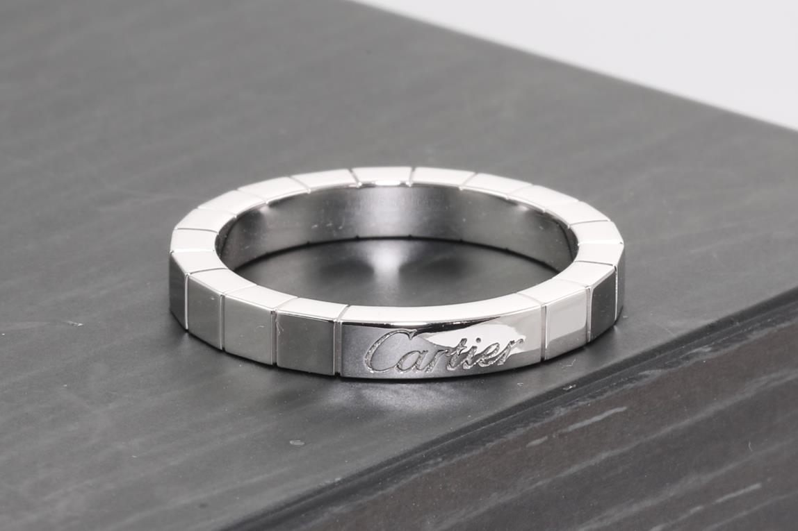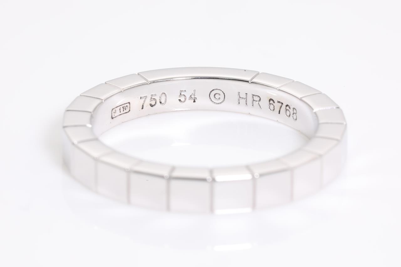 Cartier Lanieres ring. 18ct white gold. Ring size N - resizing is not recommended. Ref# HR 6768. Weight: 6.5g. Cartier stamped size 54. With Cartier certificate dated 06/12/2009. (Pre-owned)