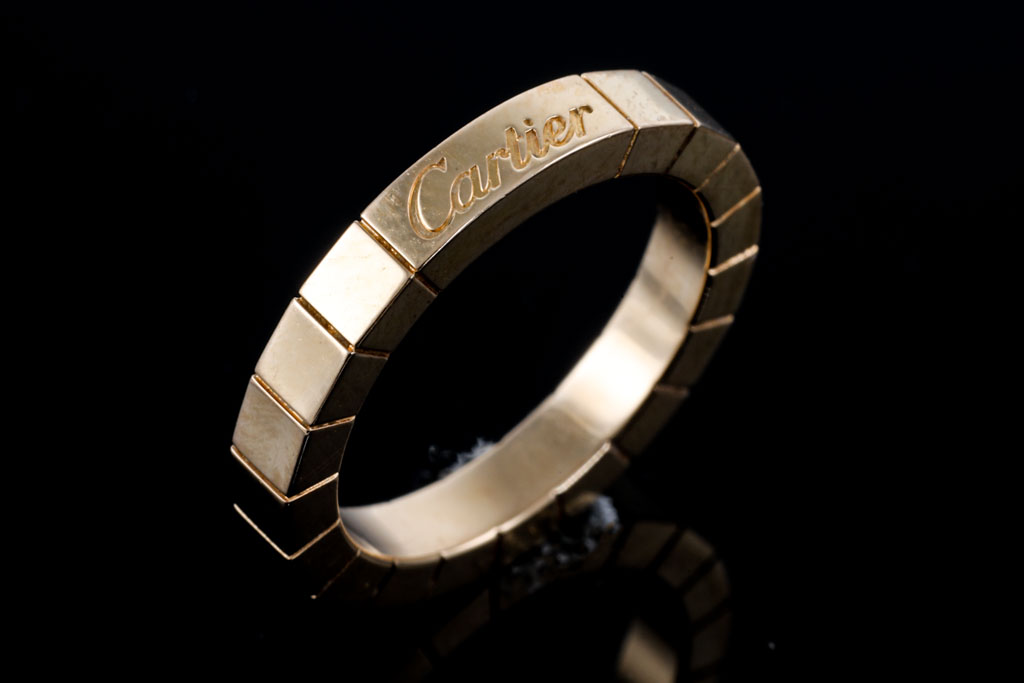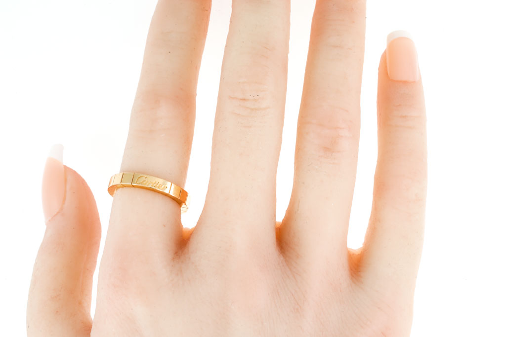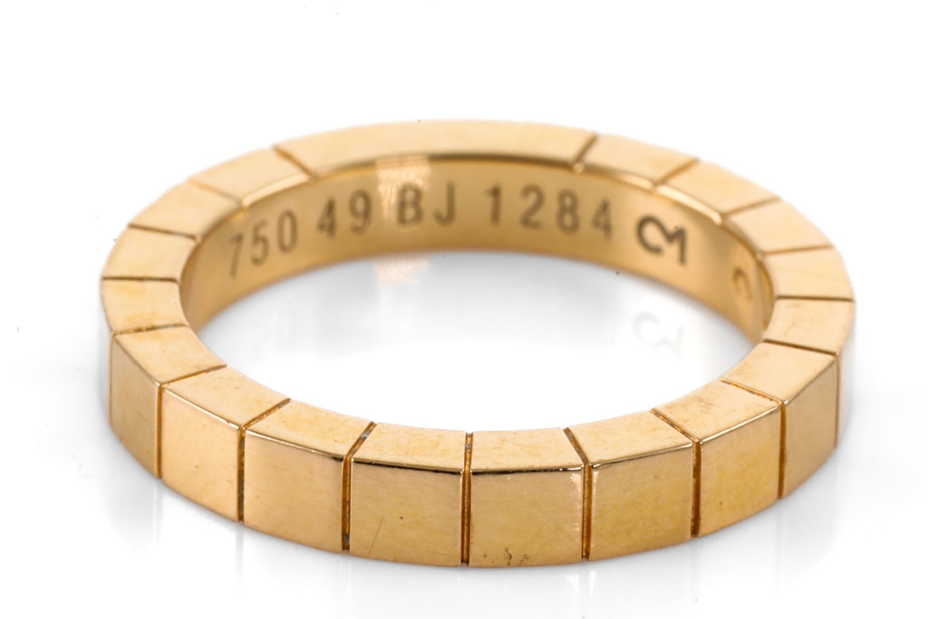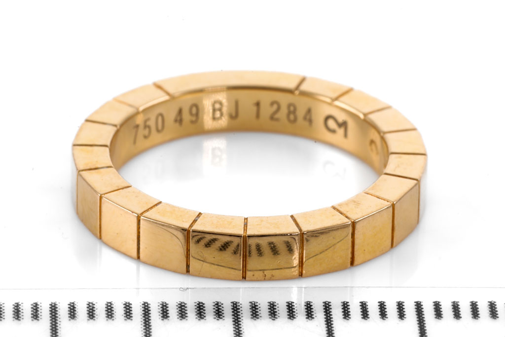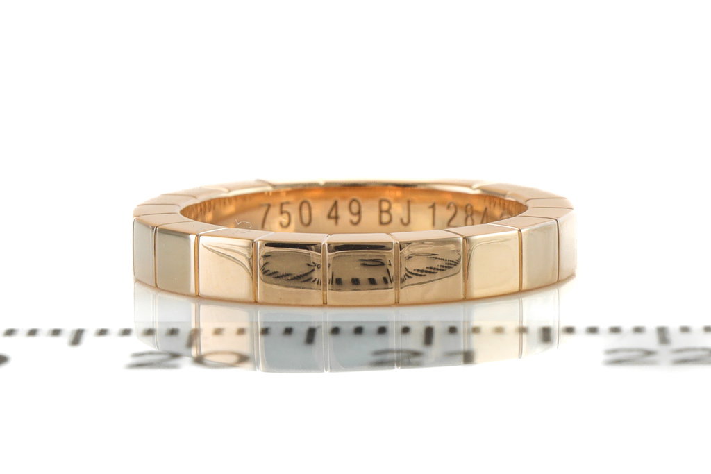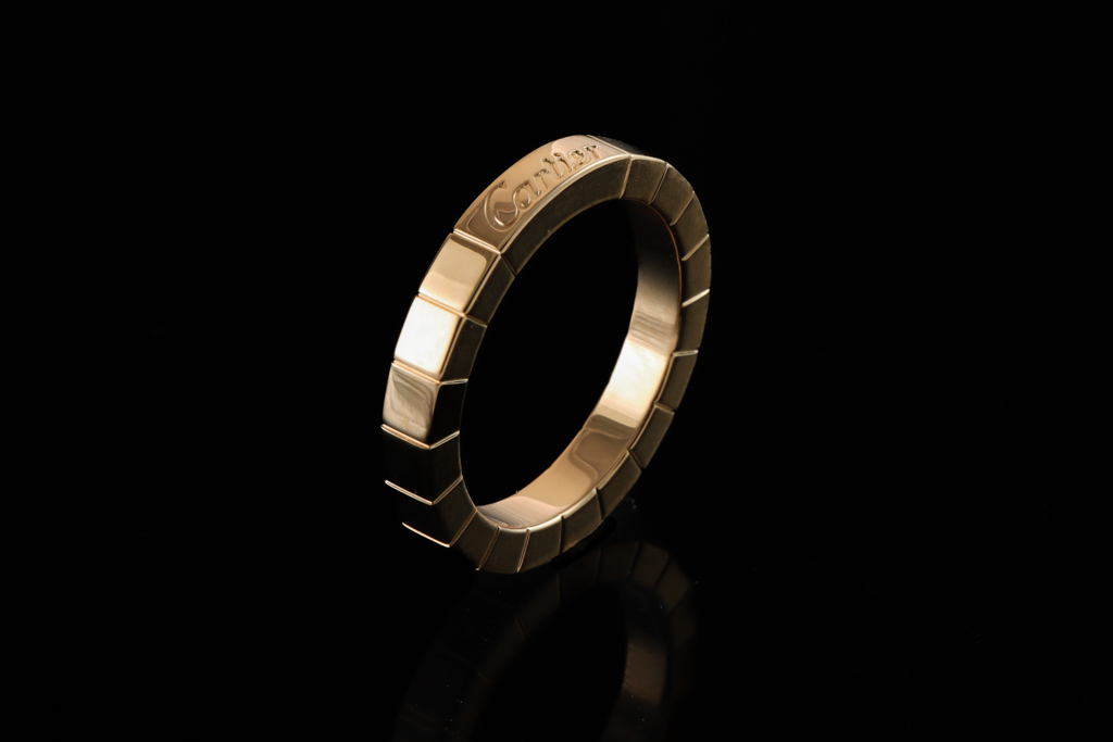 Cartier Lanieres ring. 18ct rose gold. Cartier stamped size 49, J - resizing is not recommended. Width: 3mm. With Cartier box. Weight: 5.6g. (Pre-owned)