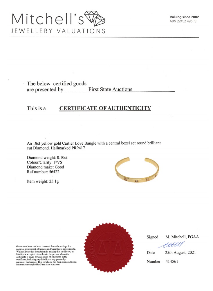 Cartier Love Diamond Bracelet | First State Auctions