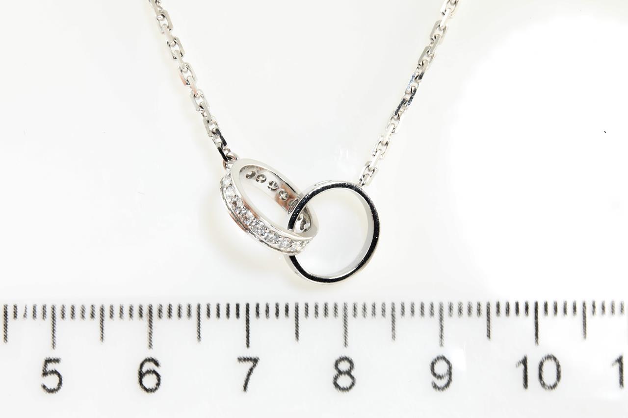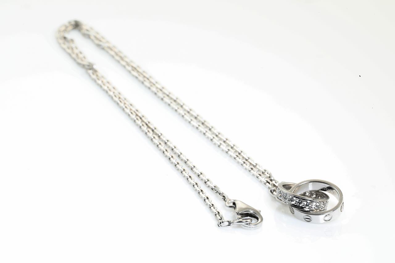 Cartier Love Diamond necklace with Diamonds totalling 0.22cts. 18ct white gold with attached chain. Length: 42cm. Ref# B7013700. Weight: 7.1g. With Cartier authenticity certificate dated 08/02/2008 and box. (Pre-owned).