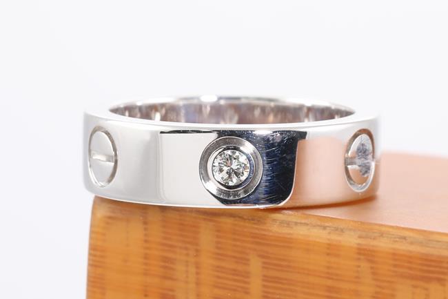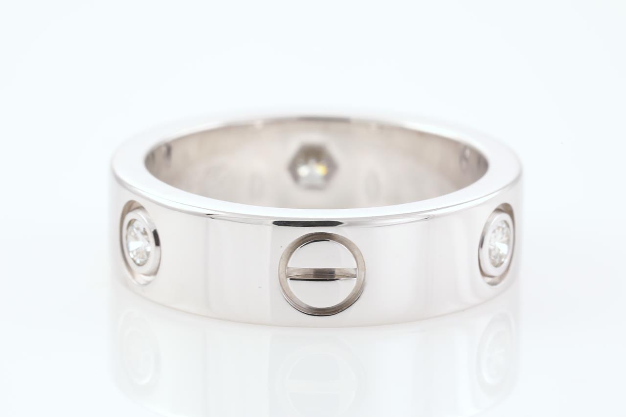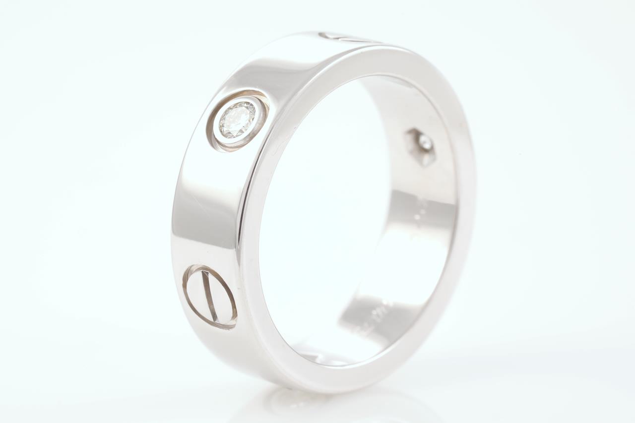Cartier Love ring with 3 round Diamonds totalling 0.22cts. 18ct white gold. Cartier stamped size 52, L1/2 - ring resizing is not recommended. Circa 1998. Weight: 8.8g. (Pre-owned)