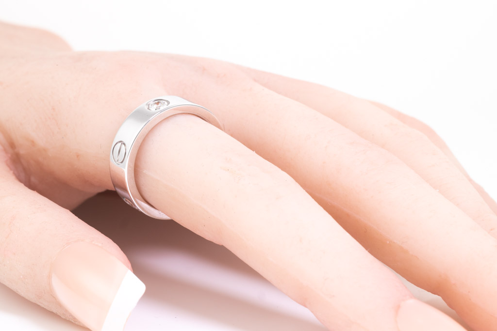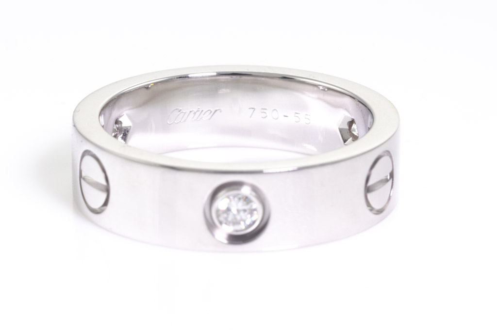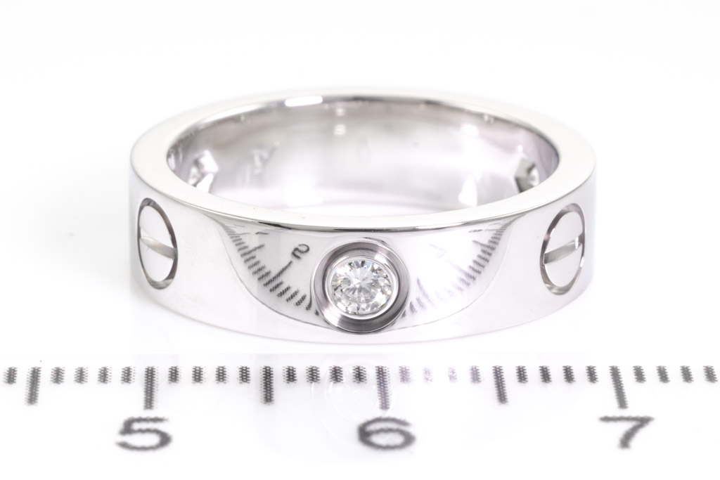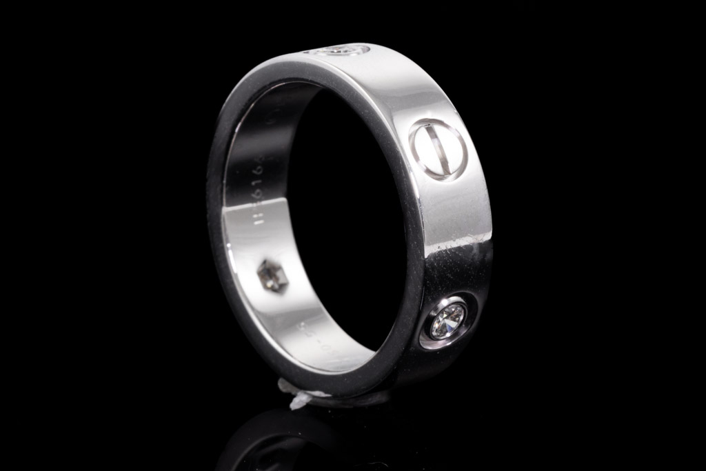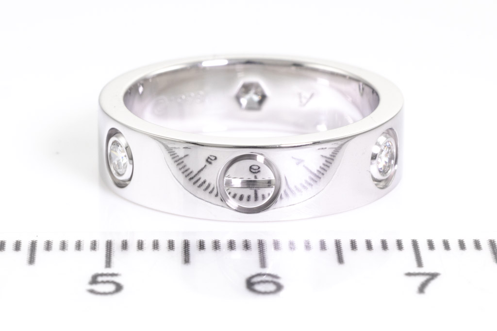 Cartier Love Diamond ring with 3 round Diamonds totalling 0.21cts. 18ct white gold. Cartier stamped size 55, N½ - ring resizing is not recommended. Weight: 9.5g. (Pre-owned)