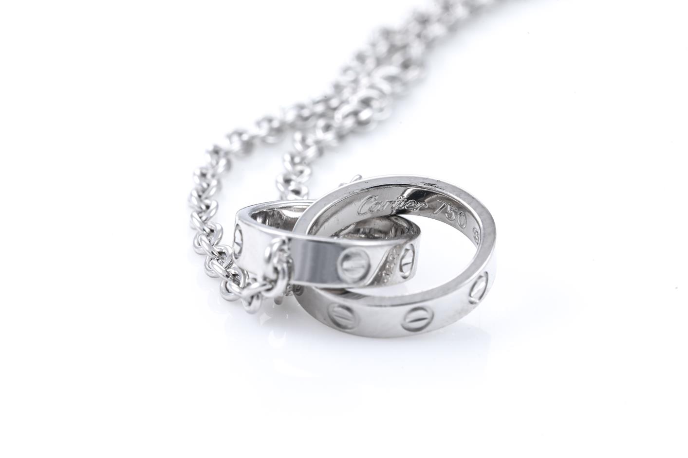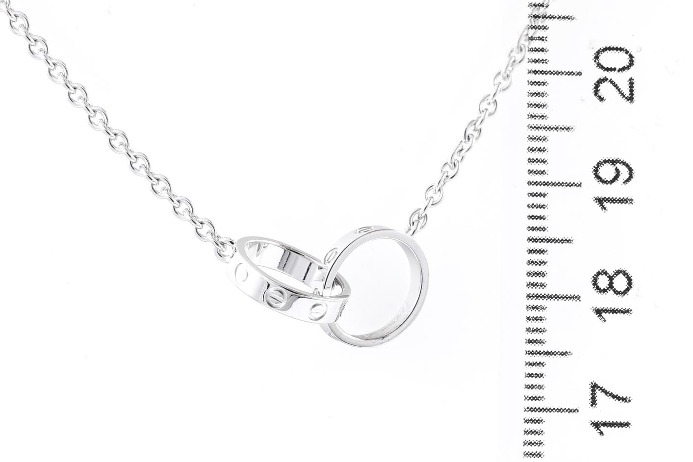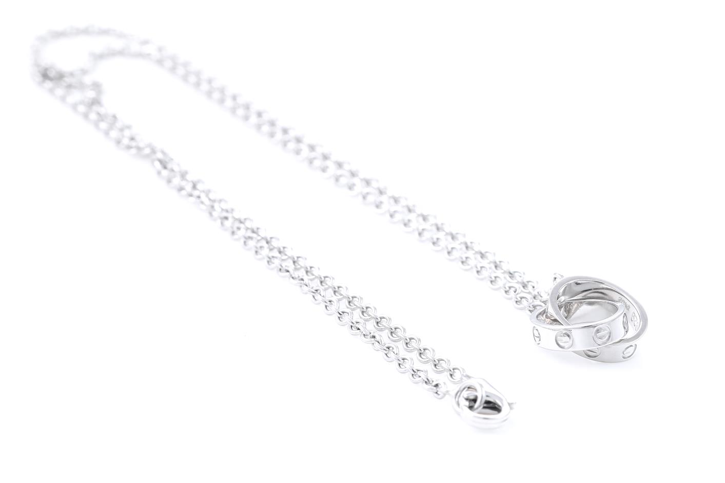Cartier Love Necklace. Inner diameter: 8mm. 18ct white gold with 18ct white gold attached chain. Length: 44cm. Weight: 7.9g. With Cartier box. (Pre-owned)