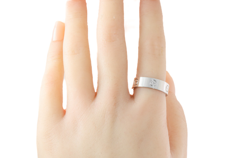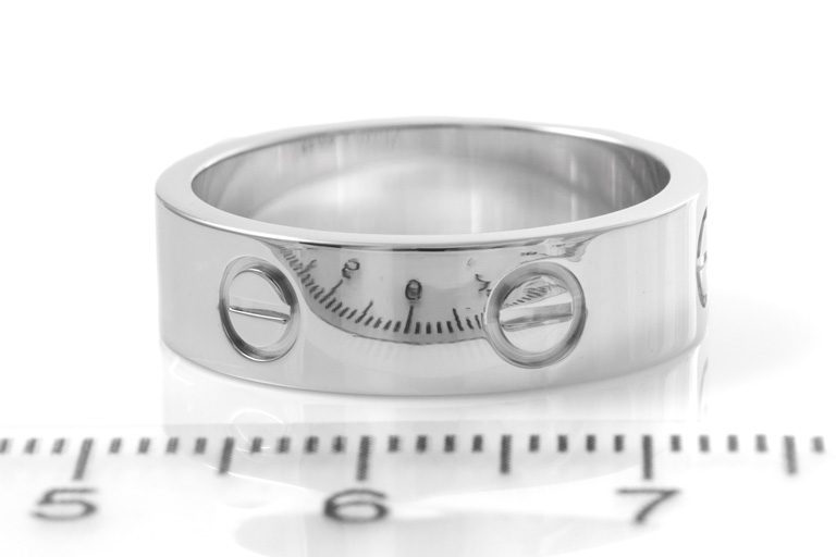 Cartier Love ring. 18ct white gold. Cartier stamped size 57, P1/2 - ring resizing is not recommended. Width: 6mm. Weight: 8.5g. (Pre-owned)